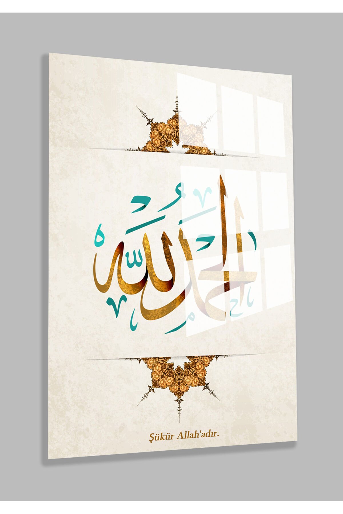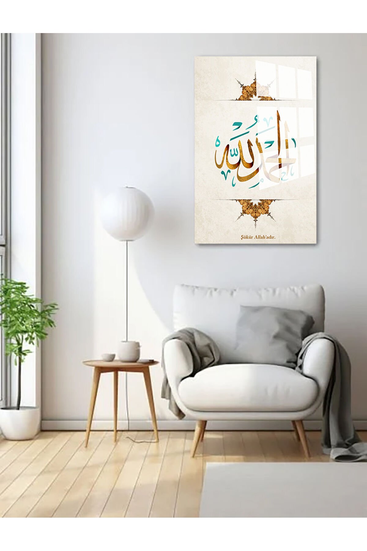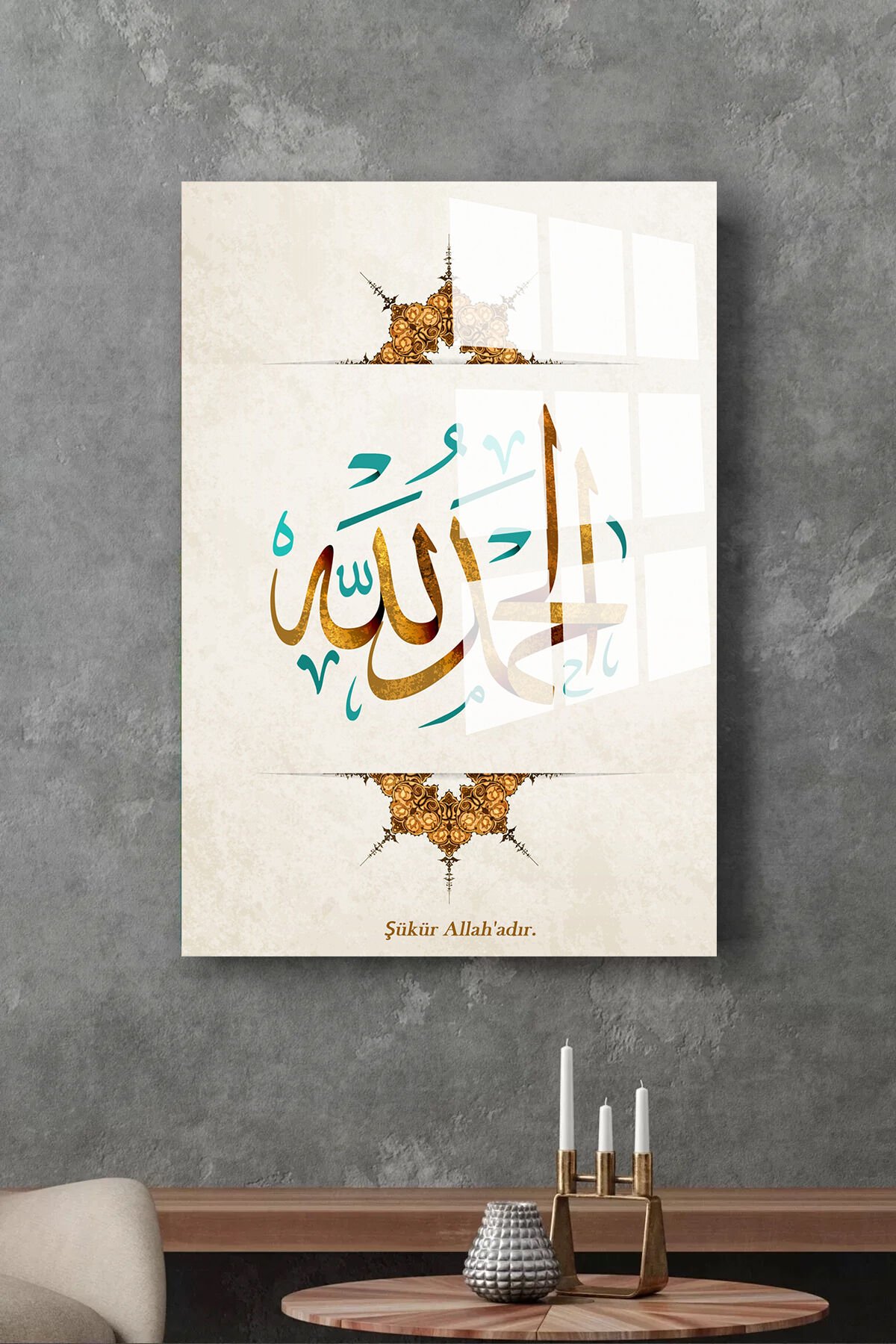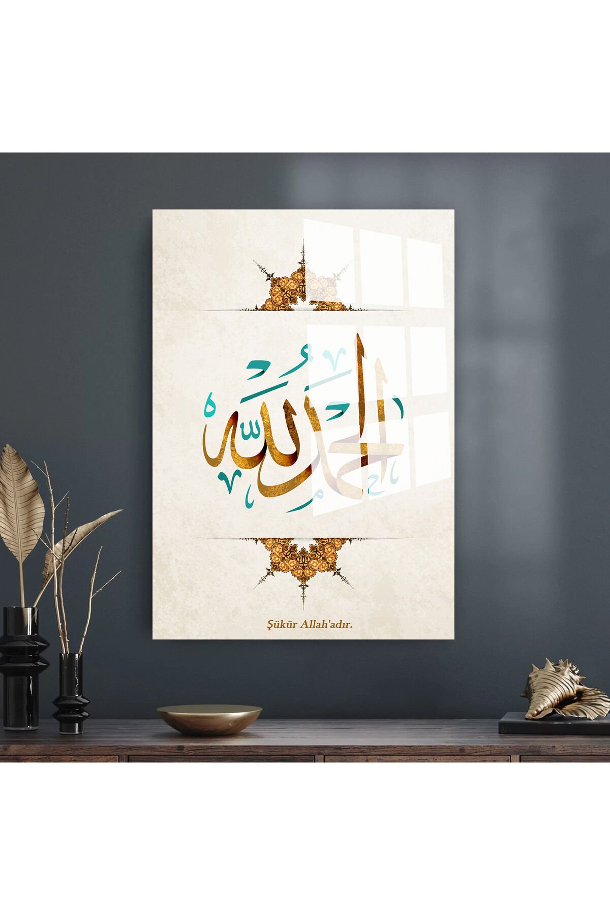 ŞÜKÜR ETMEK YAZILIŞI VE ANLAMI DİNİ İSLAMİ CAM TABLO EV İŞ YERİ OFİS HEDİYESİ KIRILMAZ CAM Bej 3