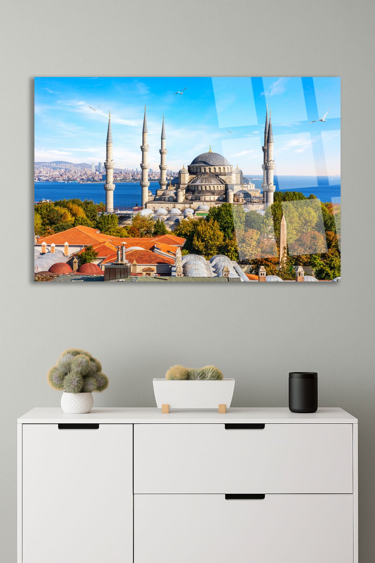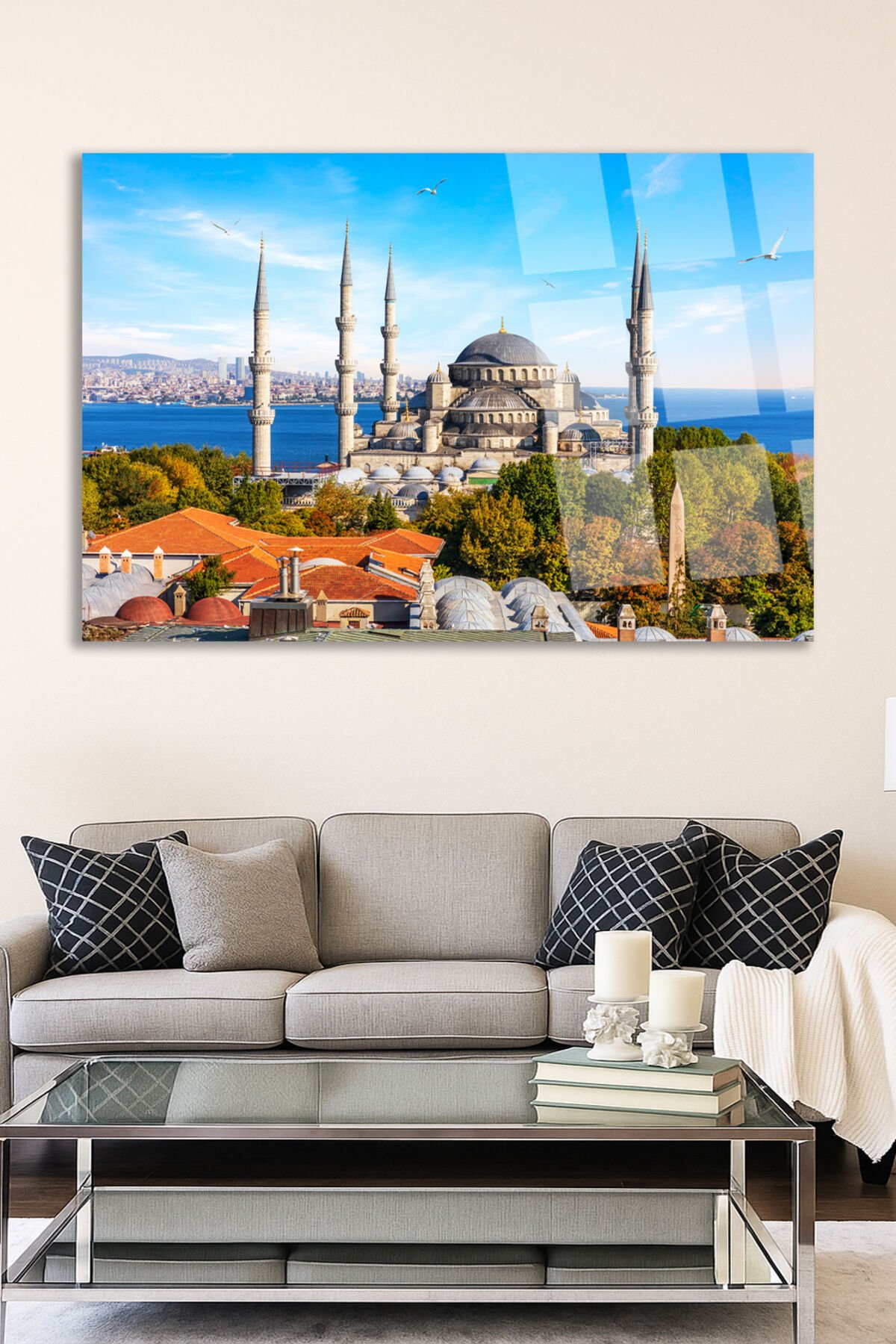 Sultan Ahmet Camii Manzarası Tablosu Kırılmaz Cam Tablo Modern Tablo Ev Hediyesi Tablo Mavi