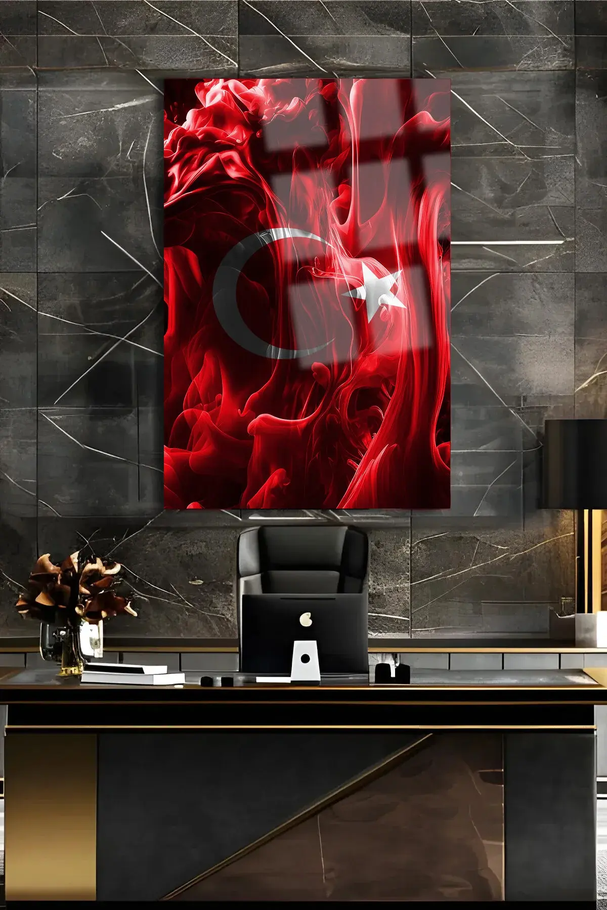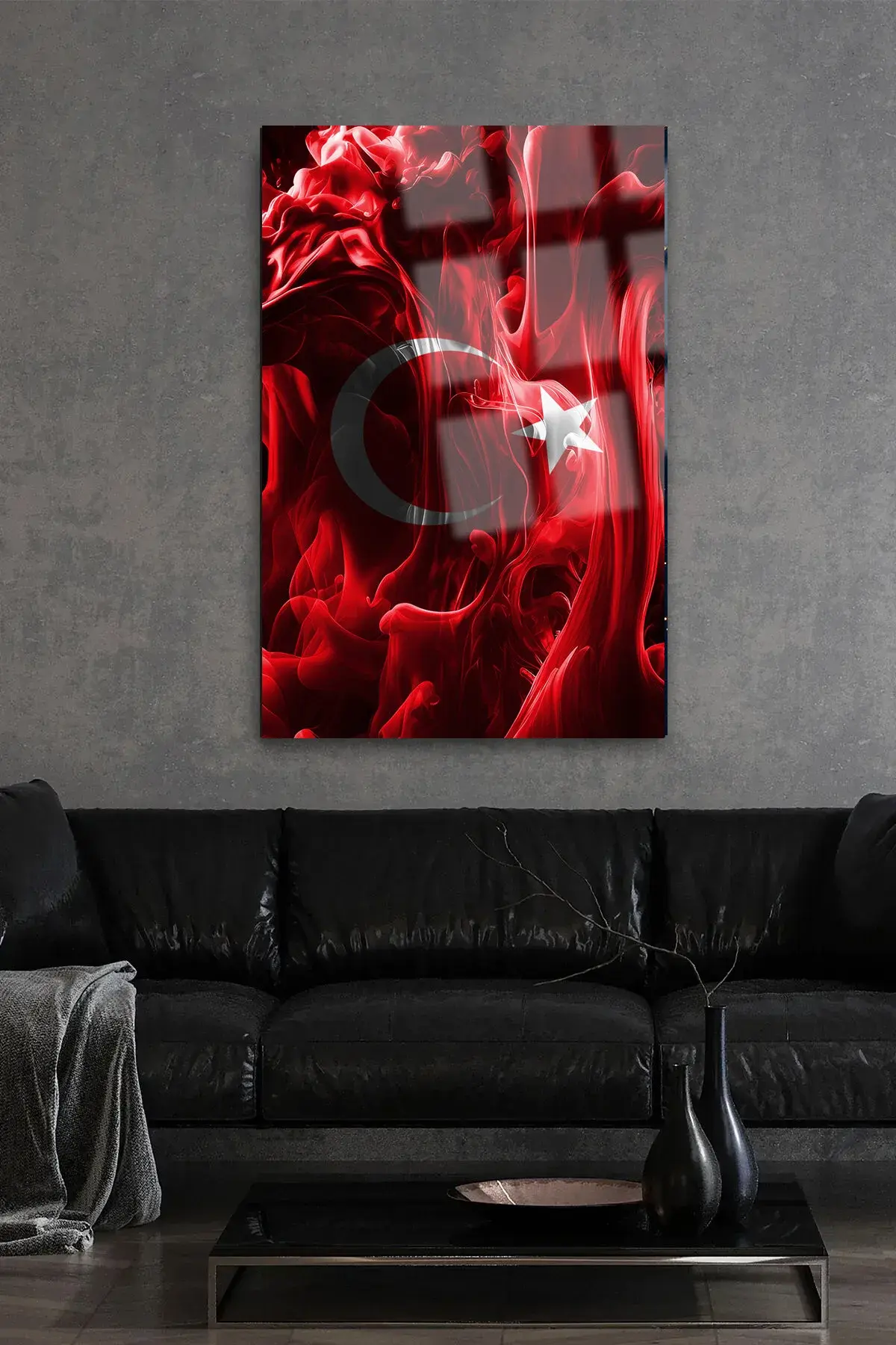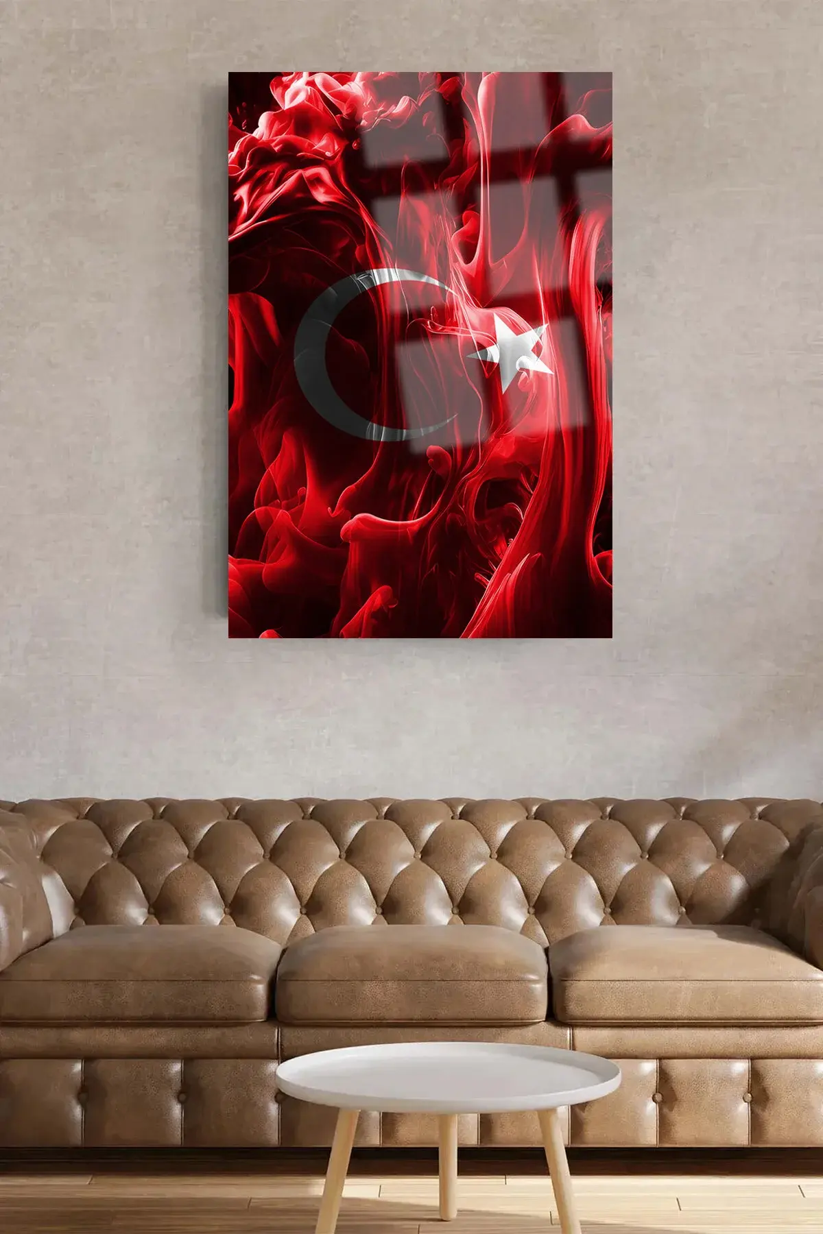 TASARIM KIRMIZI BEYAZ TÜRK BAYRAK KIRILMAZ LÜKS CAM TABLO ULTRA YÜKSEK ÇÖZÜNÜRLÜKLÜ EV HEDİYESİ Kırmızı