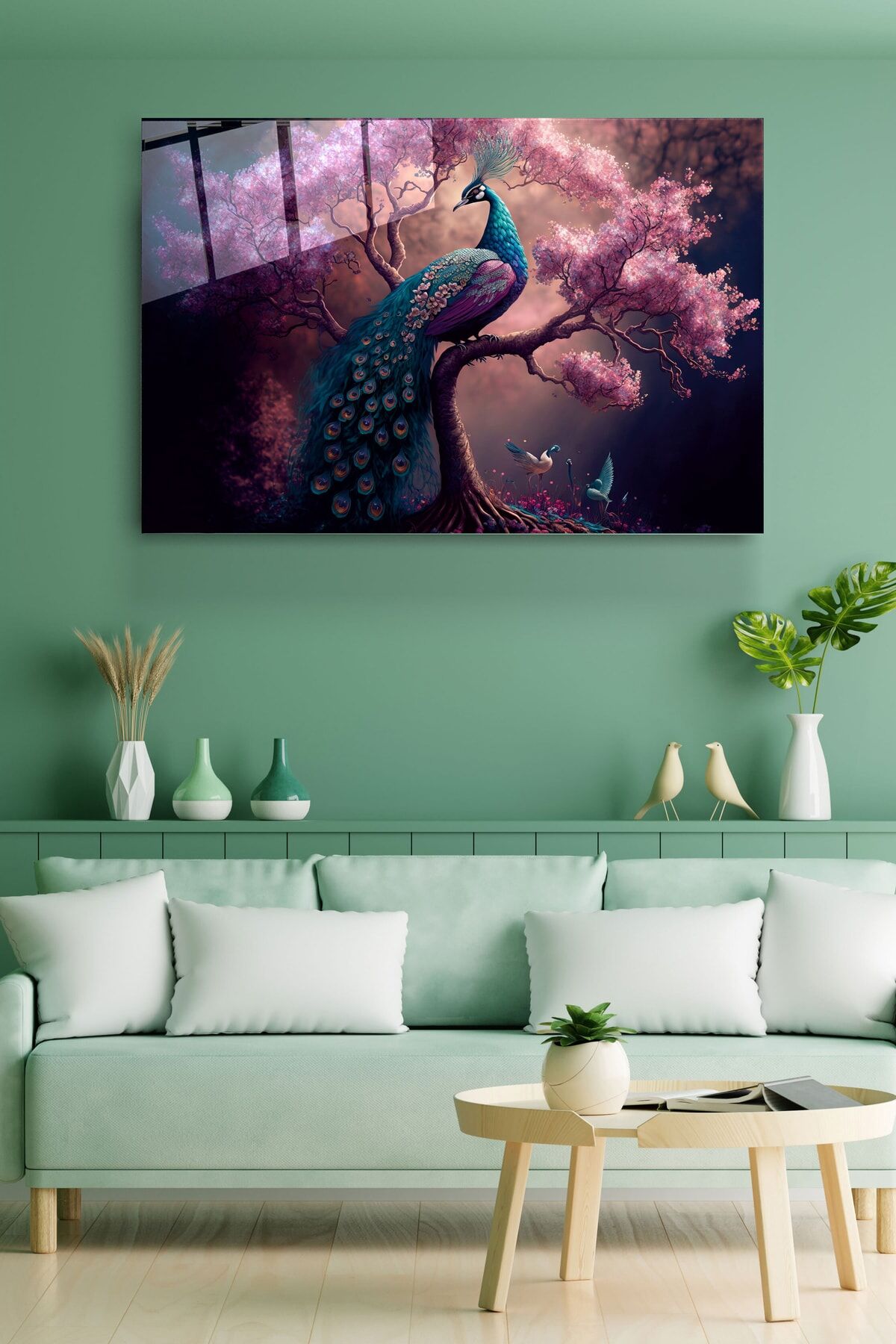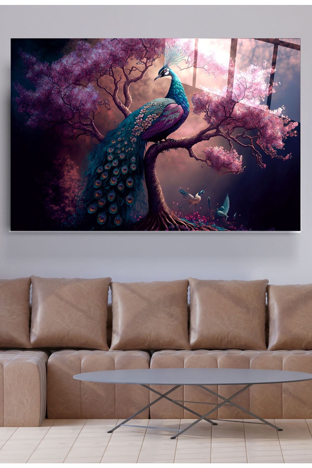 Tavus Kuşu Cam Tablo, Dekoratif Cam Tablo
