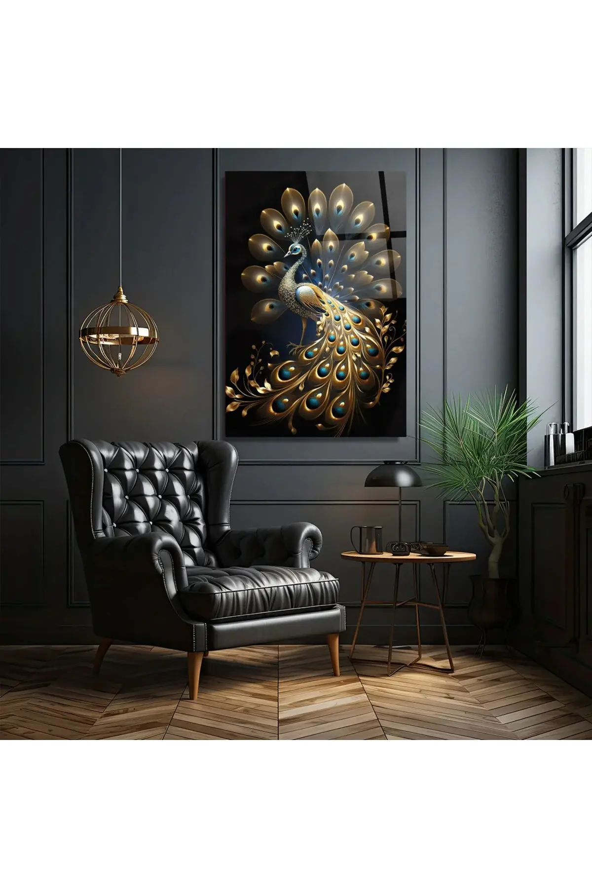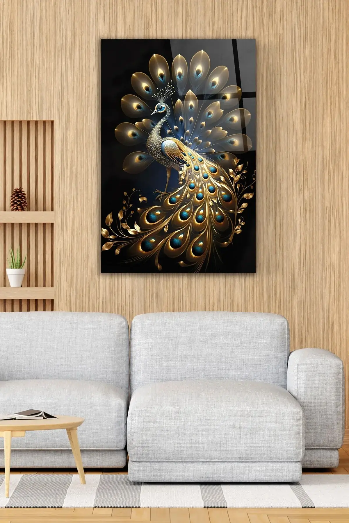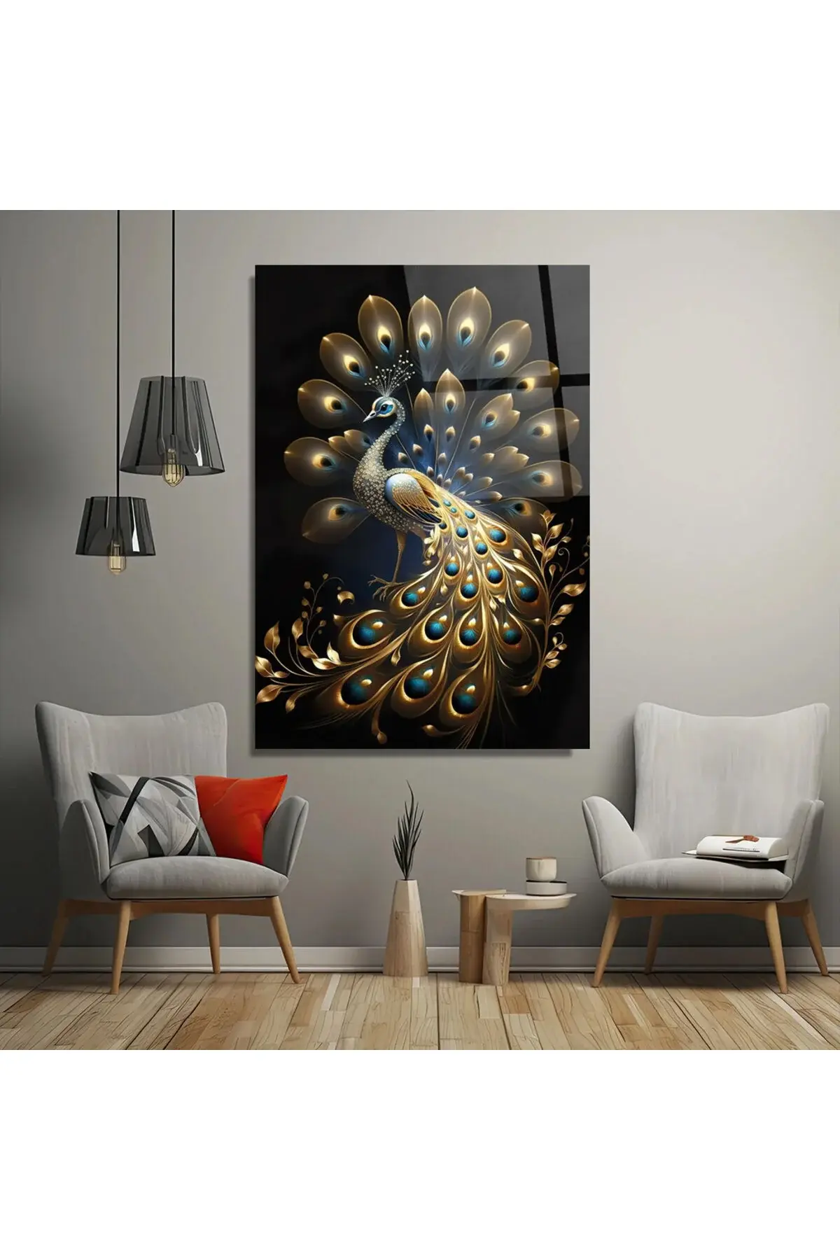 TAVUS KUŞU HARİKA TASARIM ULTA YÜKSEK ÇÖZÜNÜRLÜKLÜ KIRILMAZ CAM TABO EV HEDİYESİ Siyah