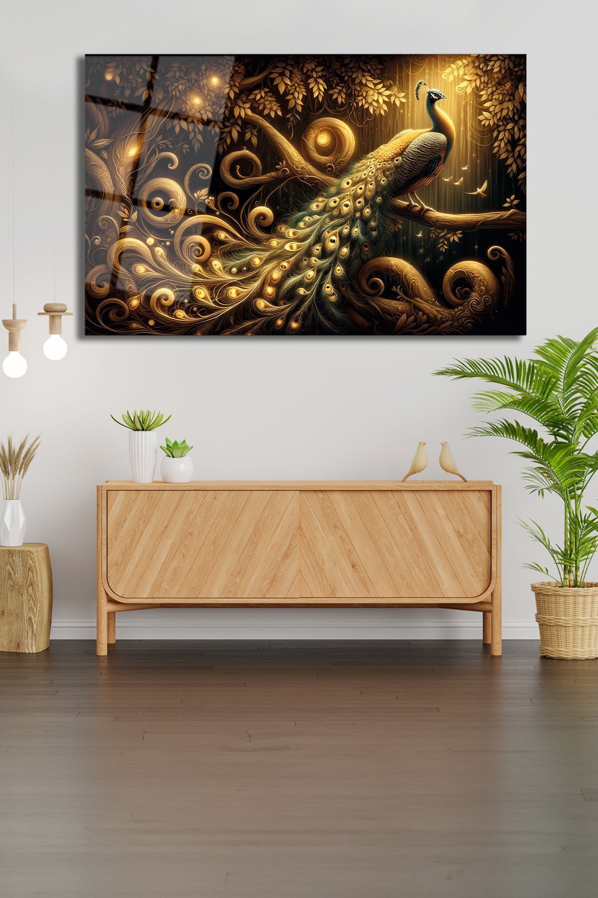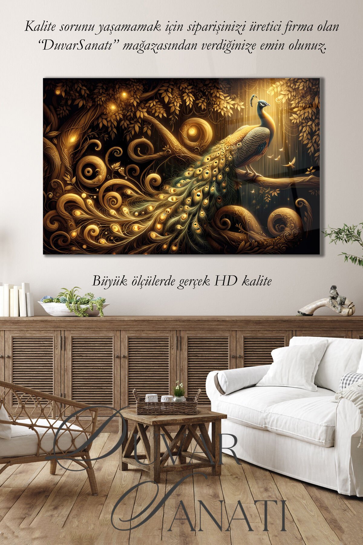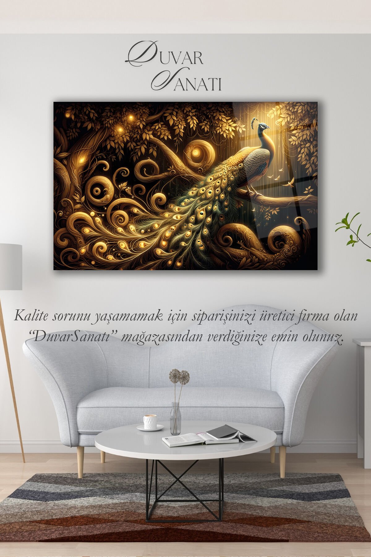 Tavus Kuşu Modern Cam Tablo Ev Ofis Salon Hediyelik Soyut Büyük Tablo Kahverengi