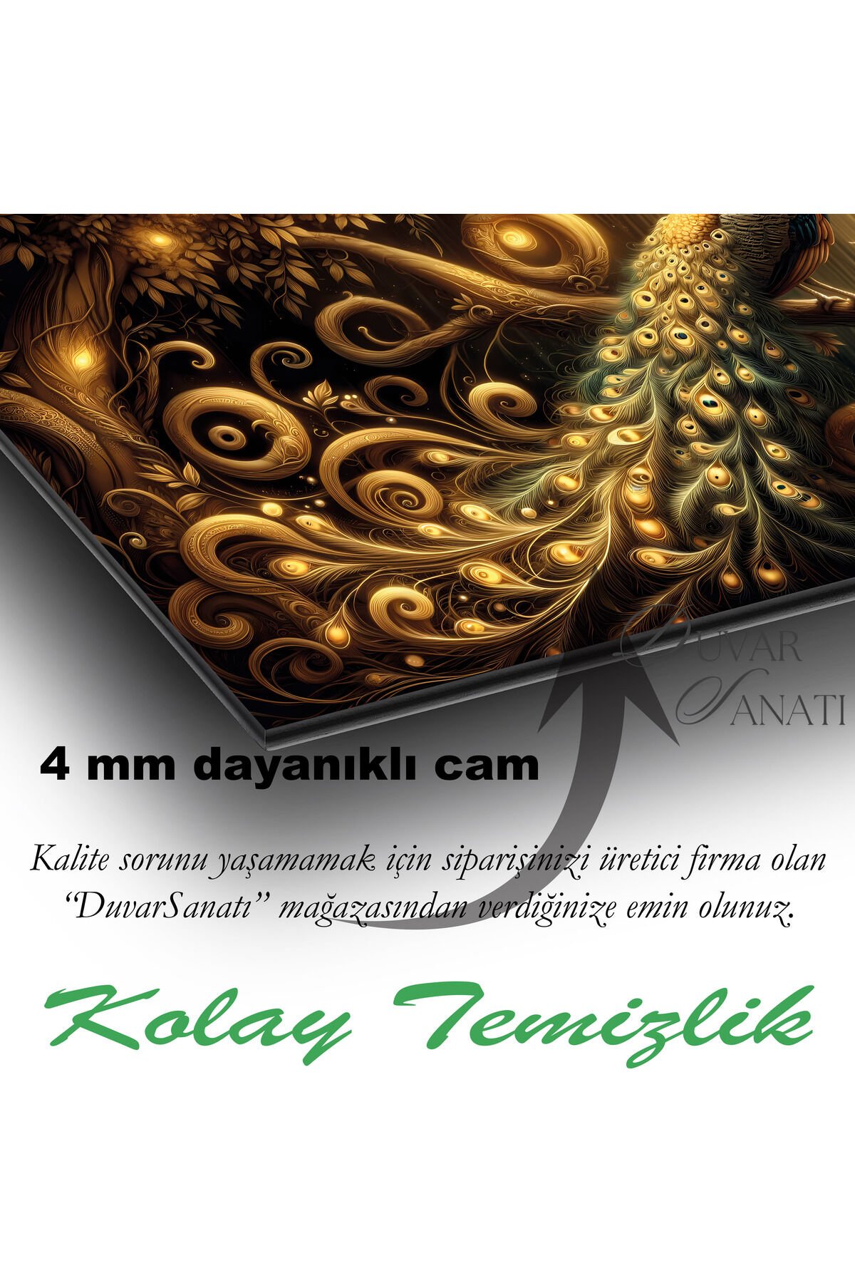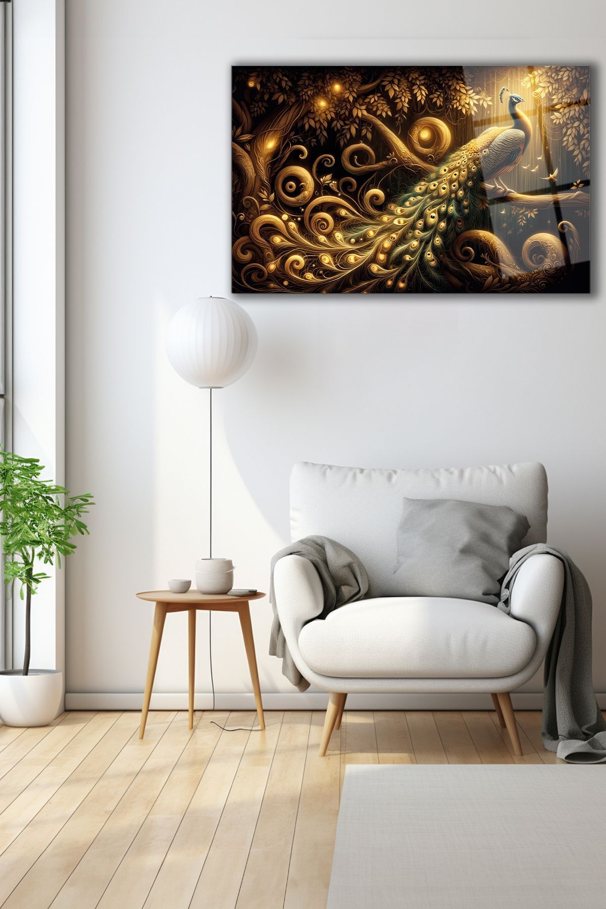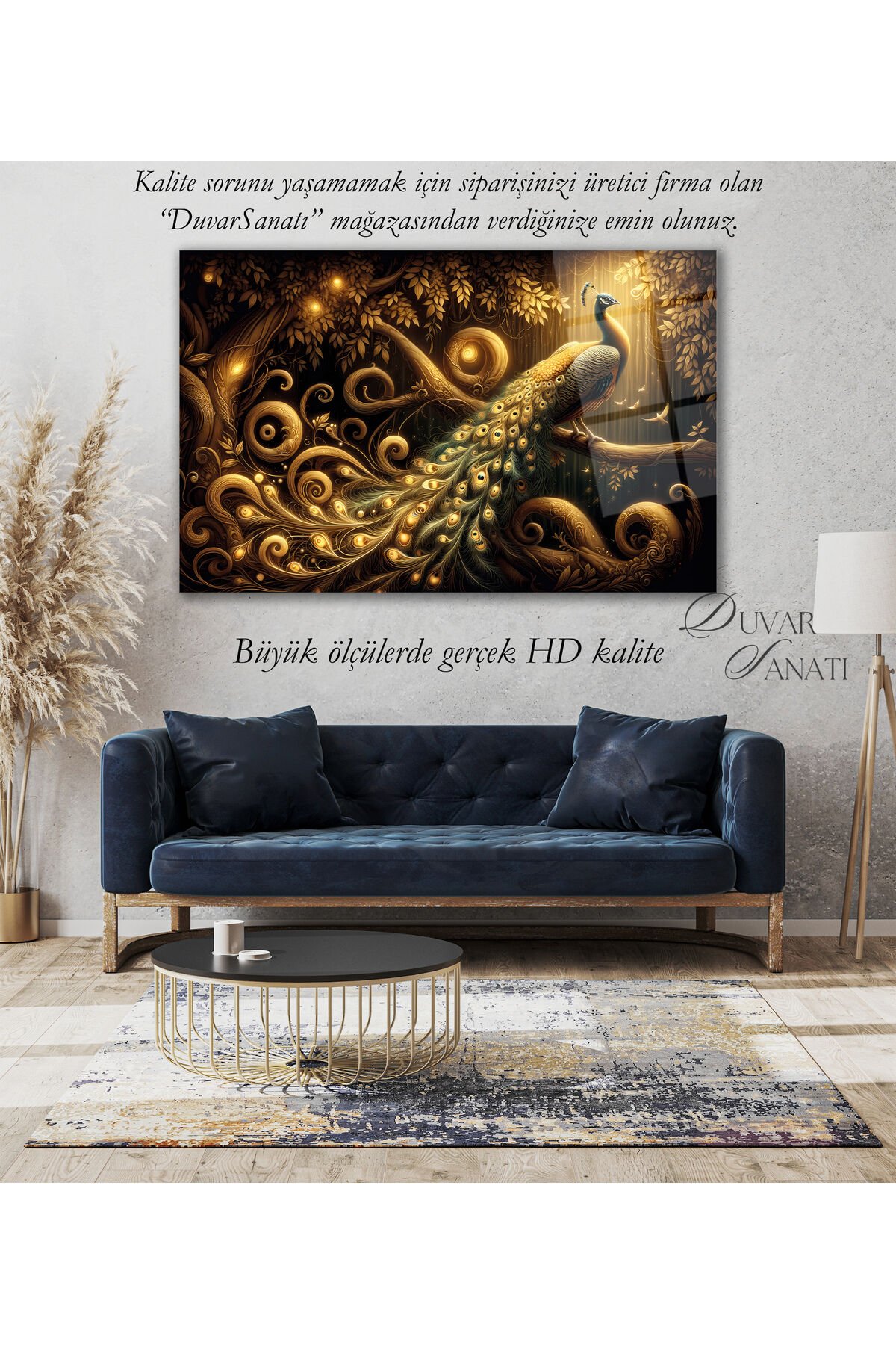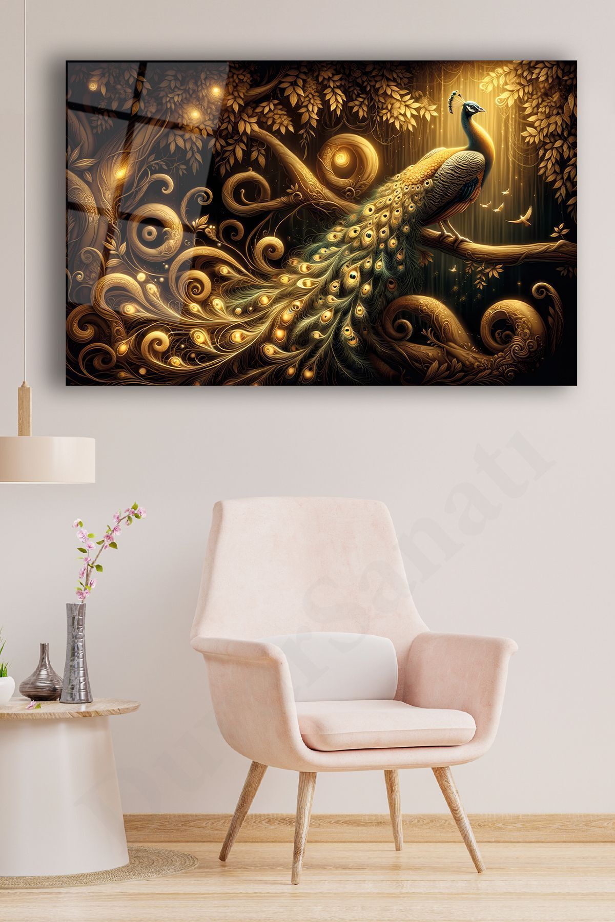Tavus Kuşu Modern Cam Tablo Ev Ofis Salon Hediyelik Soyut Büyük Tablo Kahverengi