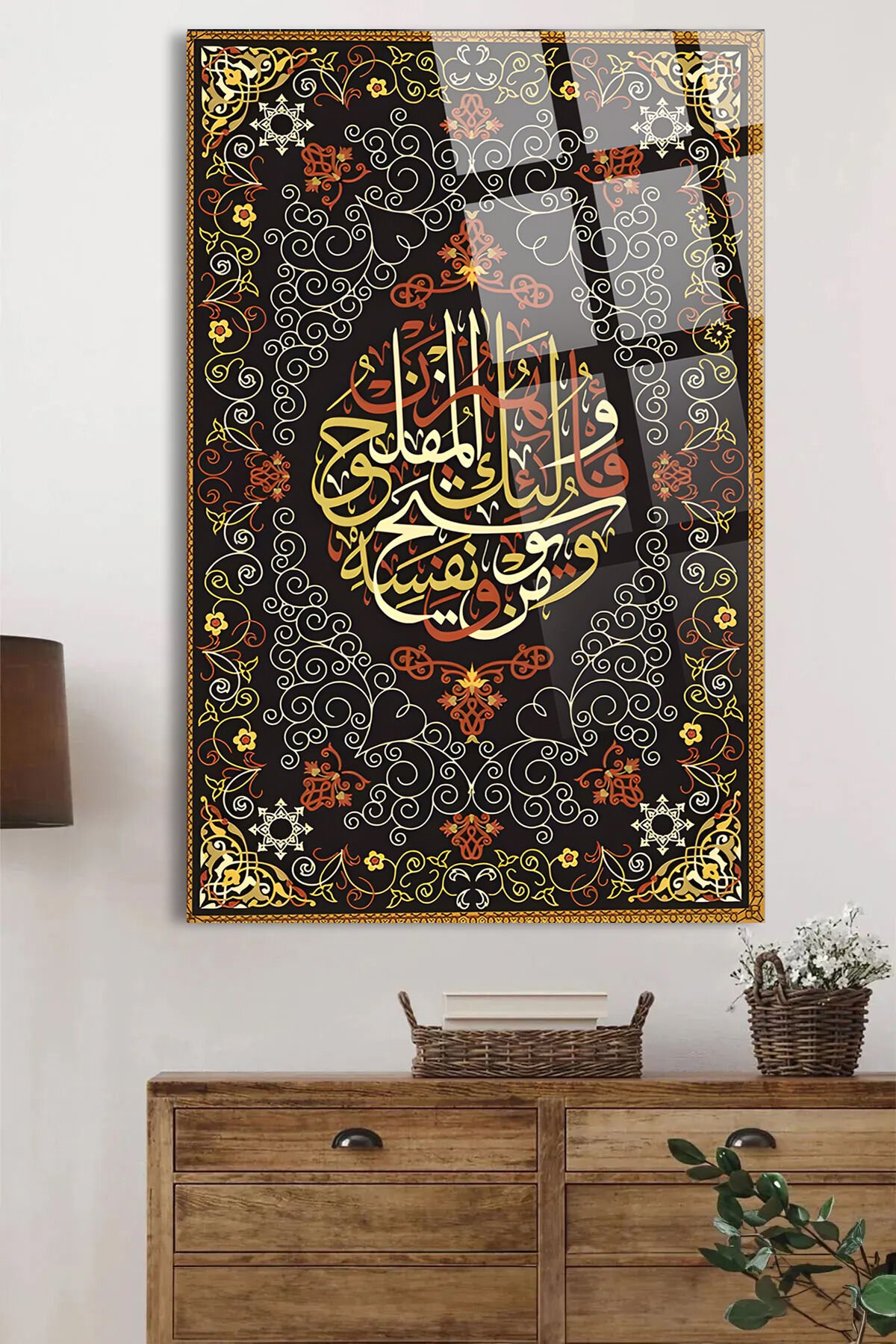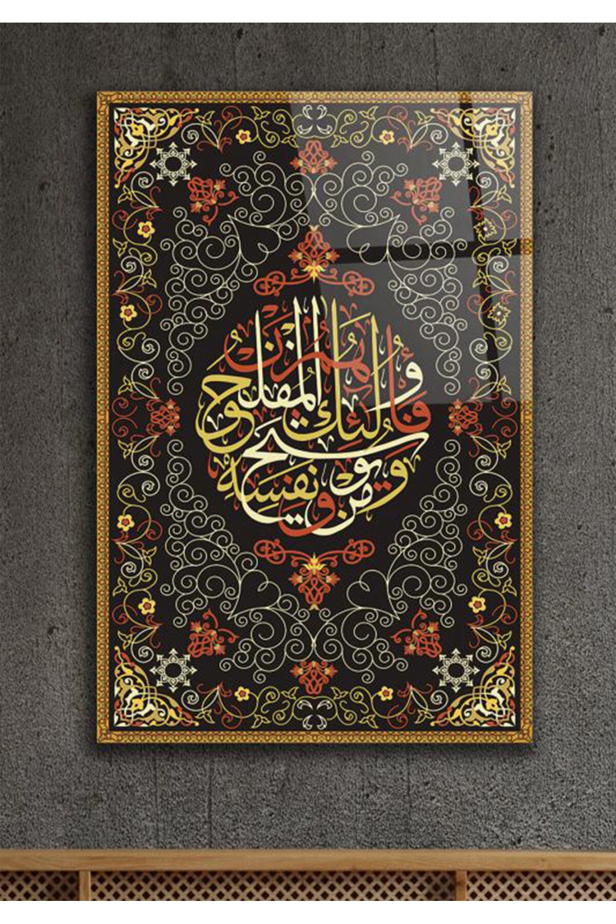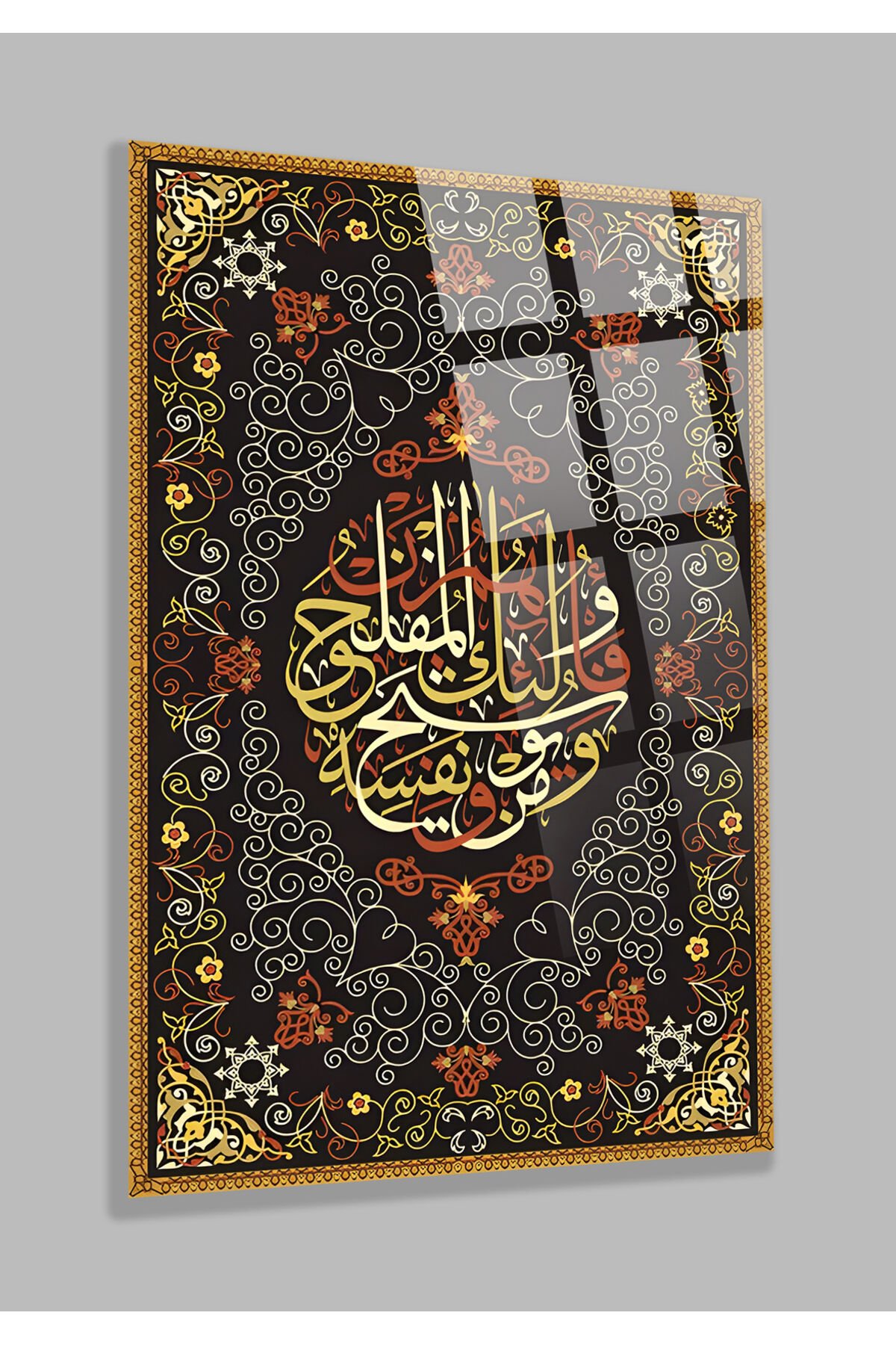 Teğabun Suresi 64. Sure 16. Ayet KIRILMAZ LÜKS CAM TABLO DİNİ İSLAMİ TABLO EV HEDİYESİ İŞ HEDİYESİ Kahverengi