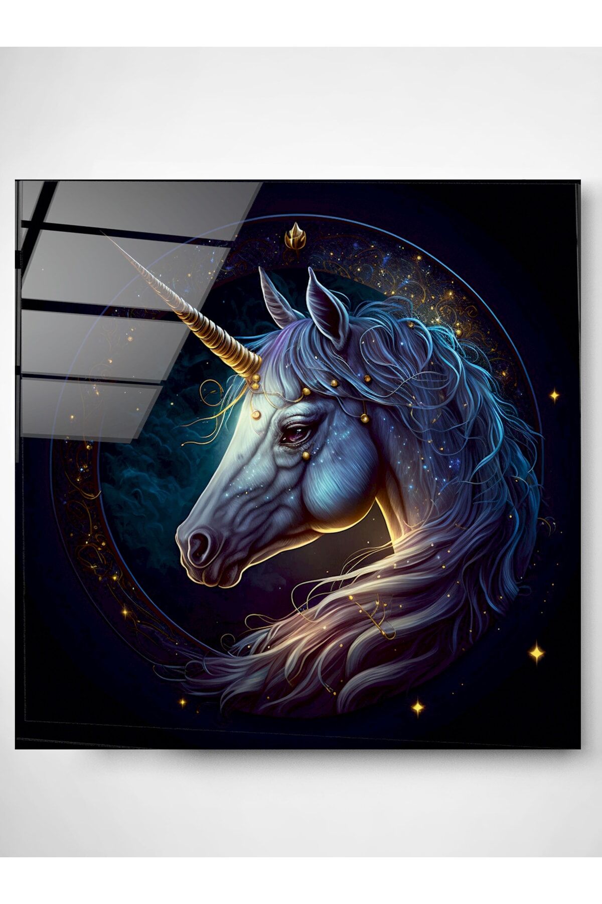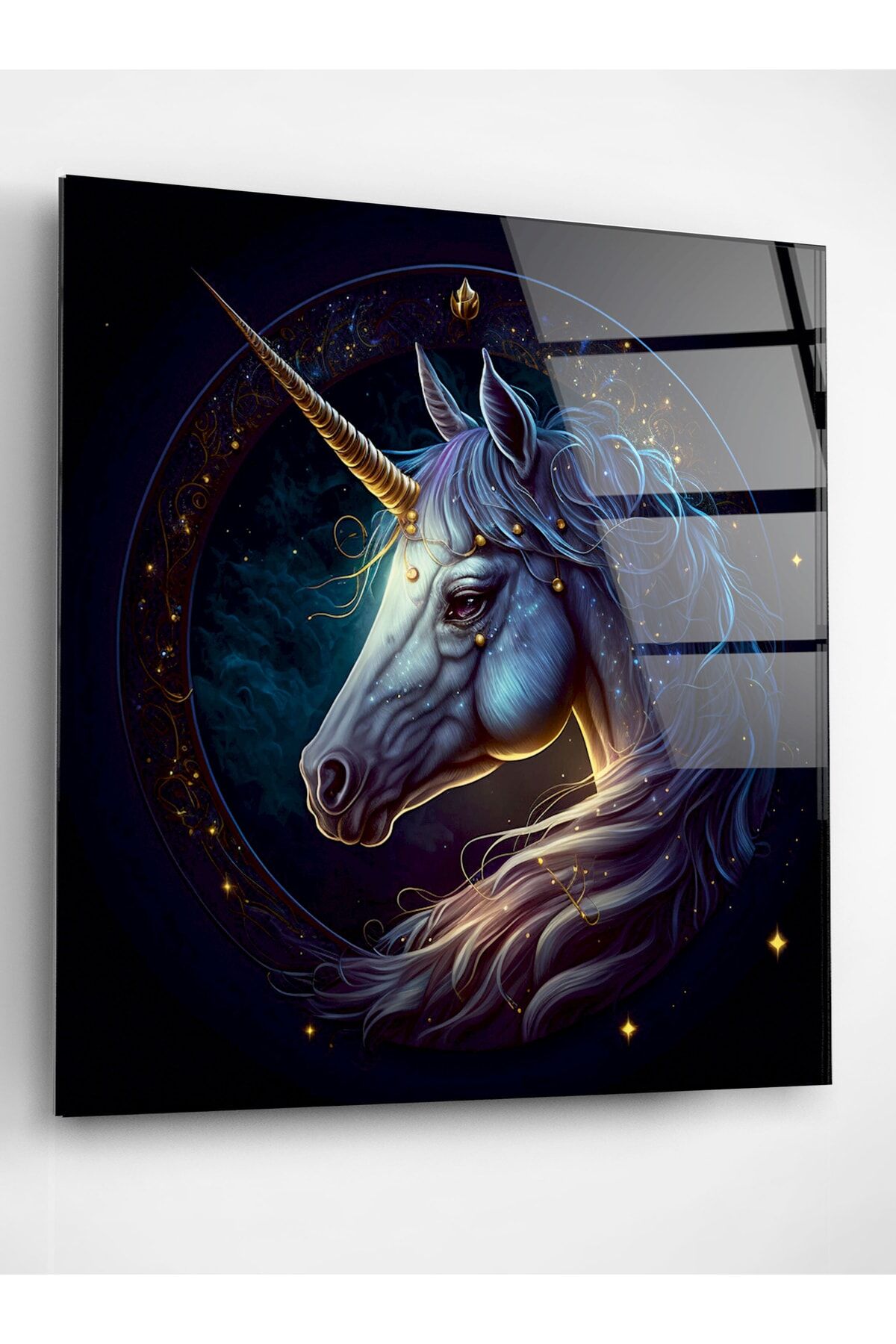 Tek Boynuzlu At Cam Tablo, Dekoratif Cam Tablo