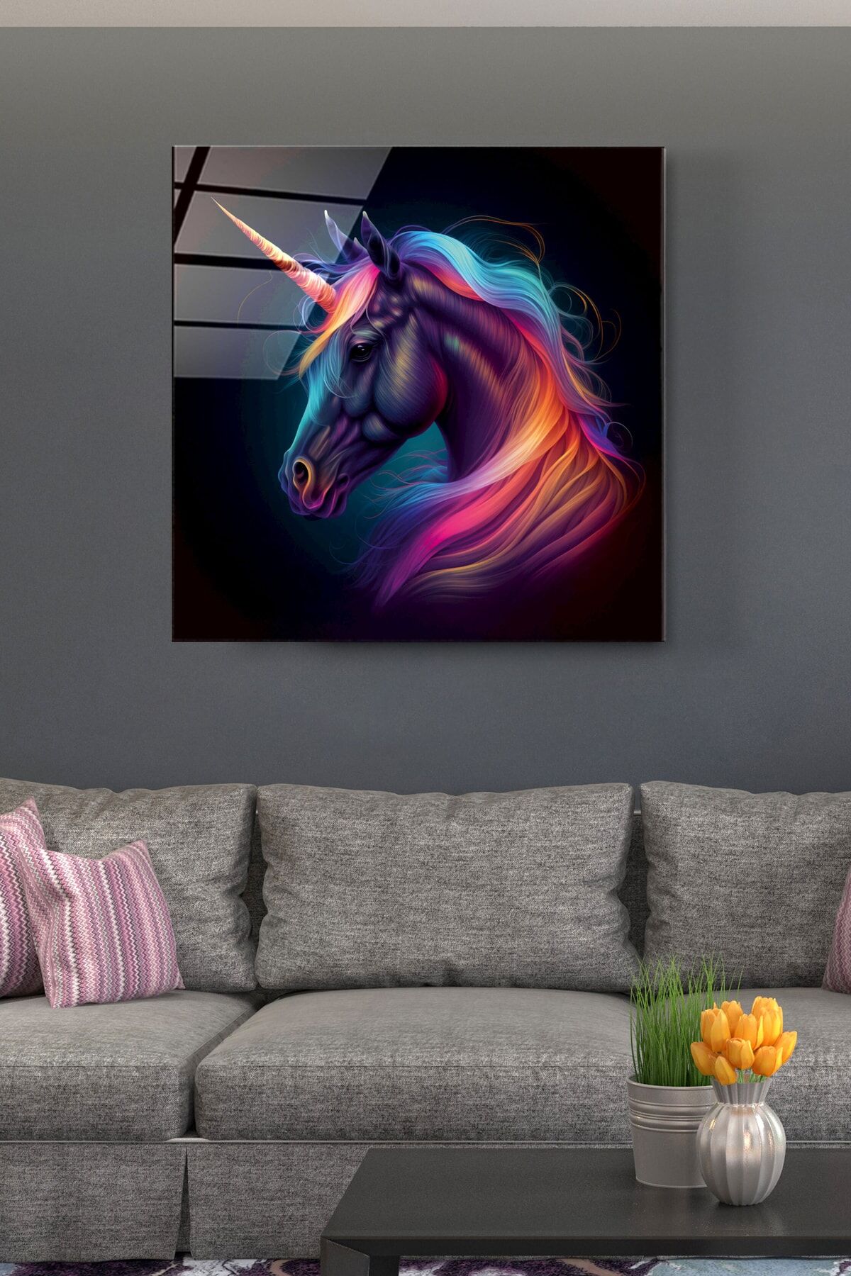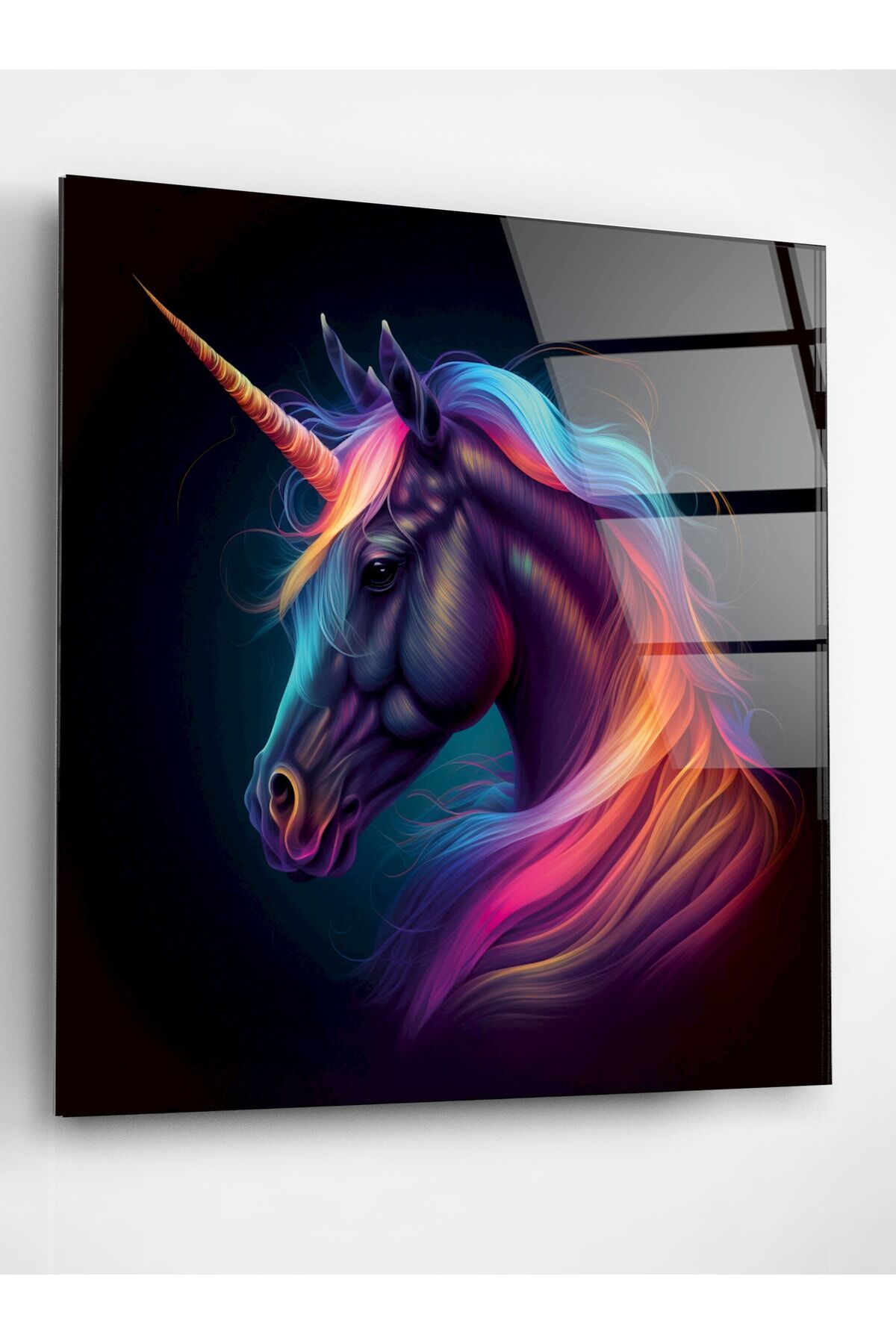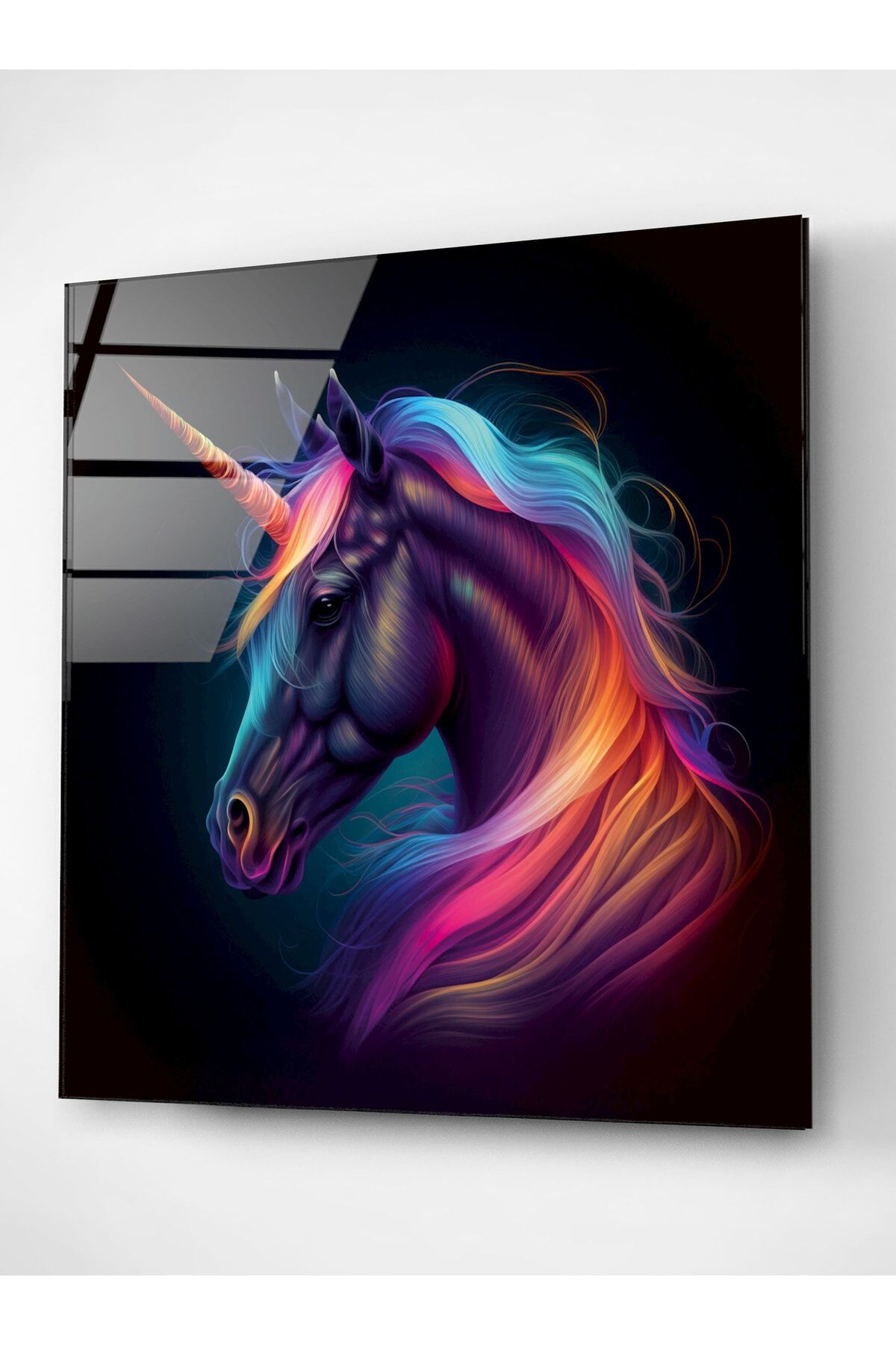 Tek Boynuzlu At Cam Tablo, Dekoratif Cam Tablo