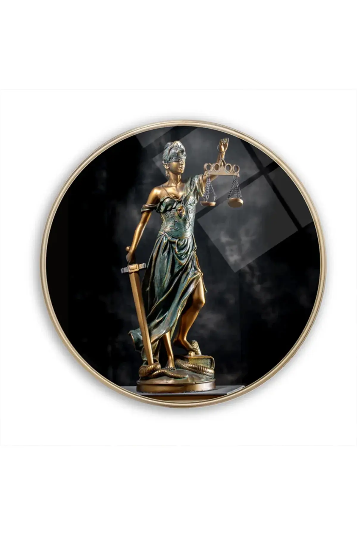 THEMİS HEYKELİ AVUKATLIK BÜROSU İÇİN MODERN KIRILMAZ LÜKS YUVARLAK CAM TABLO MODERN HEDİYE TABLO Siyah