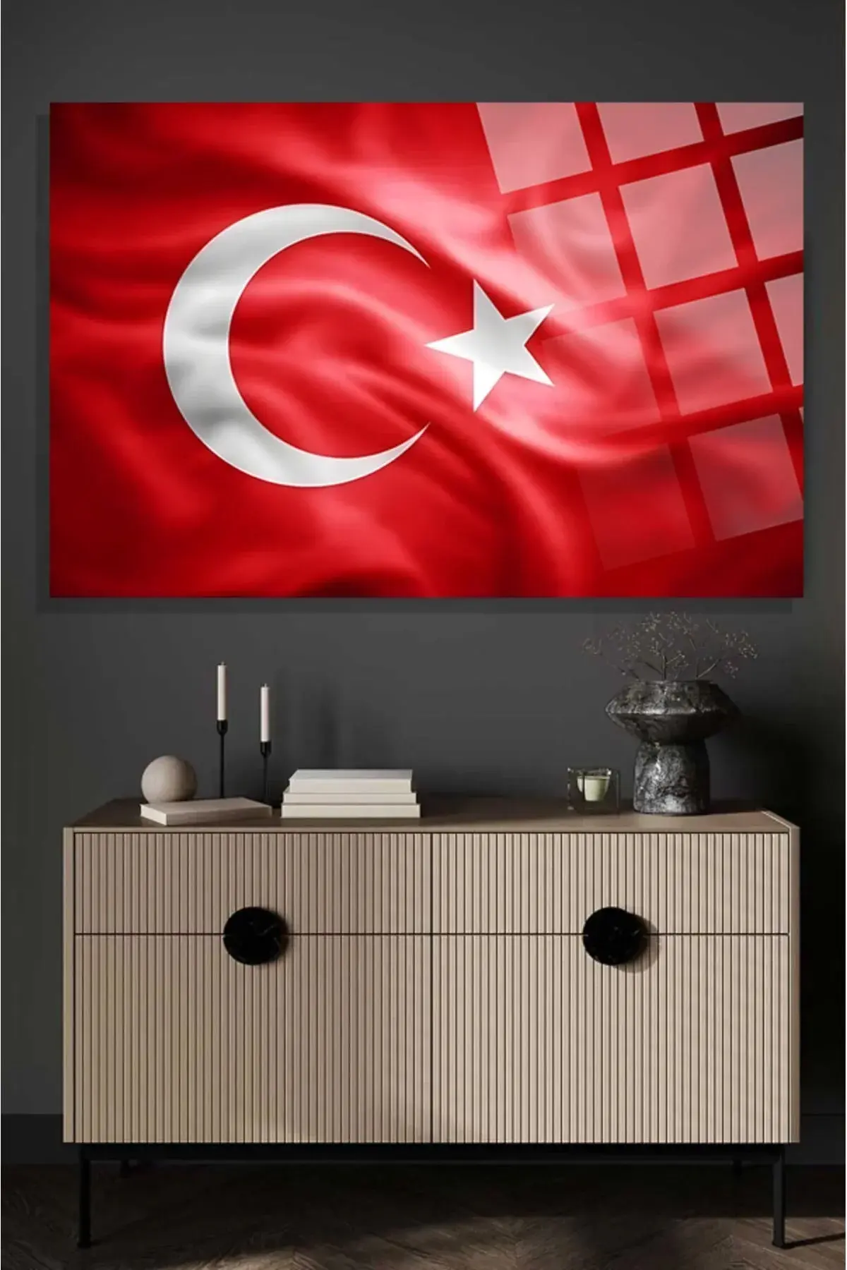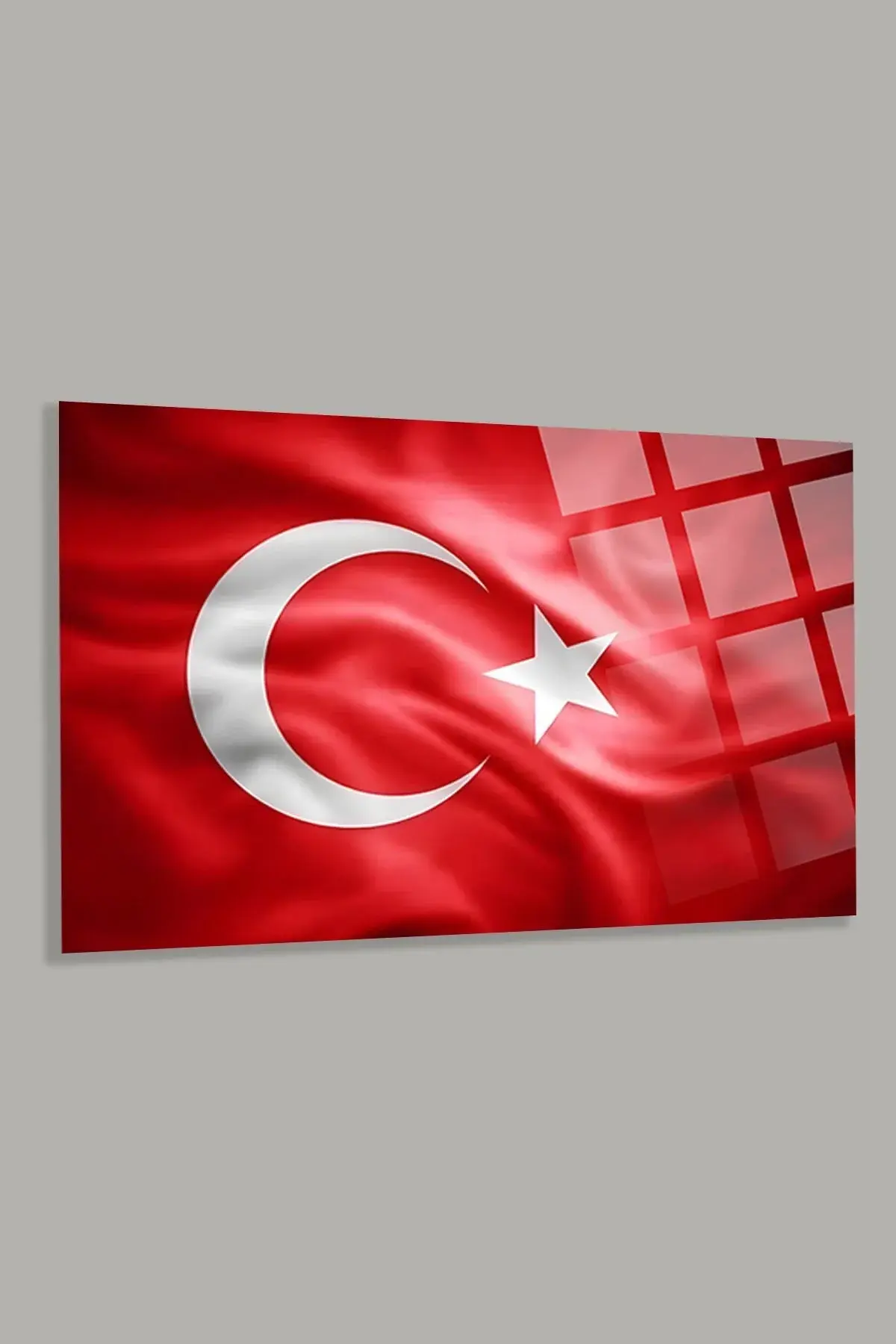 Türk Bayrağı 3 Ev Ofis Okul İçin 4mm Kırılmaz Temperli Yüksek Çözünürlüklü Cam Tablo