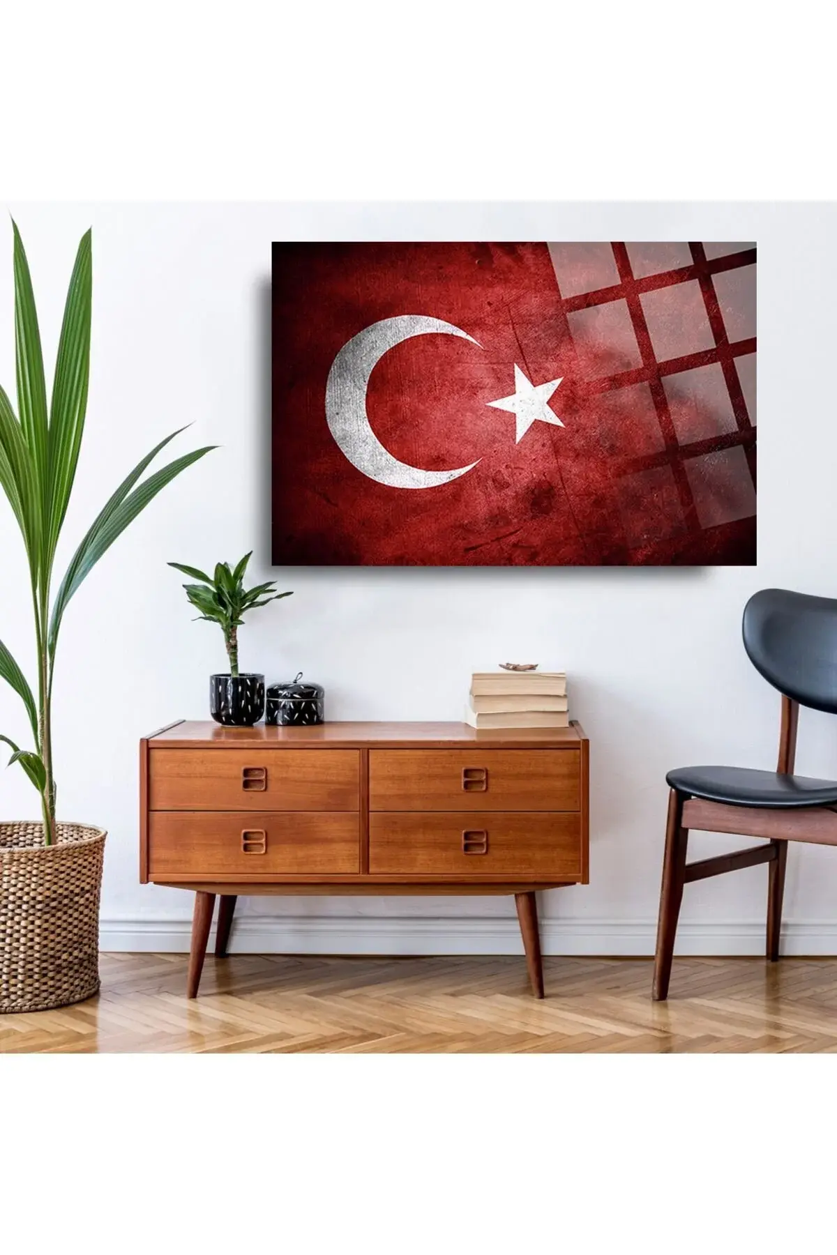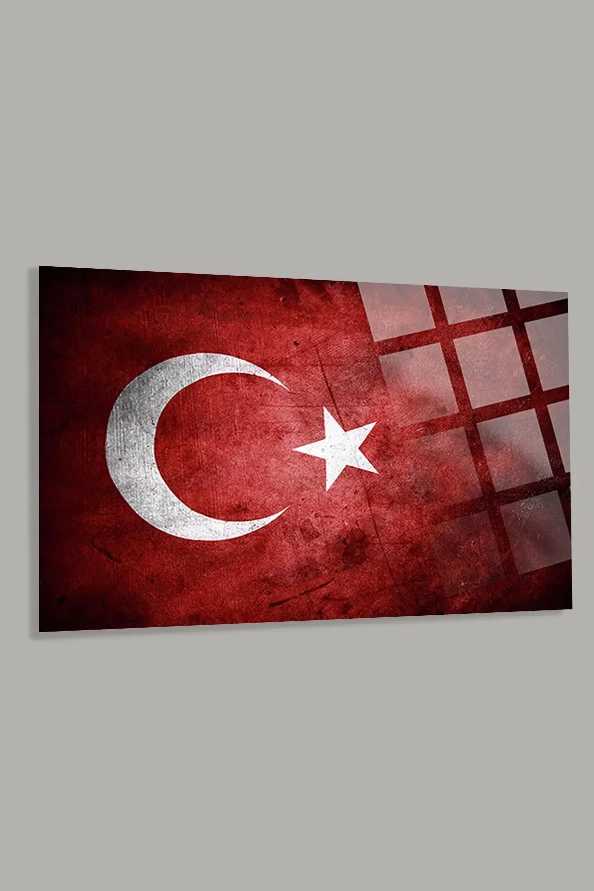 Türk Bayrağı 4 Ev Ofis Okul İçin 4mm Kırılmaz Temperli Yüksek Çözünürlüklü Cam Tablo
