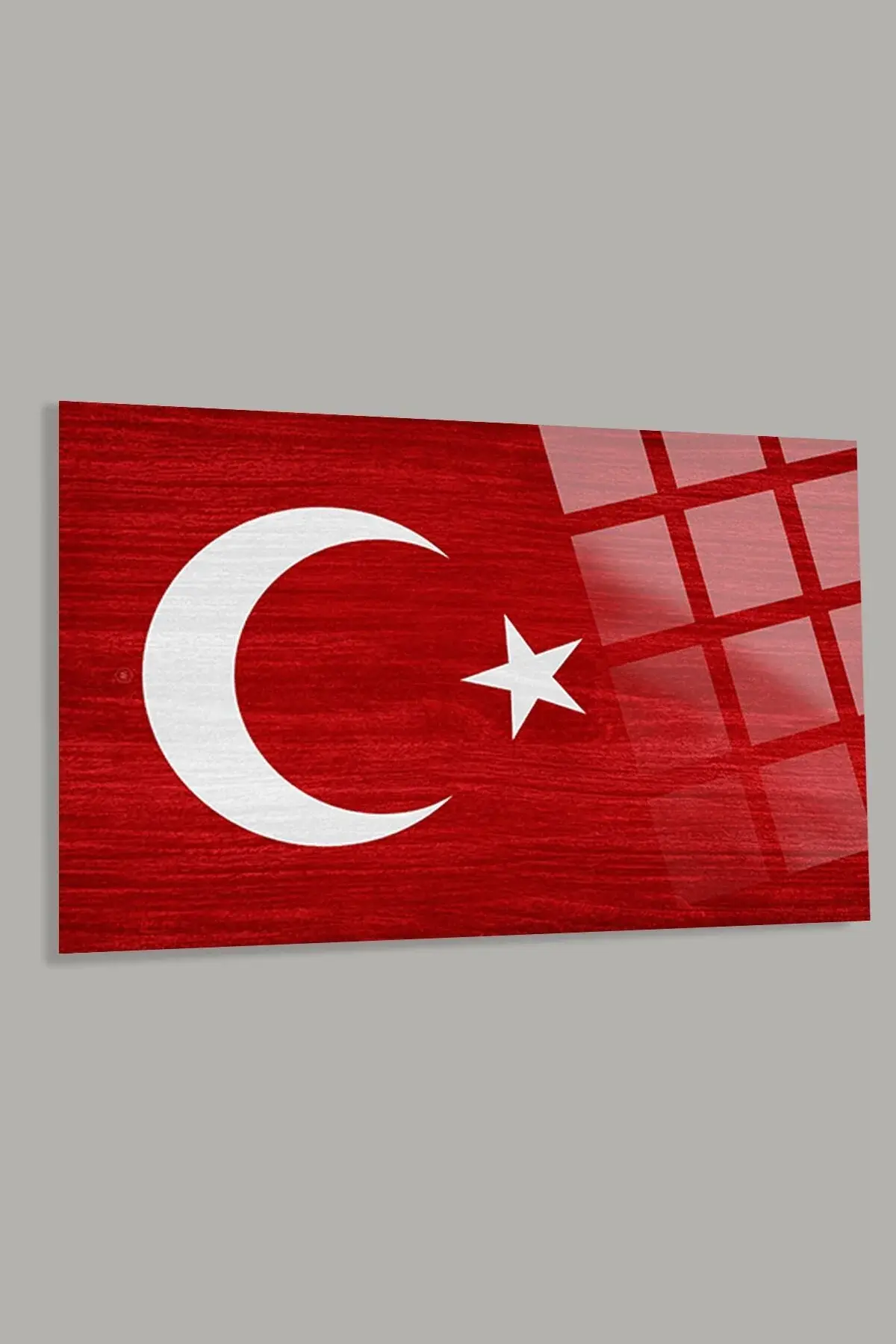 Türk Bayrağı 5 Ev Ofis Okul İçin 4mm Kırılmaz Temperli Yüksek Çözünürlüklü Cam Tablo