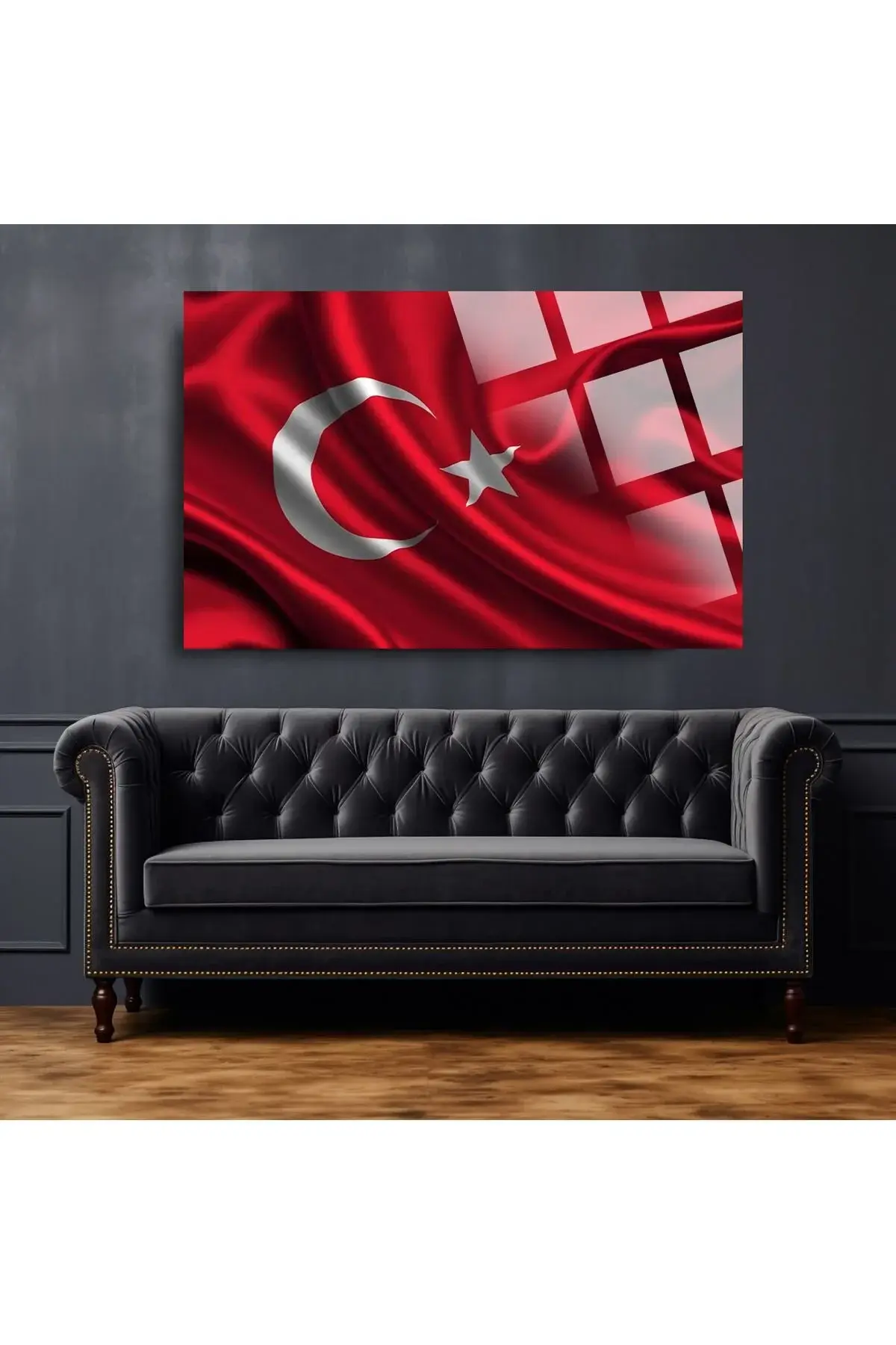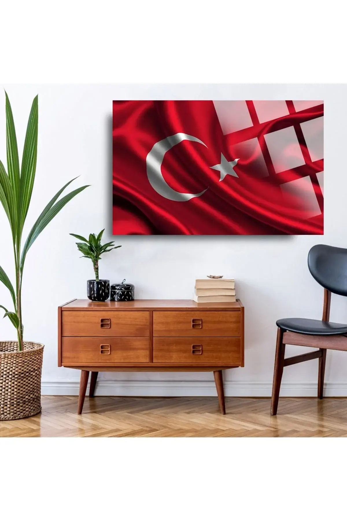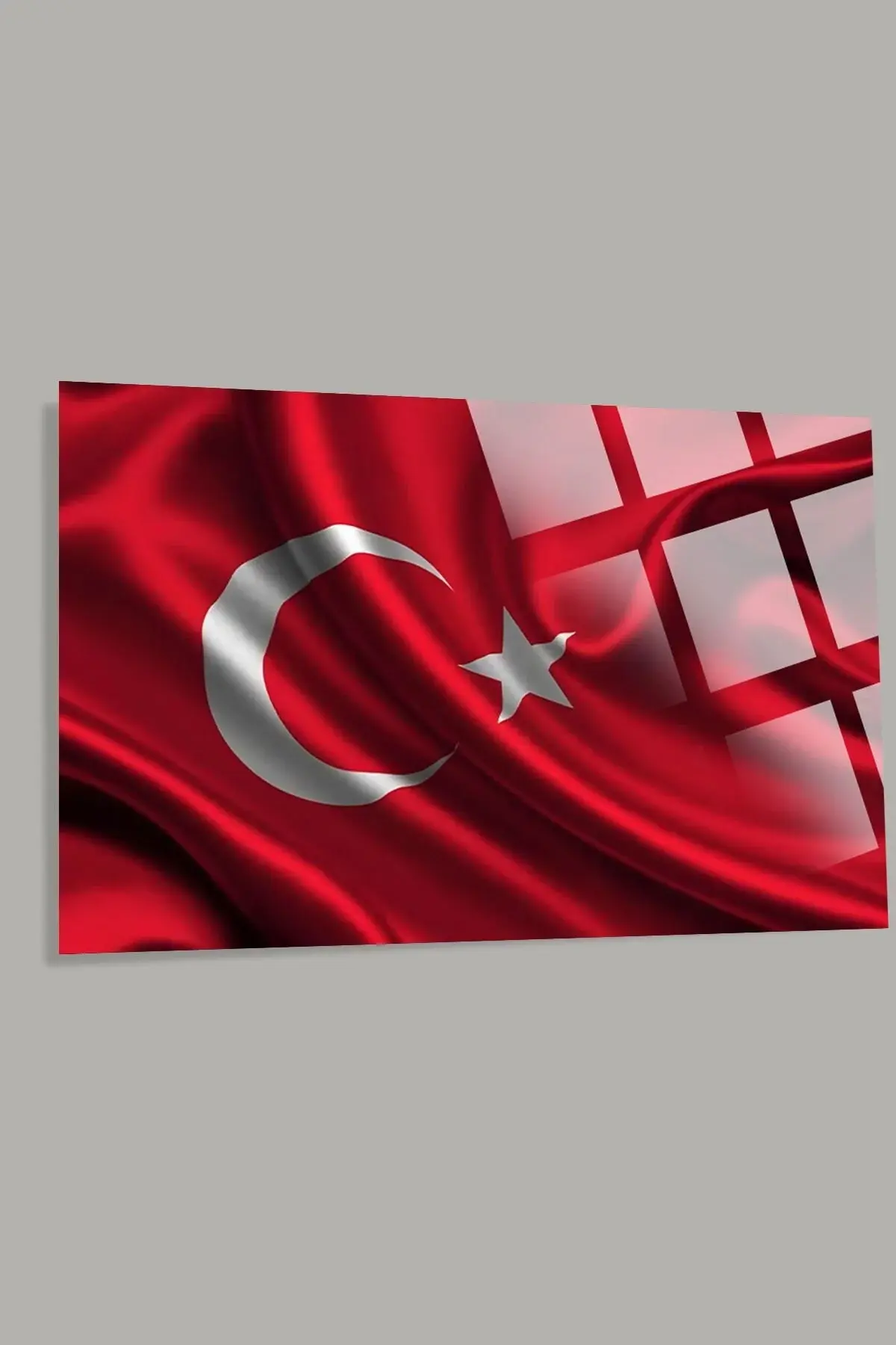 Türk Bayrağı 6 Ev Ofis Okul İçin 4mm Kırılmaz Temperli Yüksek Çözünürlüklü Cam Tablo