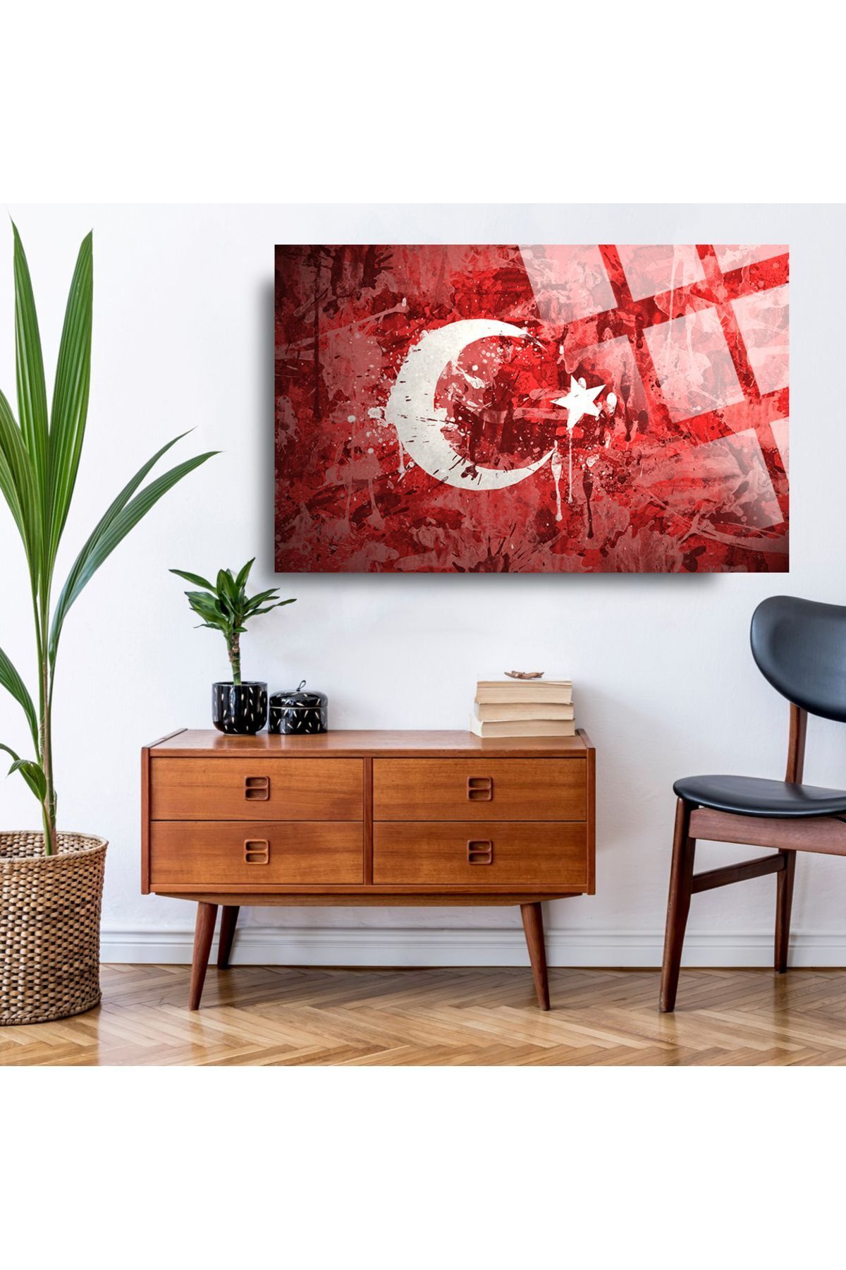 Türk Bayrağı 8 Ev Ofis Okul İçin 4mm Kırılmaz Temperli Yüksek Çözünürlüklü Cam Tablo beyaz