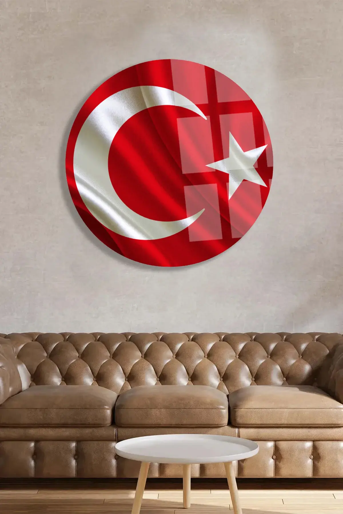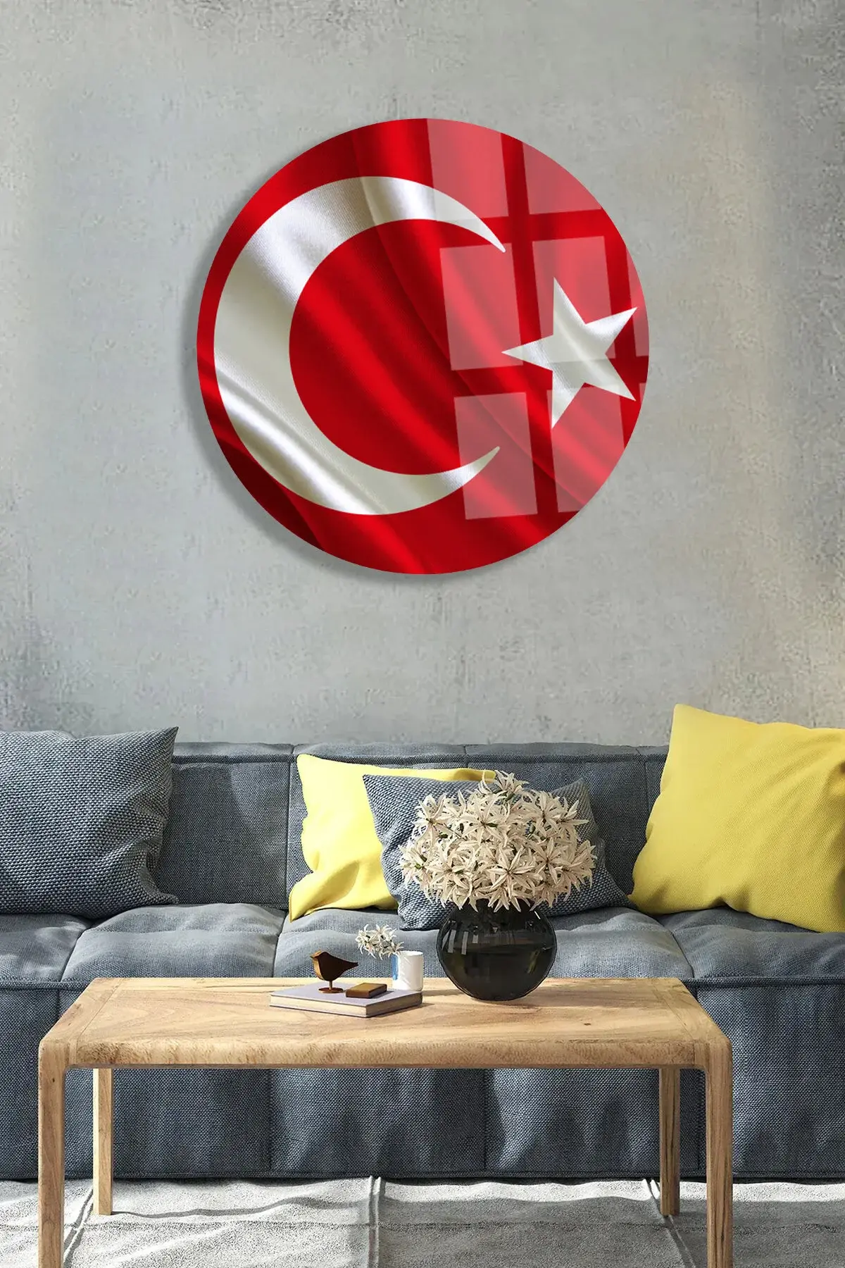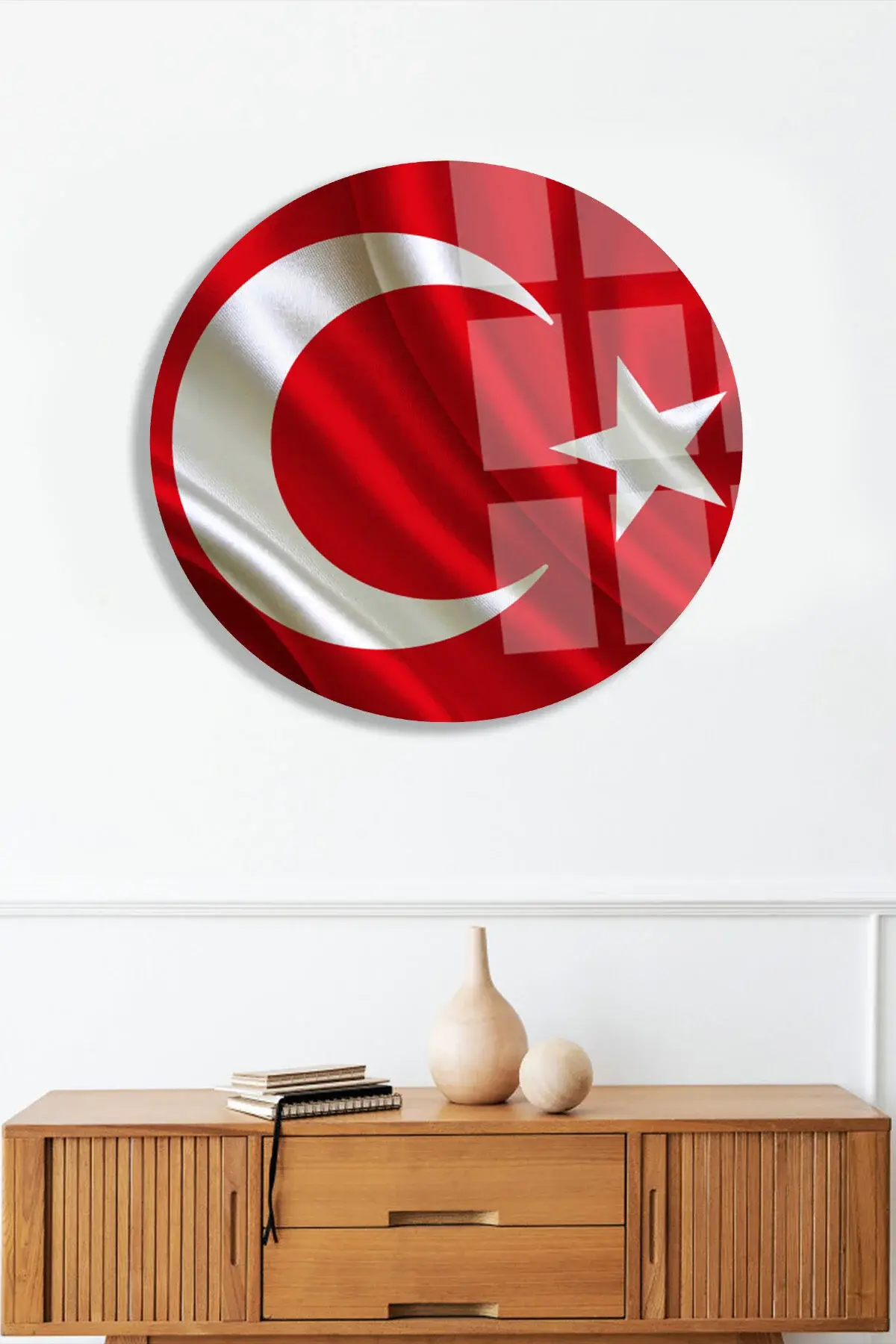 TÜRK BAYRAĞI CAM TABLOSU YUVARLAK ŞIK VE LÜKS KIRILMAZ MODERN CAM TABLO EV HEDİYESİ TABLO Kırmızı