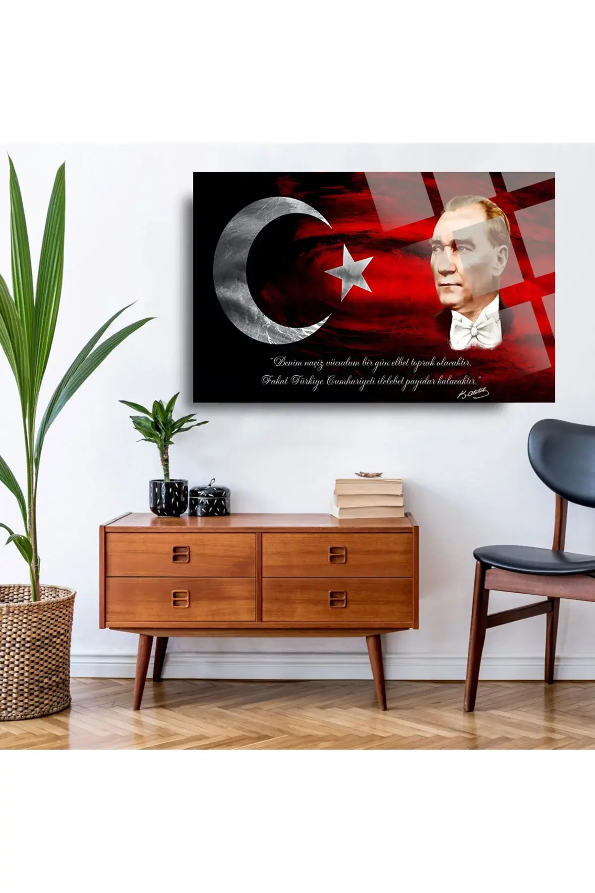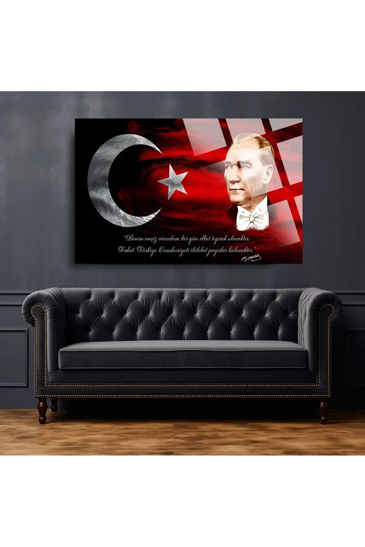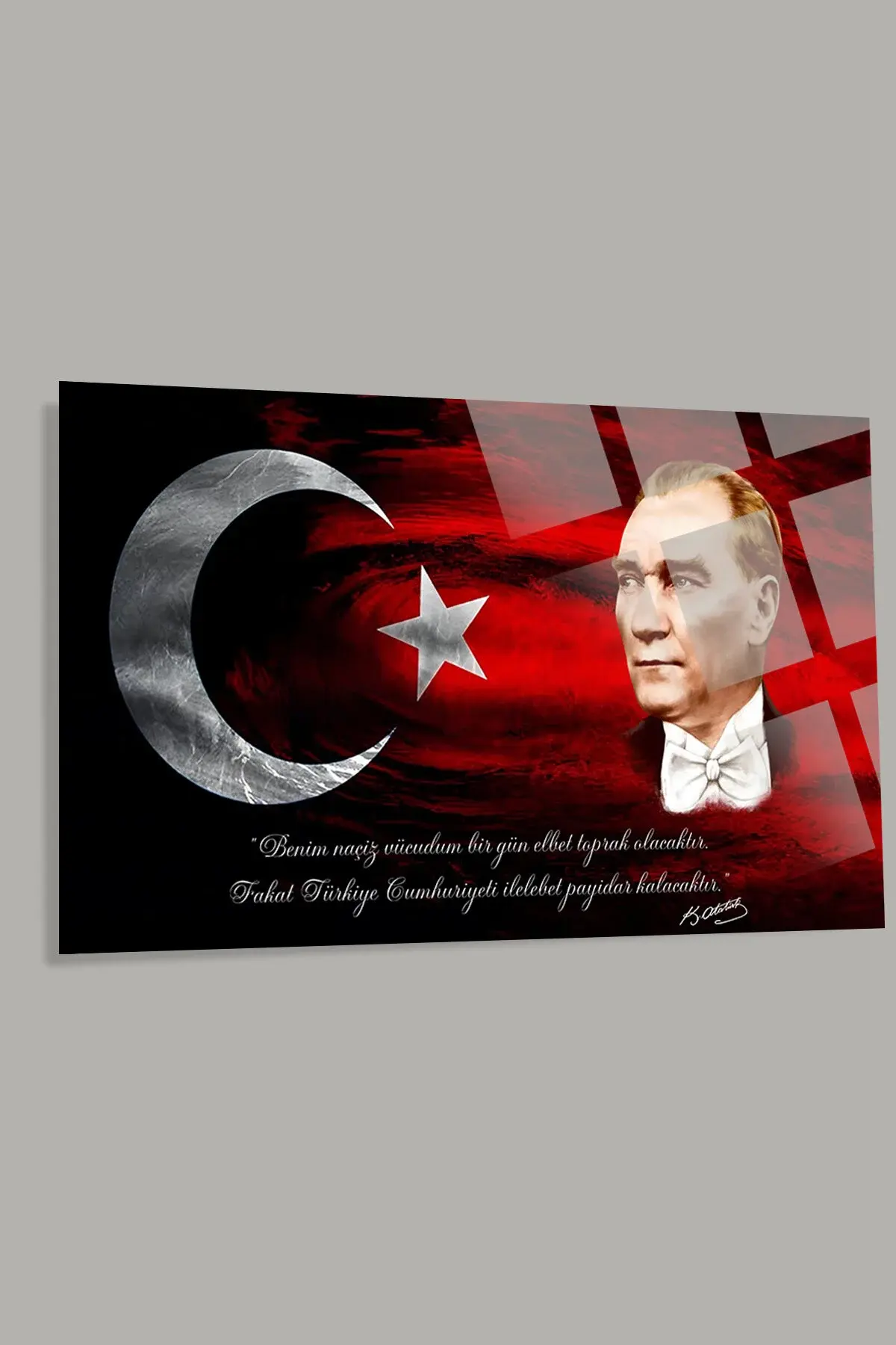 Türk Bayrağı Ve Atatürk 2 Ev Ofis Okul Için 4mm Kırılmaz Temperli Yüksek Çözünürlüklü Cam Tablo