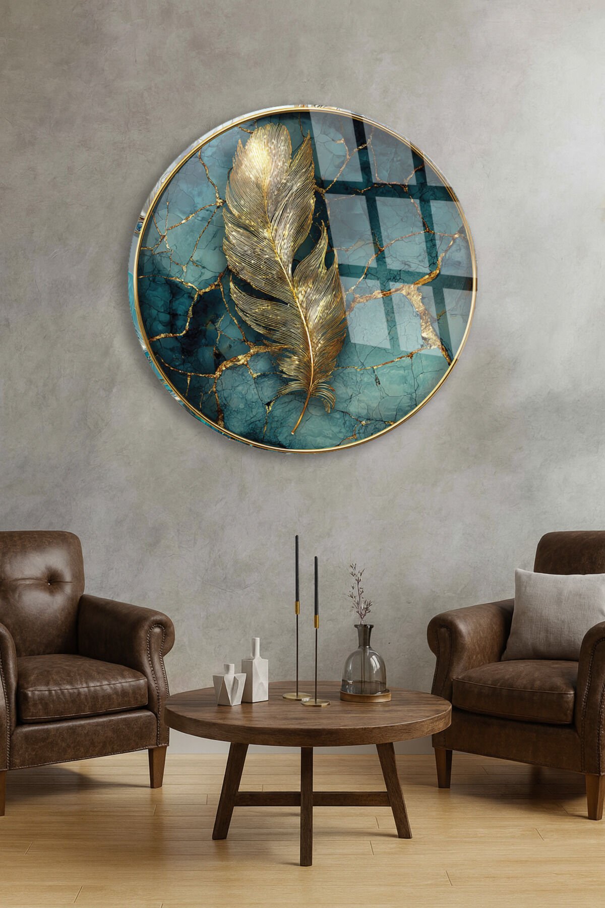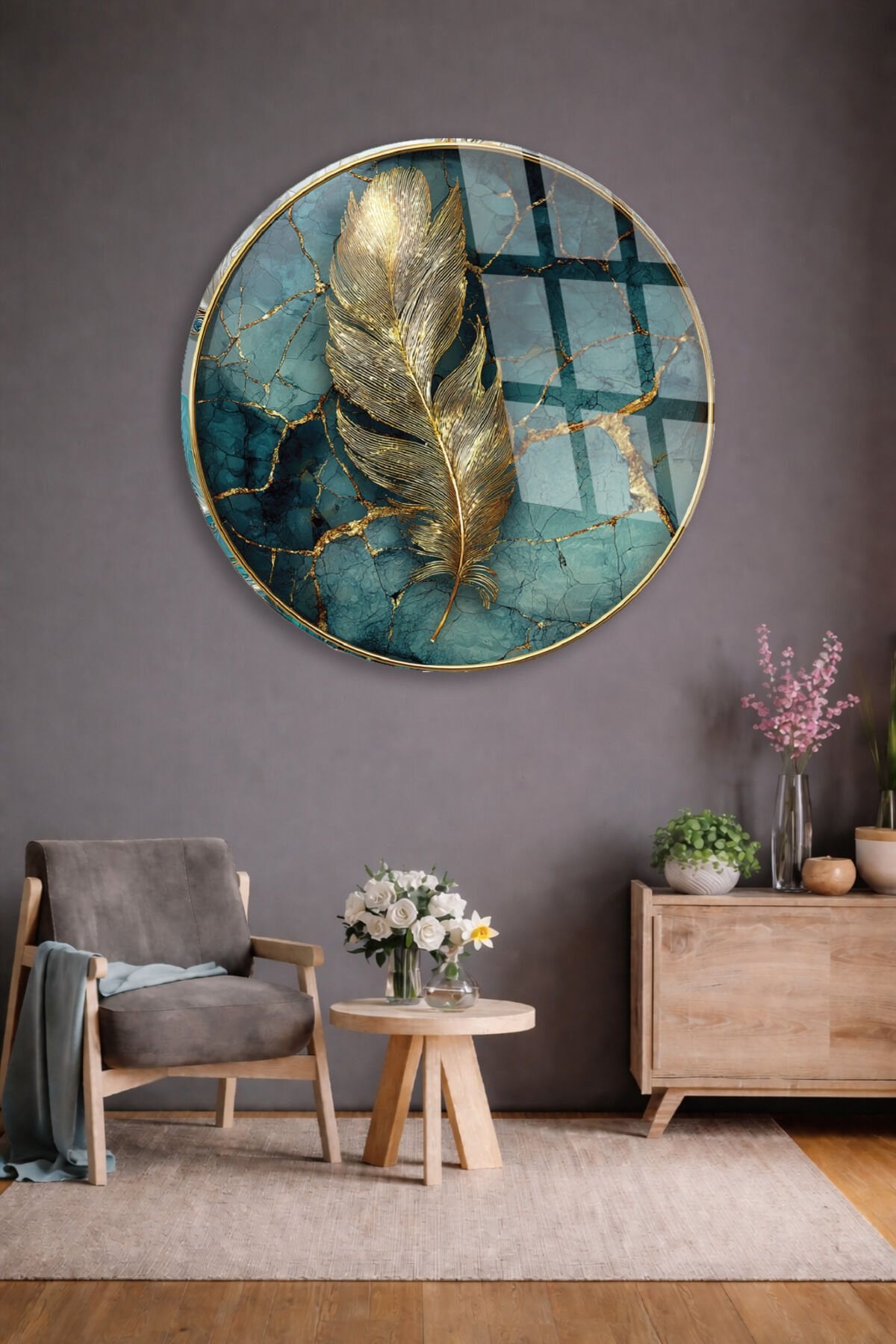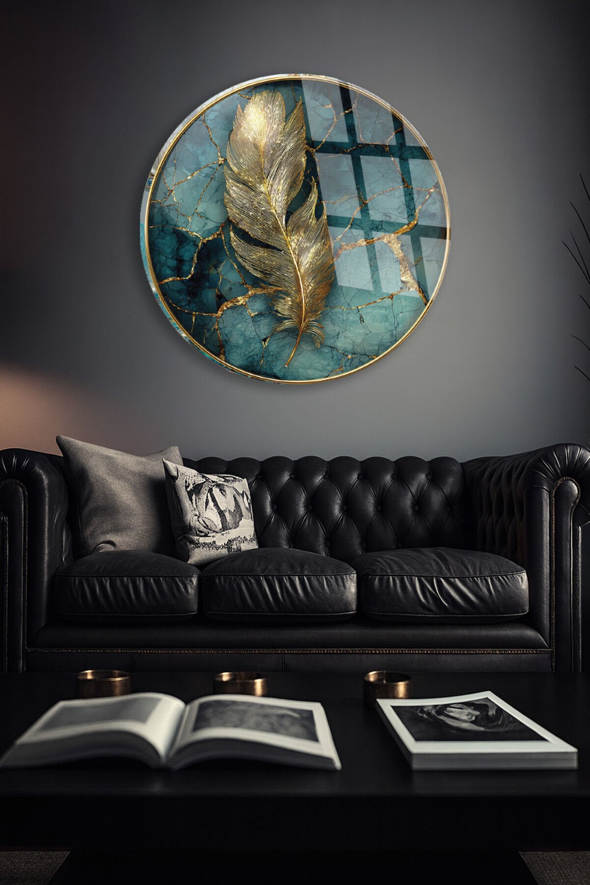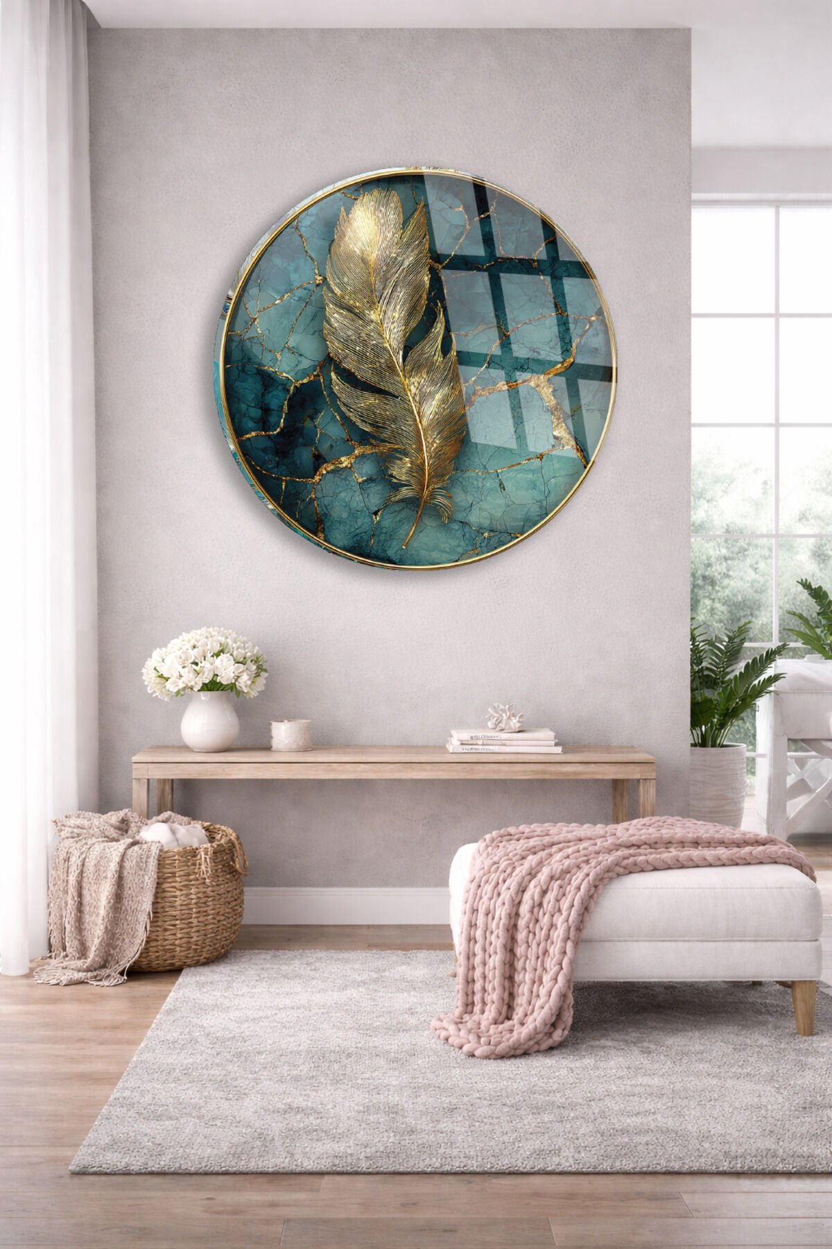 TURKUAZ MERMER ZEMİN ALTIN TÜY LÜKS DEKOR KIRILMAZ CAM TABLO Turkuaz