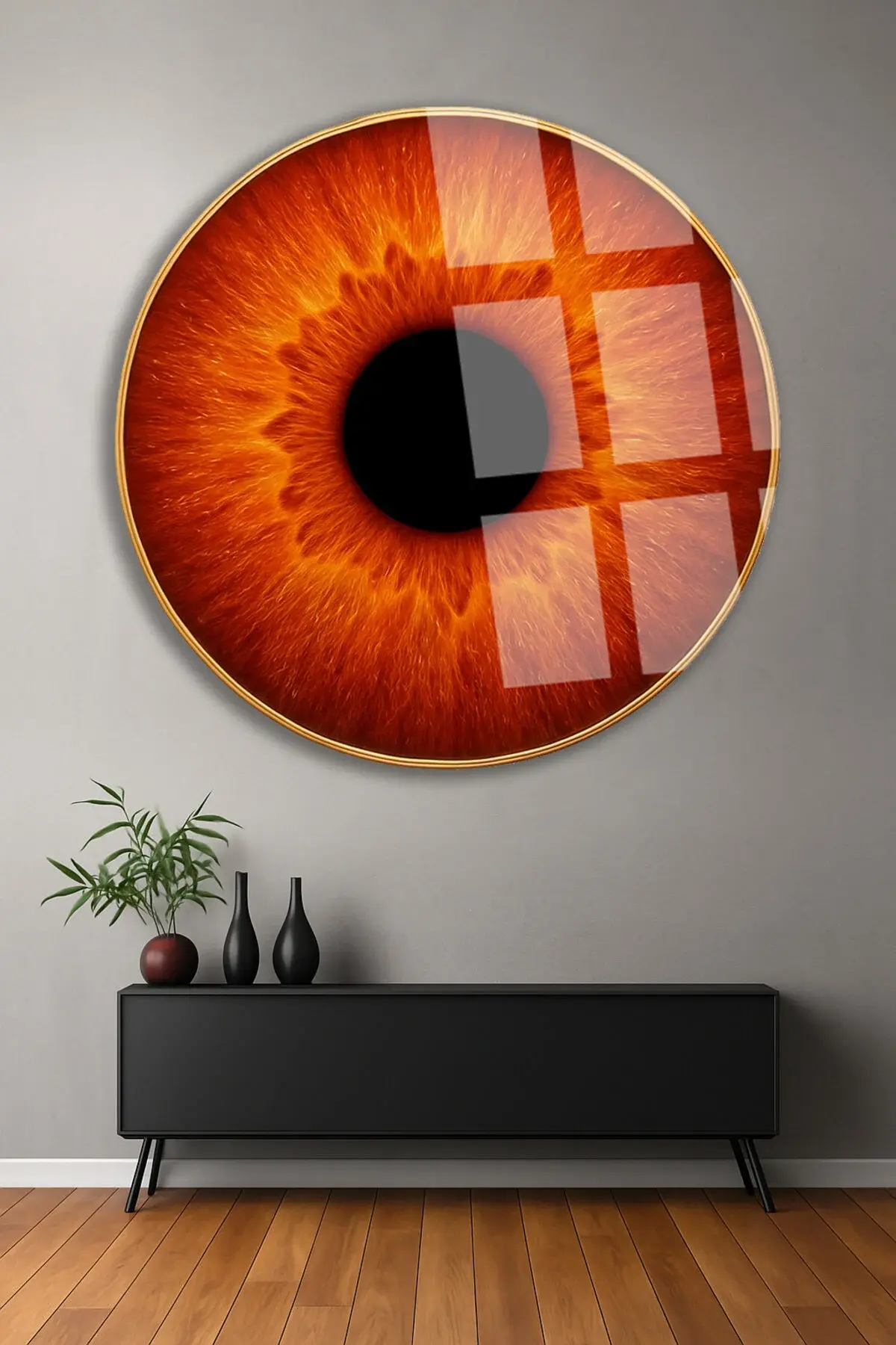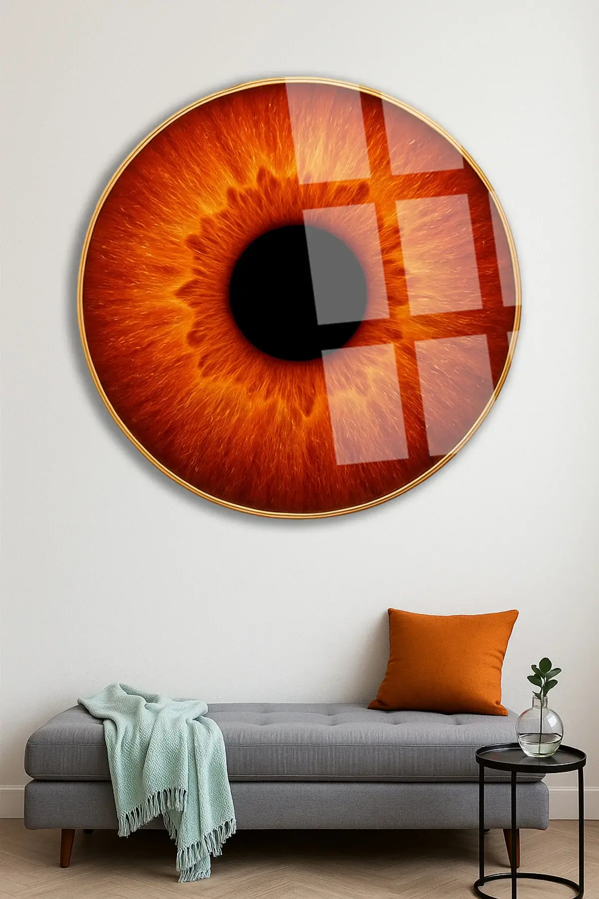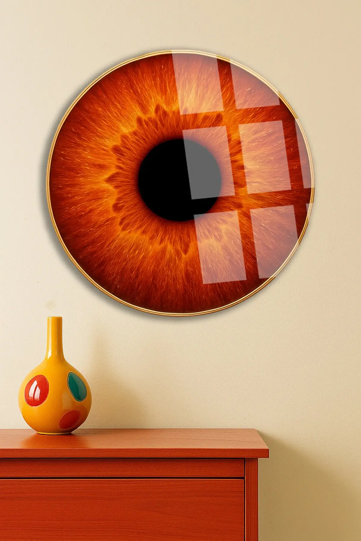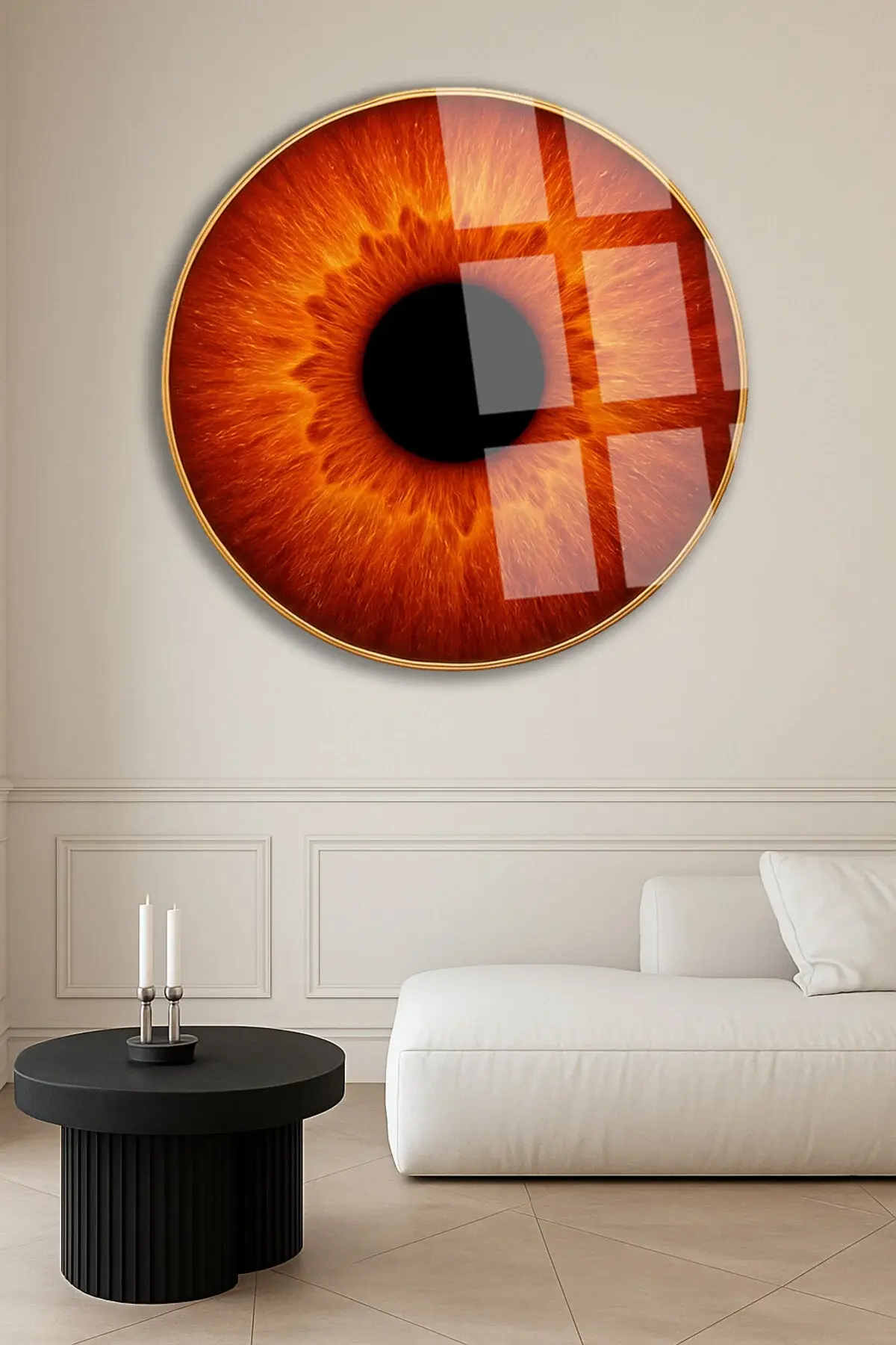 TURUNCU GÖZ MODERN TABLO KIRILMAZ LÜKS CAM TABLO YUVARLAK CAM TABLO EV HEDİYESİ