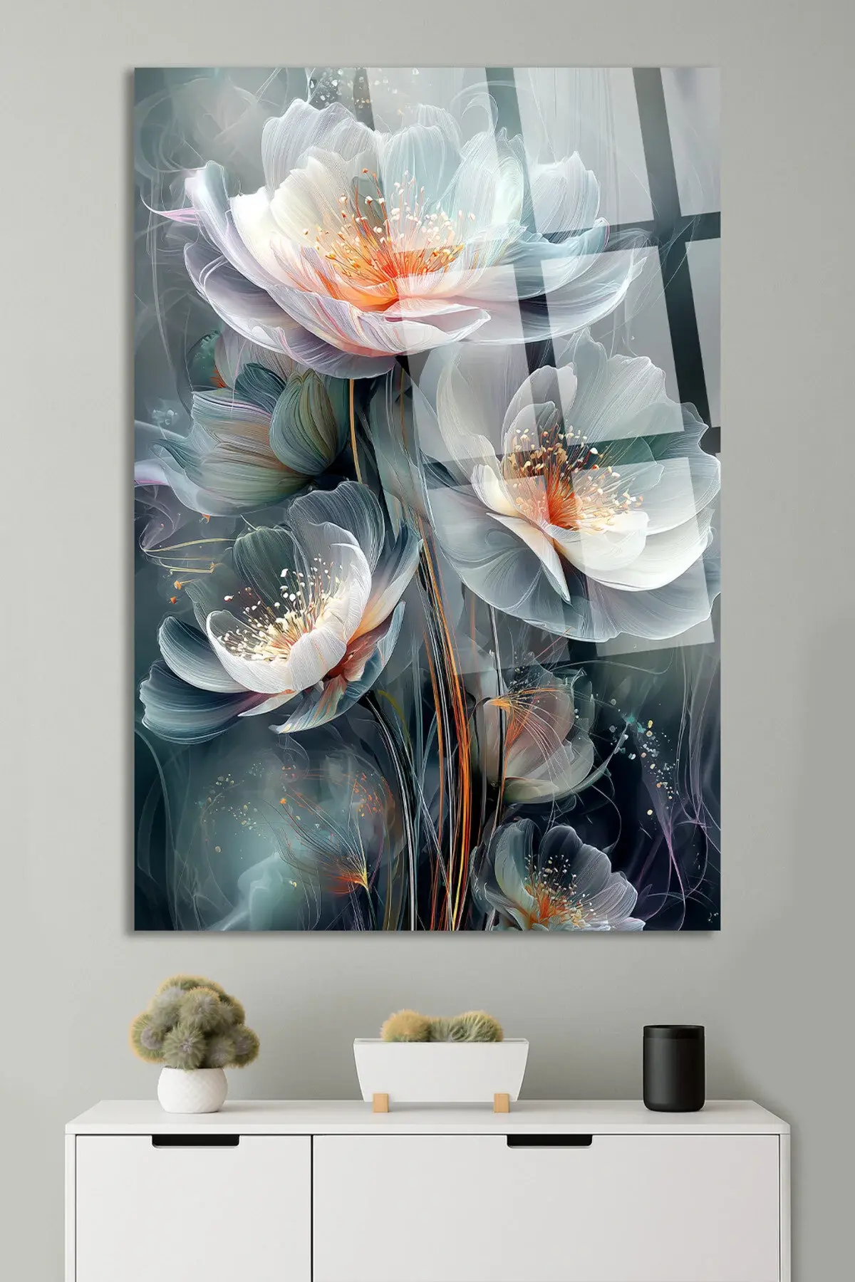 ULTRA CANLI RENKLER KRİSTAL ÇİÇEK DESENLİ EV HEDİYESİ TABLO KIRILMAZ LÜKS CAM TABLO MODERN HEDİYE Mavi