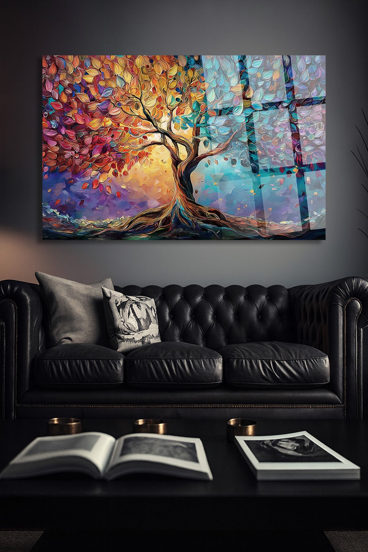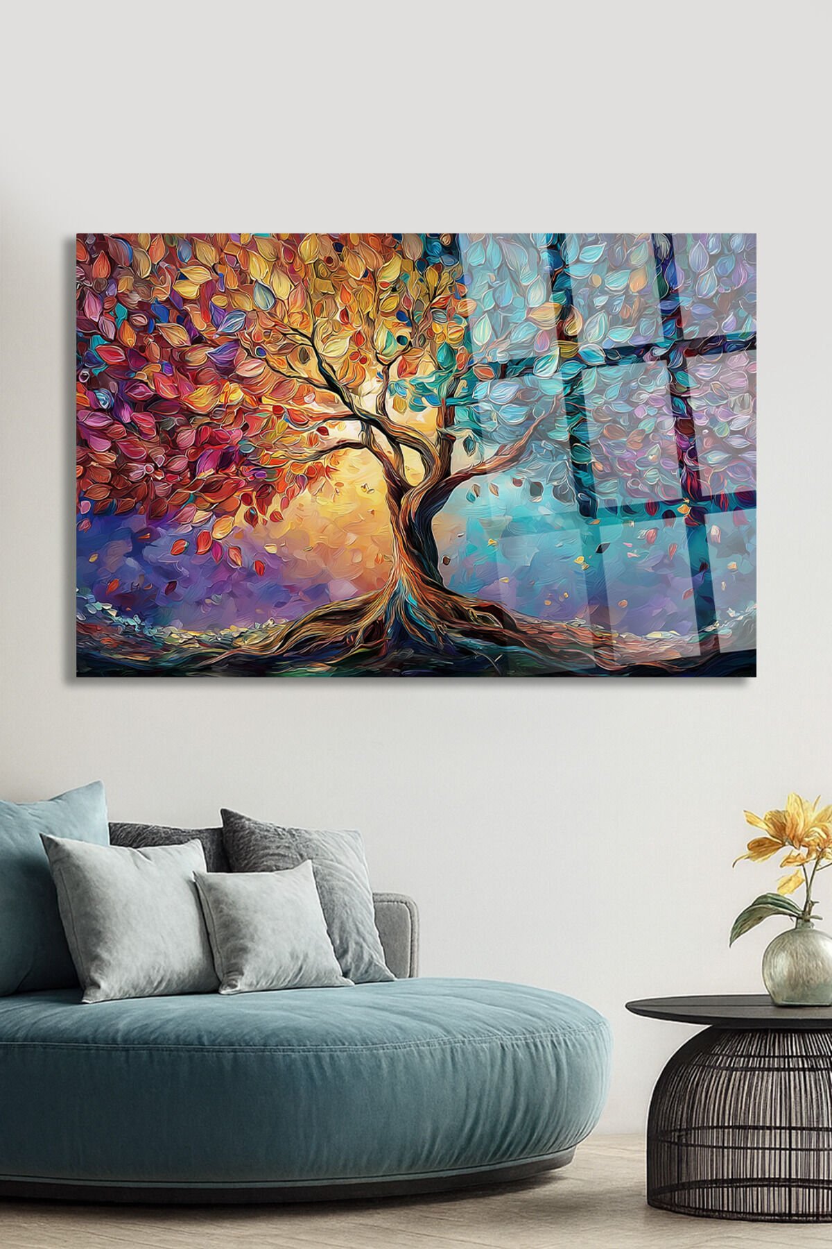 ULTRA CANLI RENKLER SOYUT YAŞAM AĞACI TASARIMLI EV HEDİYESİ TABLO MODERN KIRILMAZ LÜKS CAM TABLO Turkuaz
