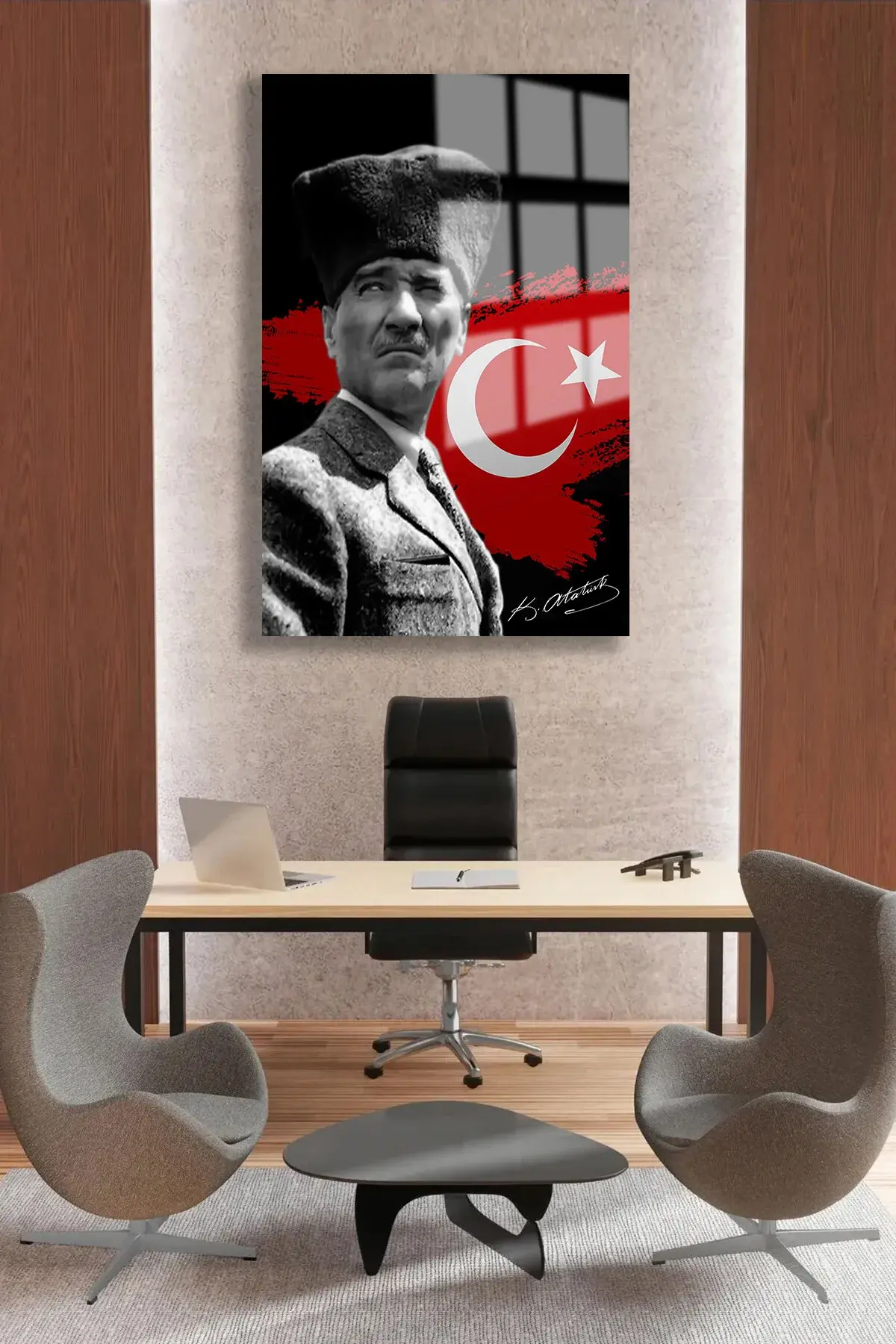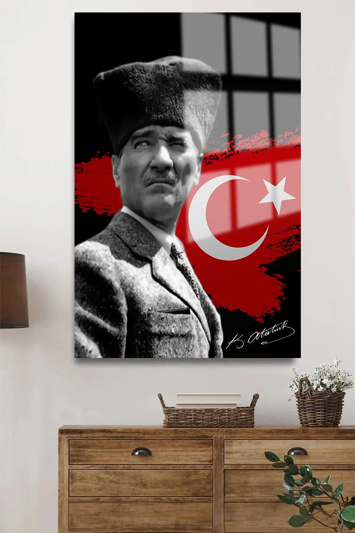 ULTRA YÜKSEK ÇÖZÜNÜRLÜKLÜ ATATÜRK TABLOSU 4MM KIRILMAZ CAM TABLO EV, SALON, HEDİYESİ