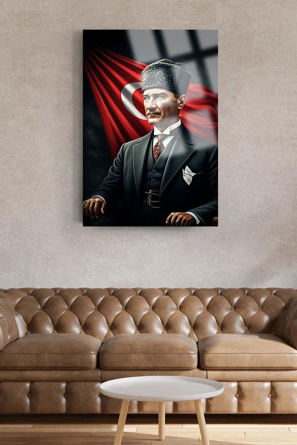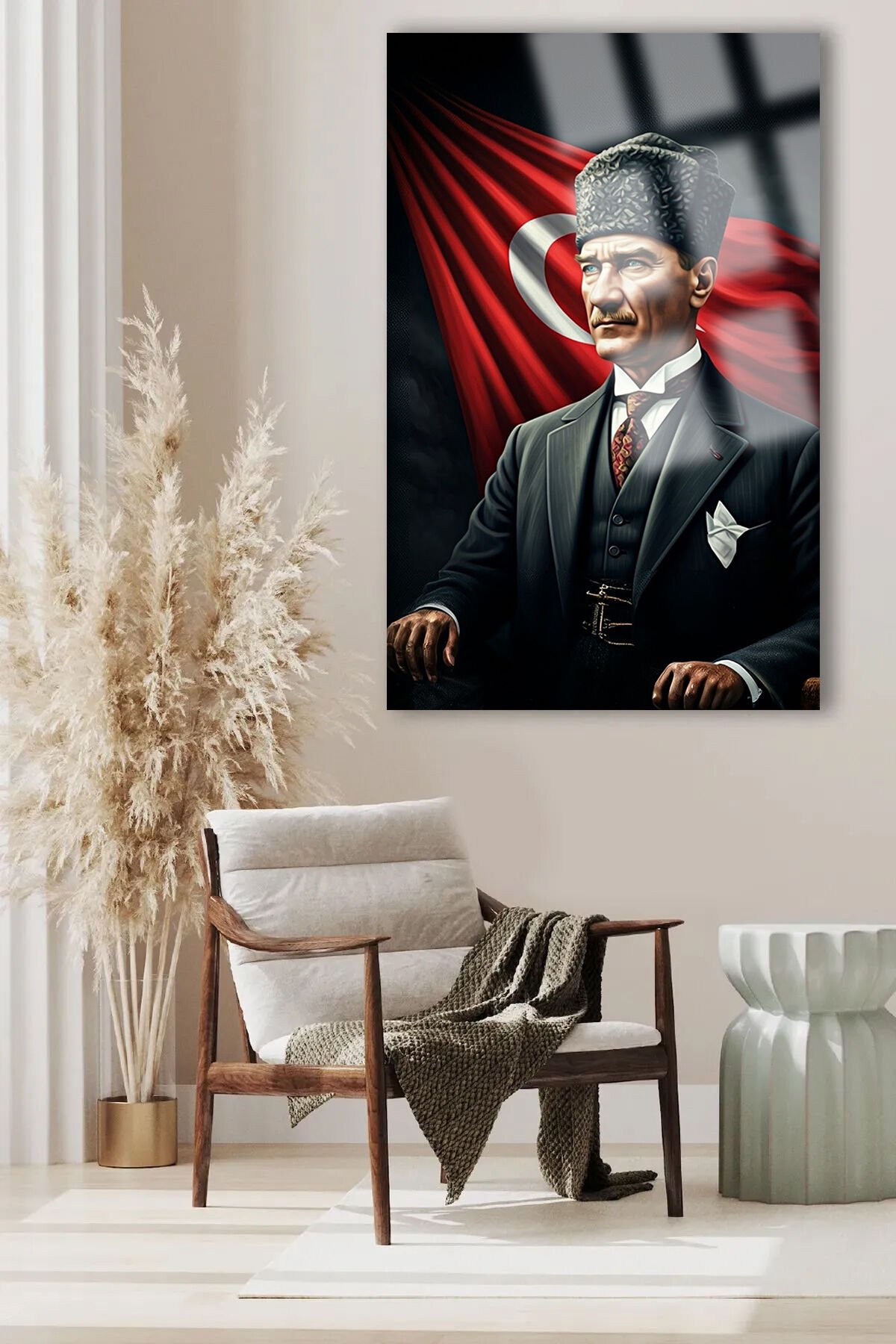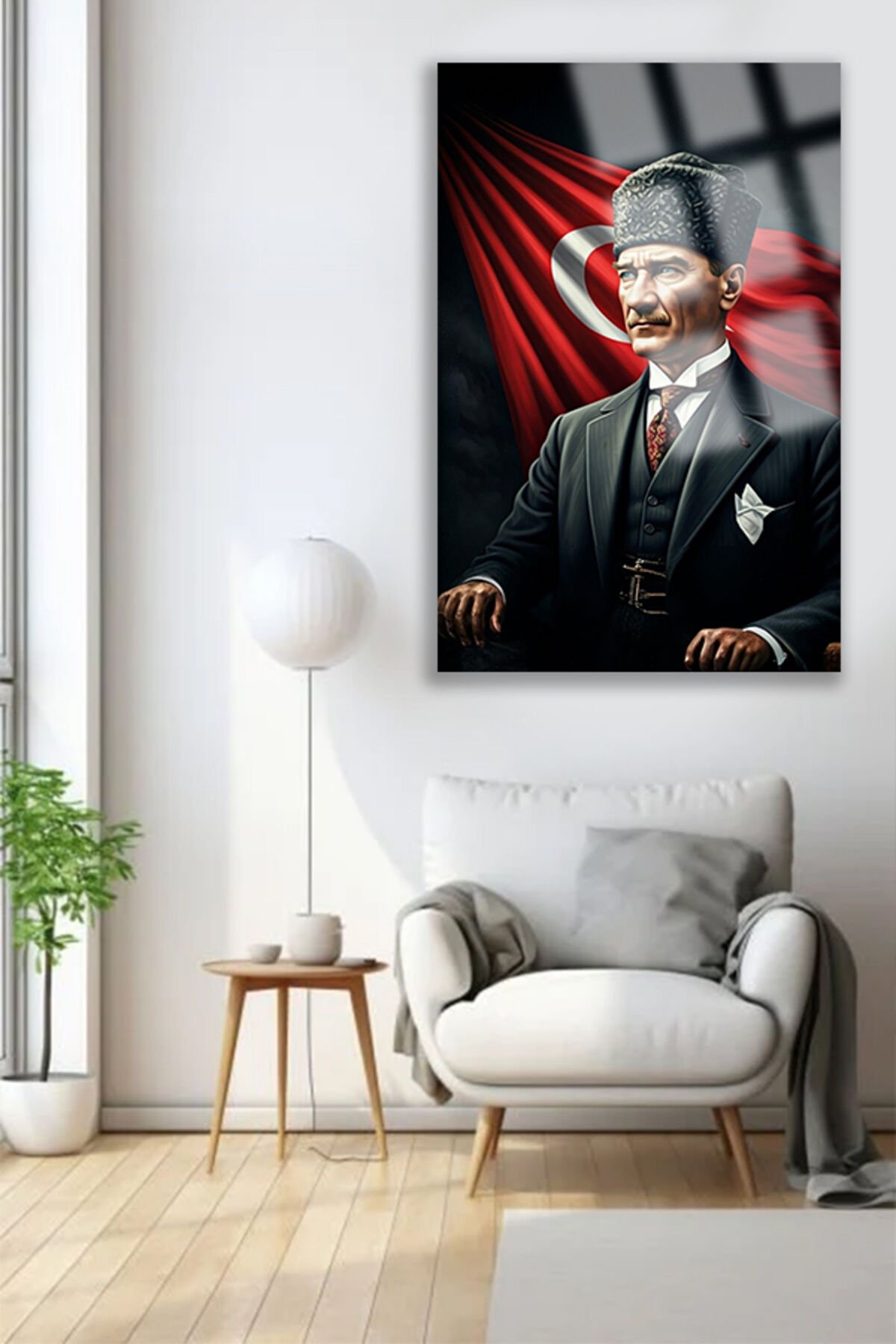ULTRA YÜKSEK ÇÖZÜNÜRLÜKLÜ CAM YAPAY ZEKA ATATÜRK TABLOSU KIRILMAZ CAM TABLO EV, SALON, HEDİYESİ Kırmızı