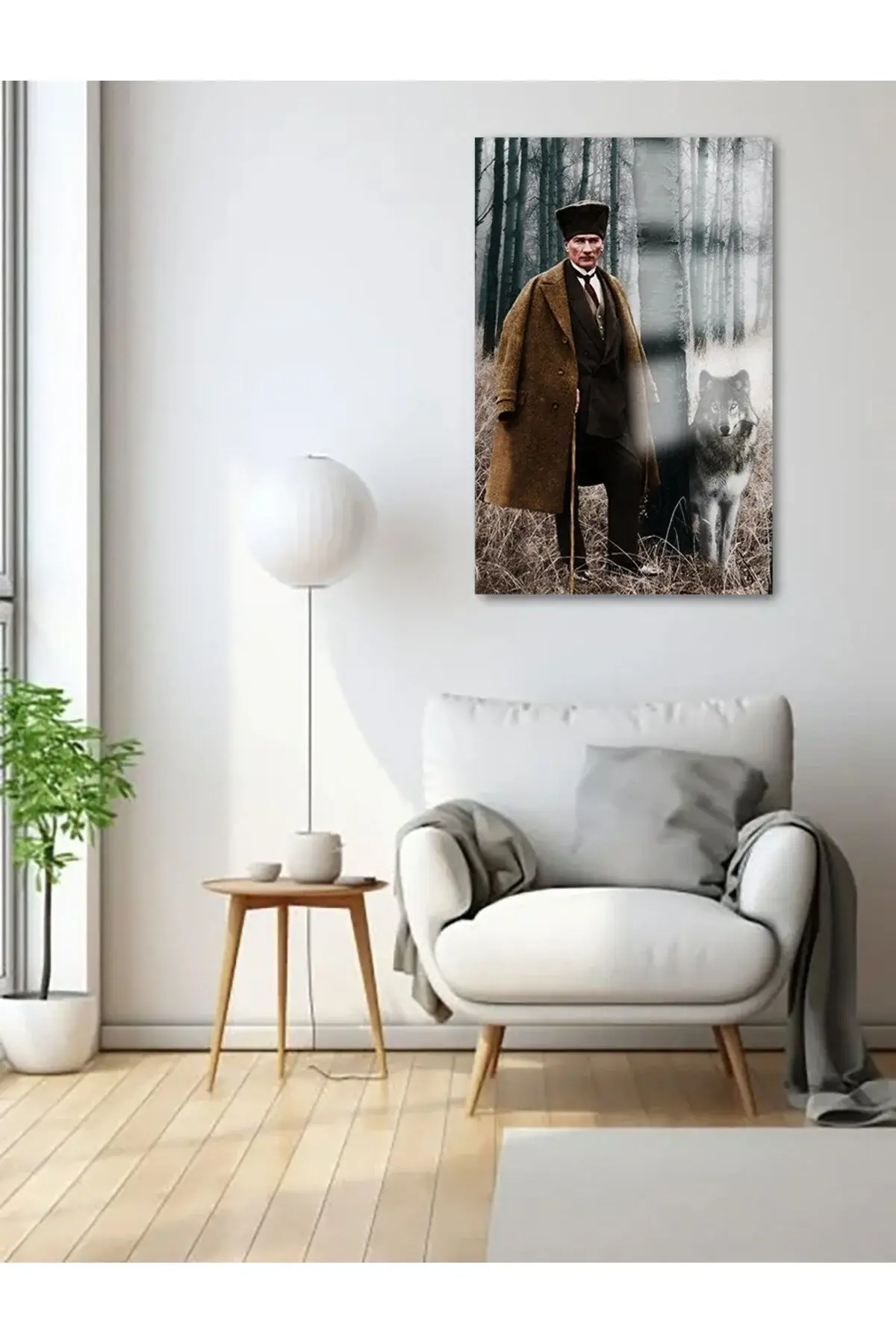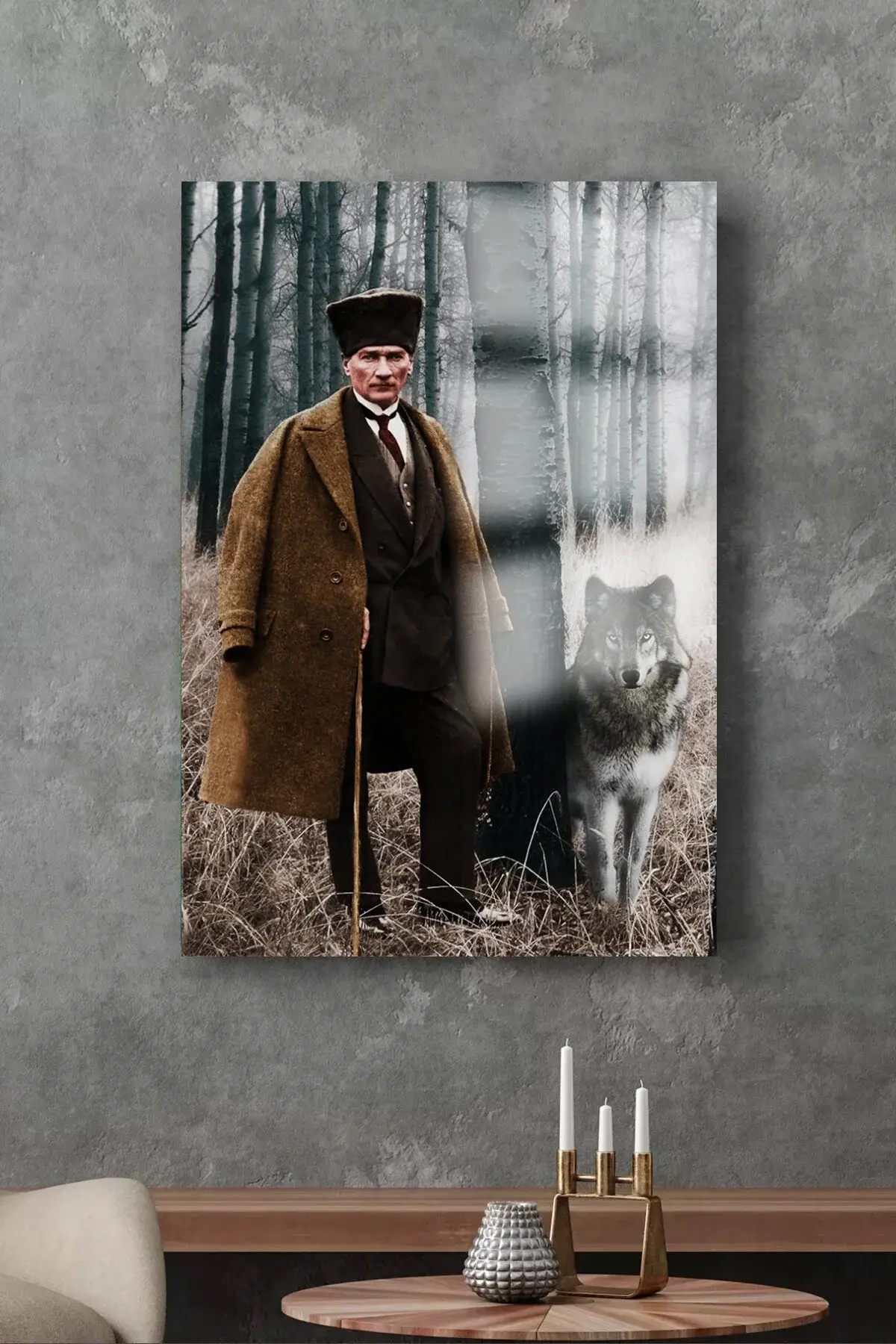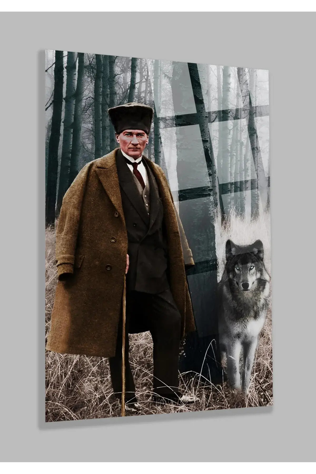ULTRA YÜKSEK ÇÖZÜNÜRLÜKLÜ KURT VE ATATÜRK TABLOSU 4MM KIRILMAZ CAM TABLO EV, SALON, HEDİYESİ