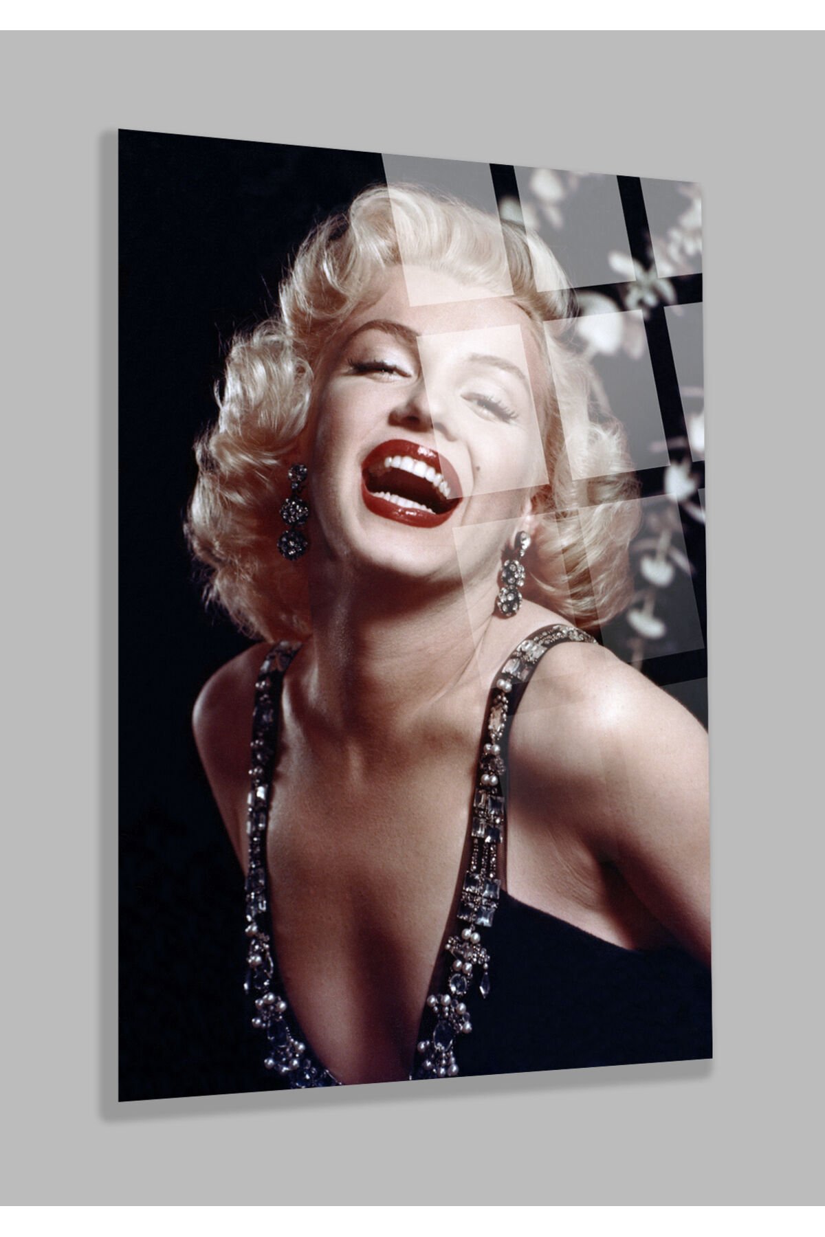 ULTRA YÜKSEK ÇÖZÜNÜRLÜKLÜ SİYAH MARİLYN MONROE 4MM KIRILMAZ CAM TABLO EV, SALON, HEDİYESİ Siyah