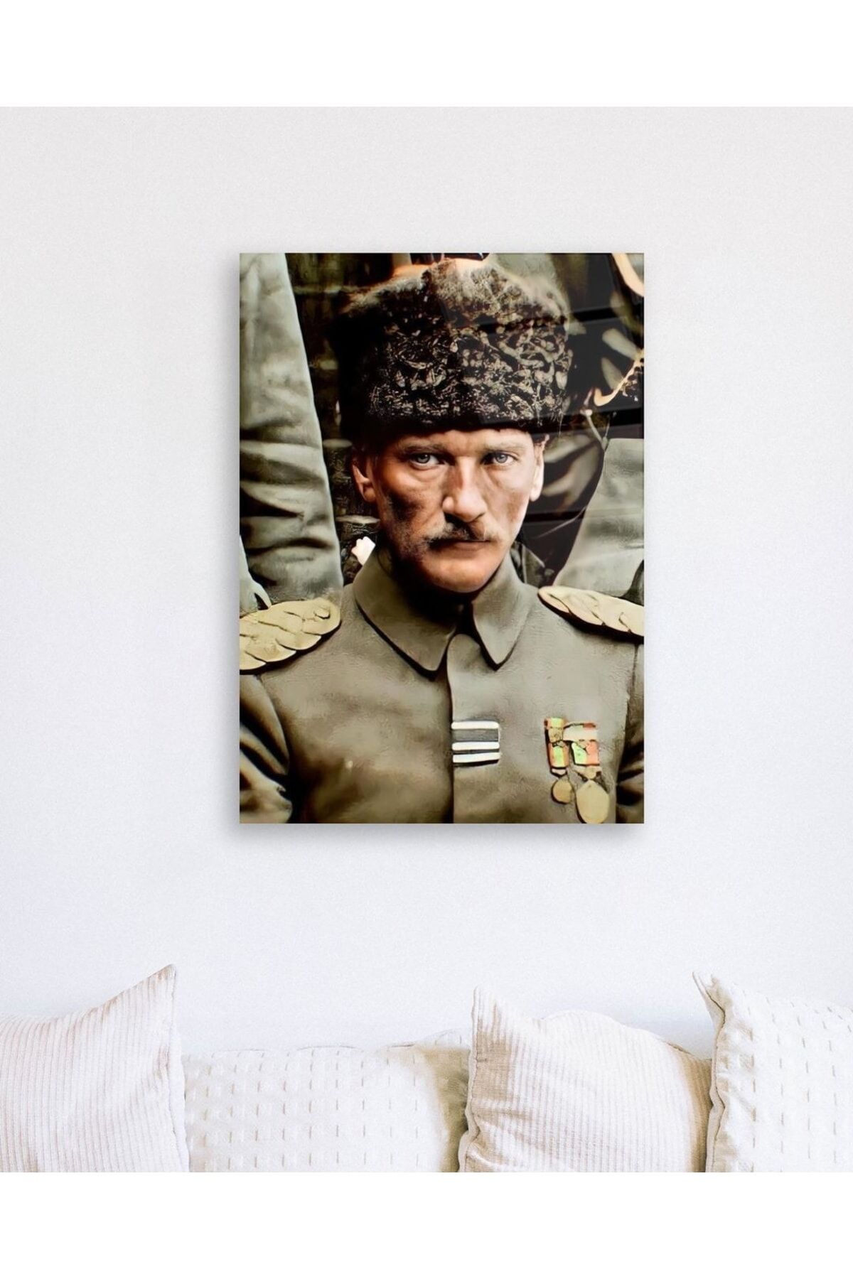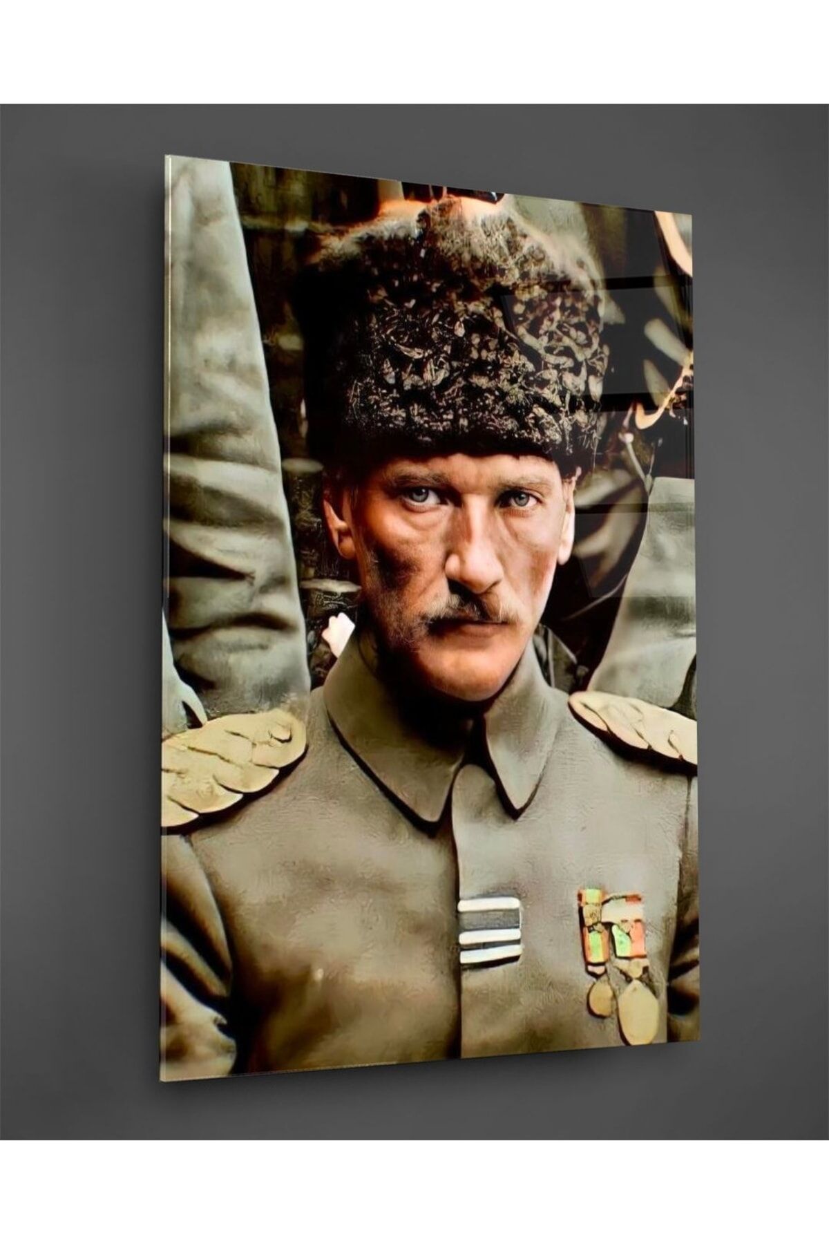 Üniformalı Atatürk Portesi Cam Tablo Renkli