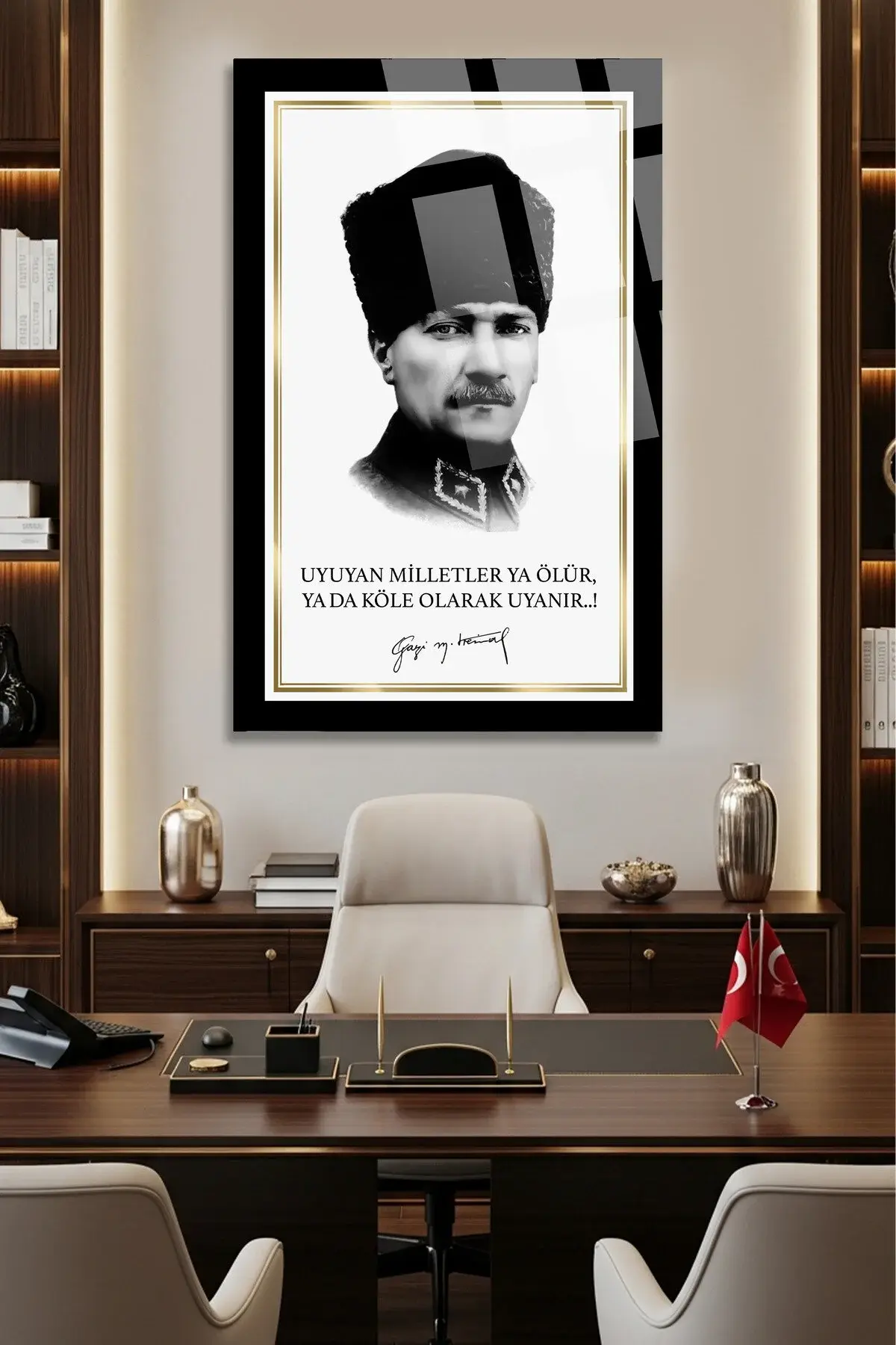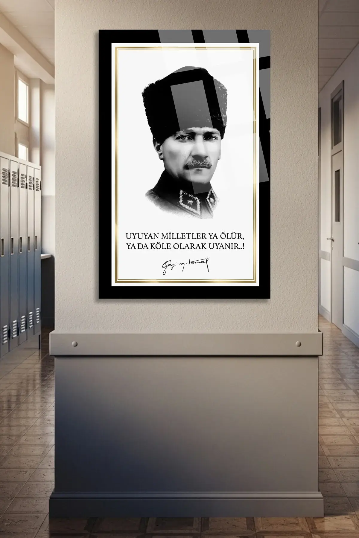UYUYAN MİLLETLER YA ÖLÜR, YA DA KÖLE OLARAK UYANIR - ATATÜRK CAM TABLO OFİS HEDİYESİ Beyaz