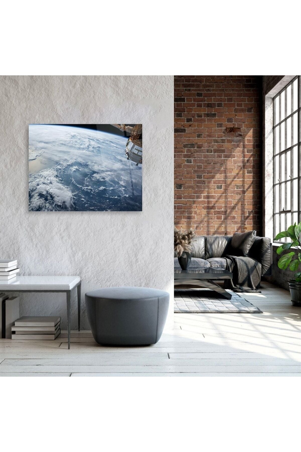 Uzay Dünya Görünümü Cam Tablo Renkli