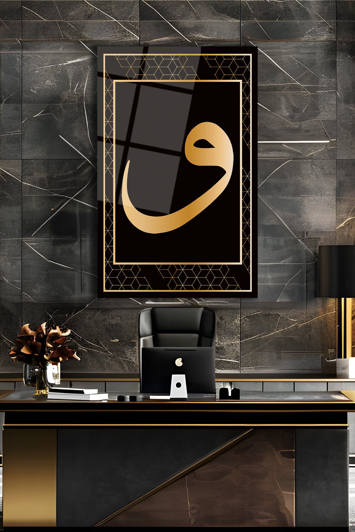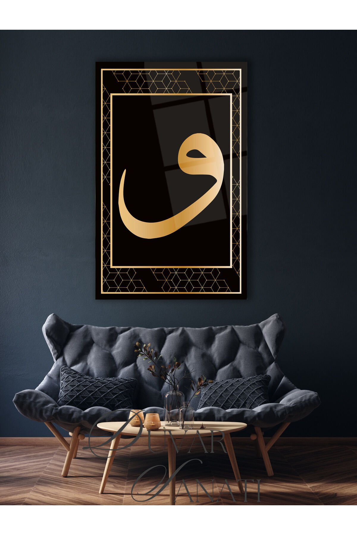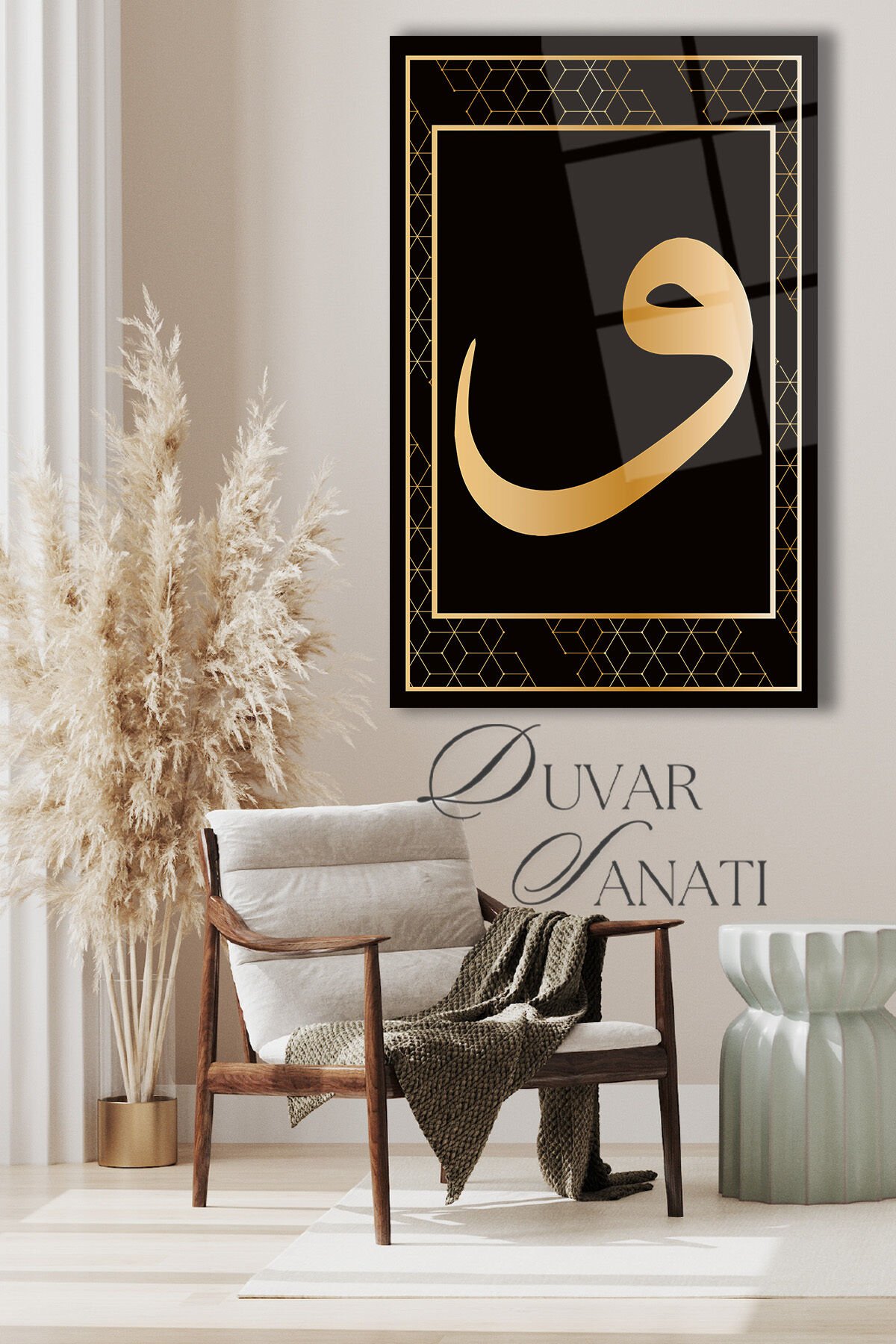 Vav Dini İsami Dikey Cam Tablo, Modern İş Ev Ofis Salon Dekoru , Hediyelik Duvar Dekoru Siyah Gold
