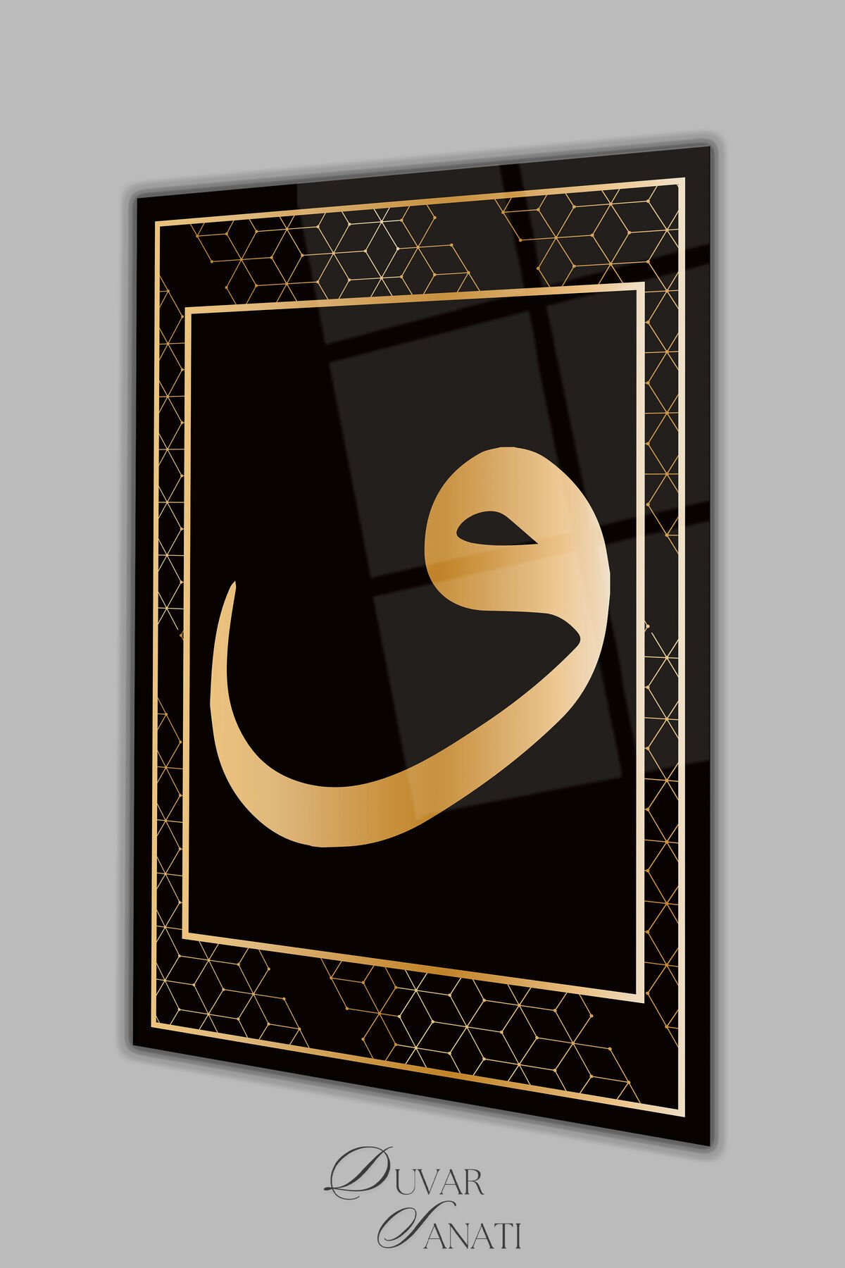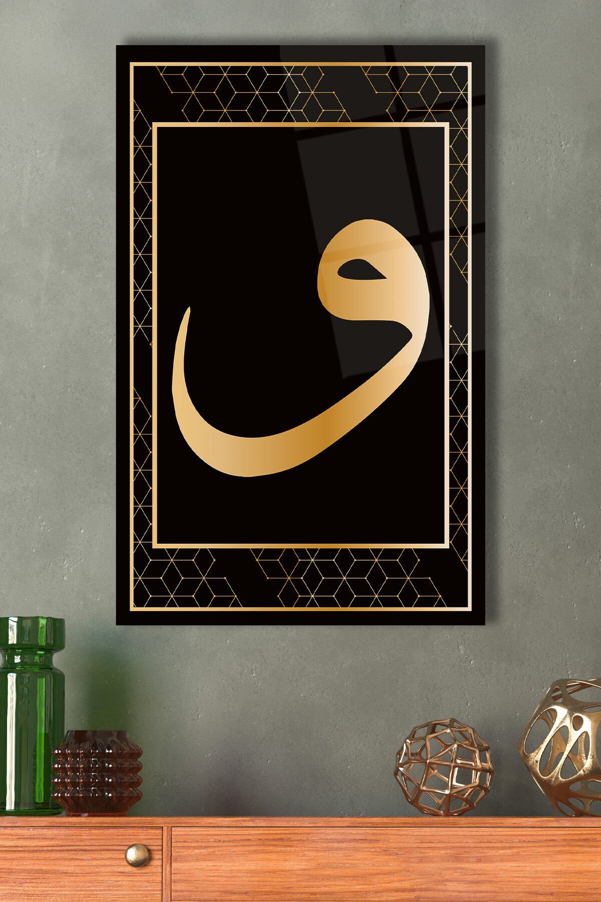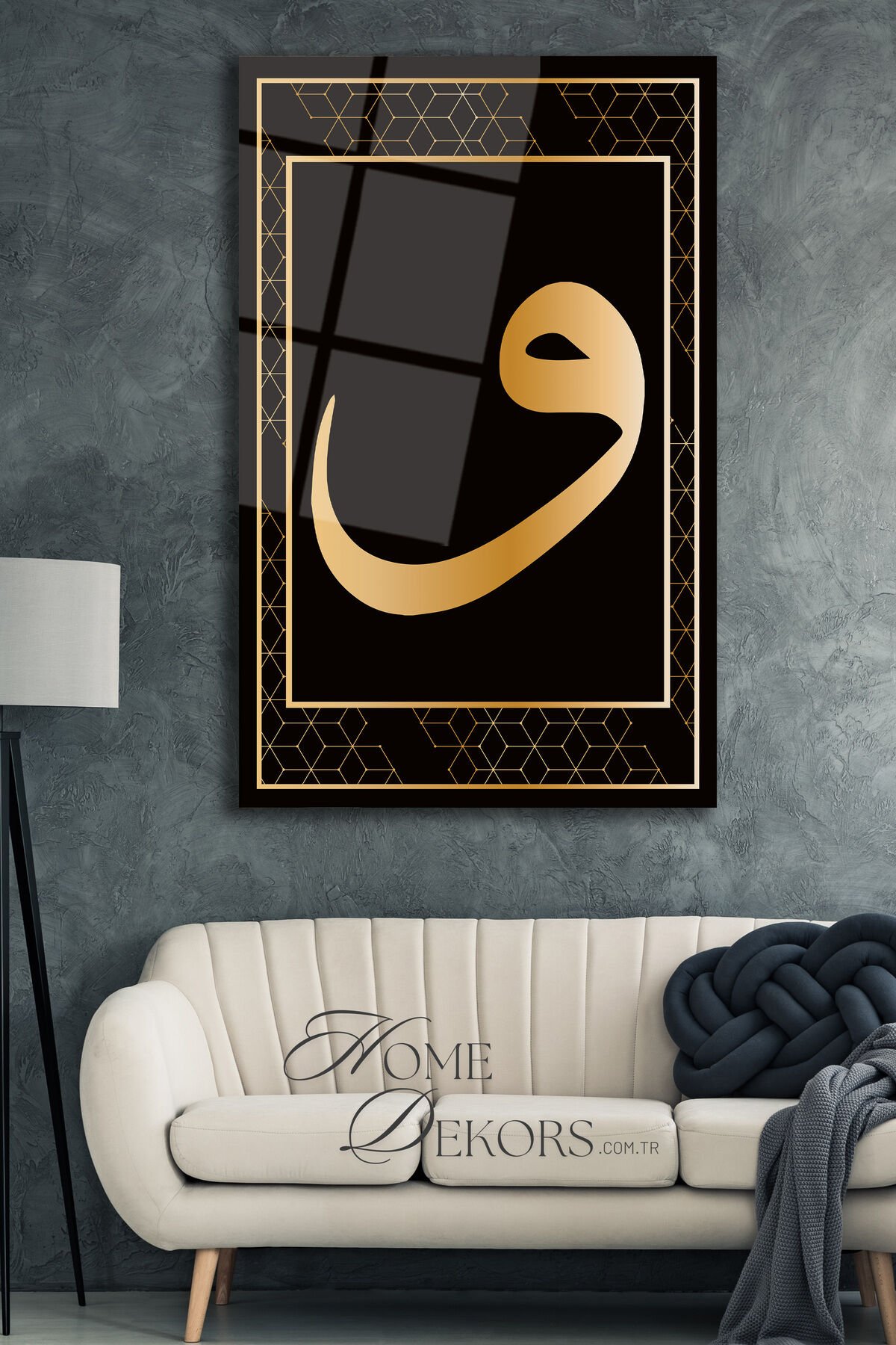 Vav Dini İsami Dikey Cam Tablo, Modern İş Ev Ofis Salon Dekoru , Hediyelik Duvar Dekoru Siyah Gold