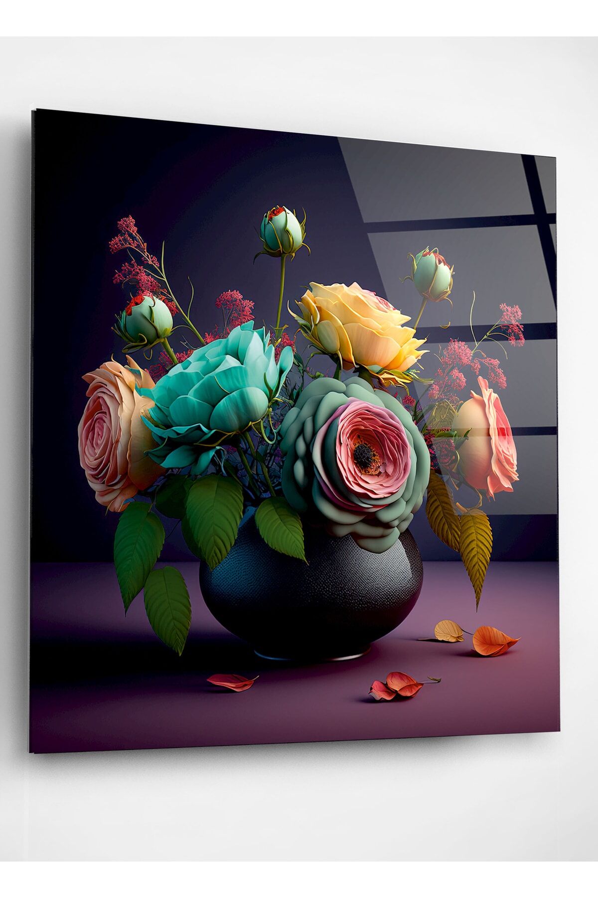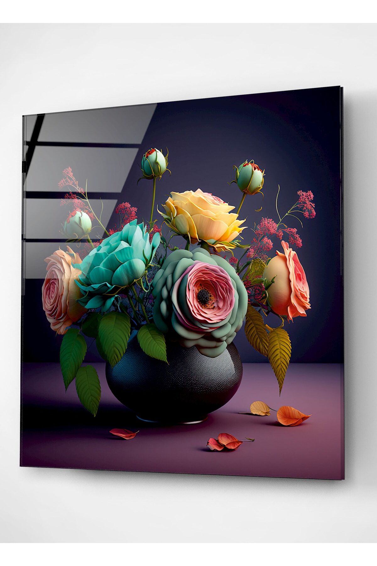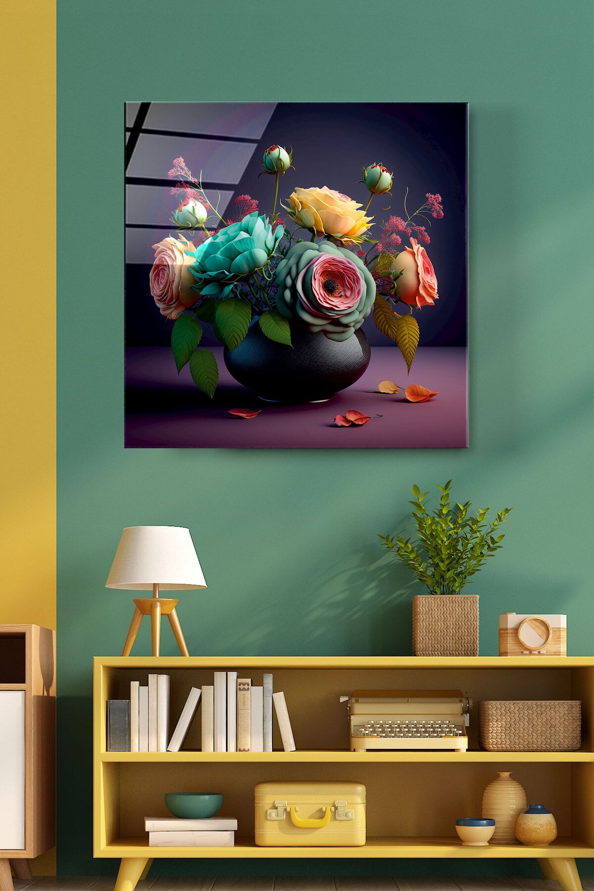 Vazo Çiçekleri Cam Tablo, Dekoratif Cam Tablo