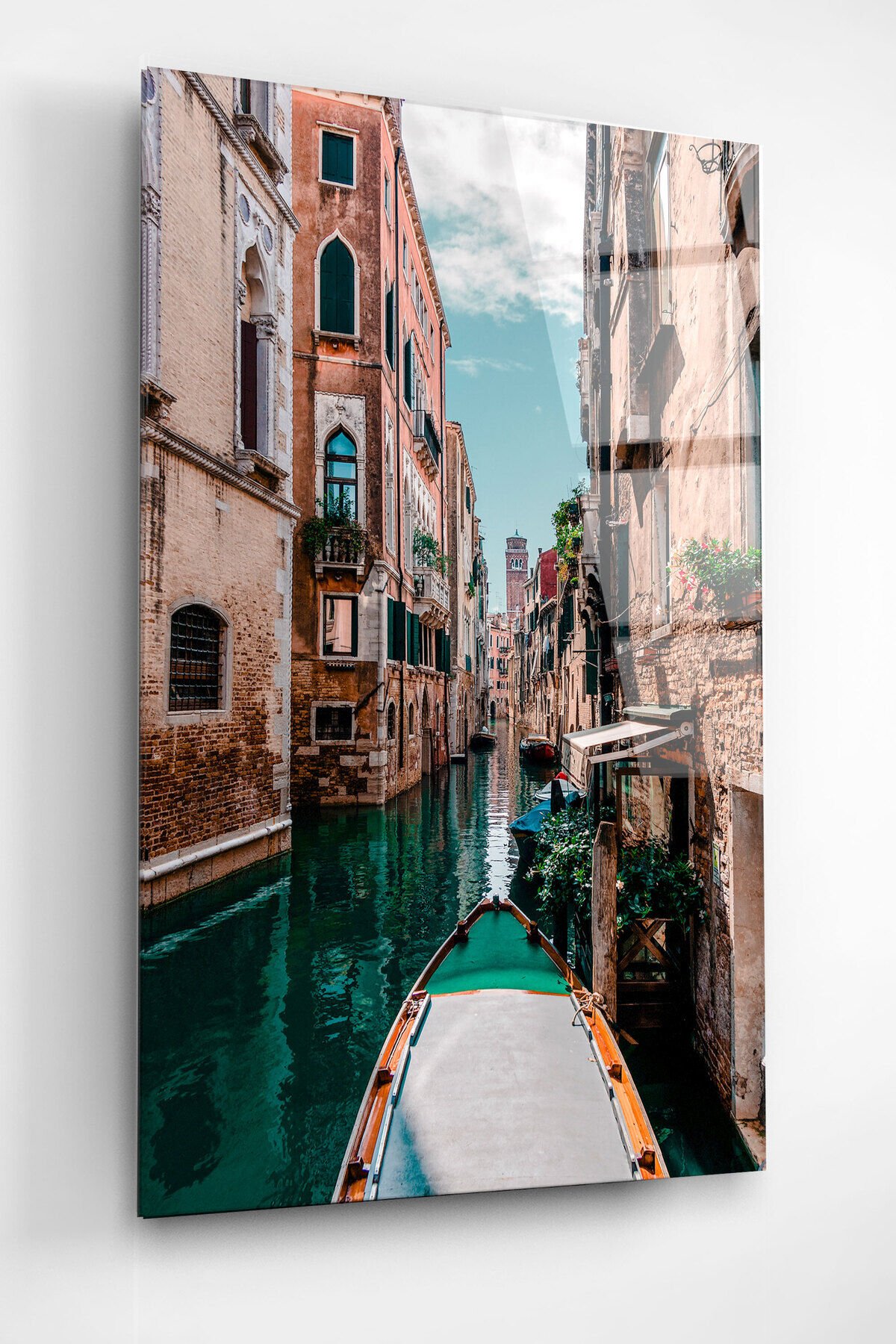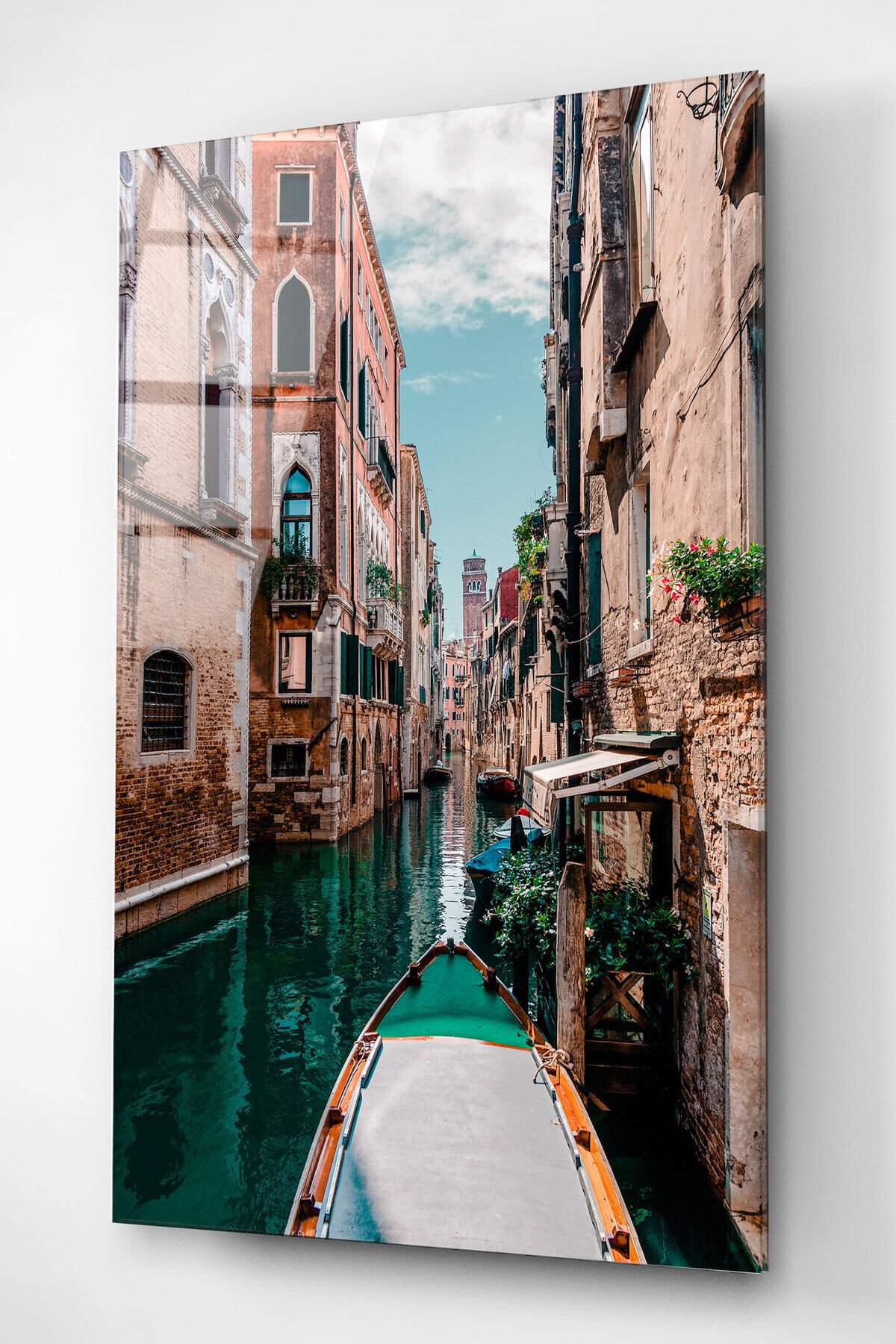 Venedik'te Gondol Cam Tablo, Dekoratif Cam Tablo