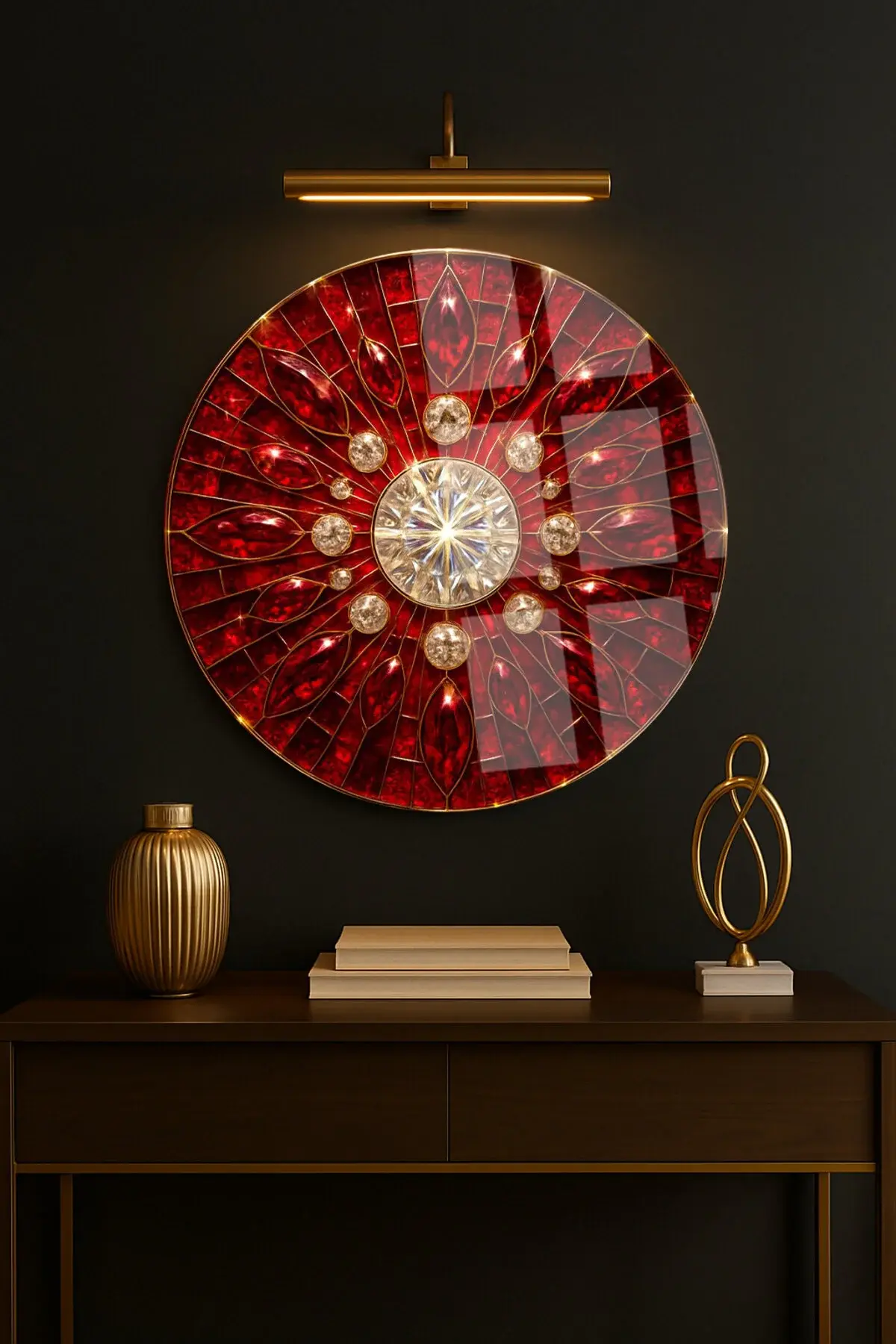 VİTRAY TEMALI DEĞERLİ TAŞLAR TASARIMI KIRILMAZ LÜKS CAM TABO EV HEDİYESİ ULTRA CANLI RENKLER fhgtftsefshtfd3