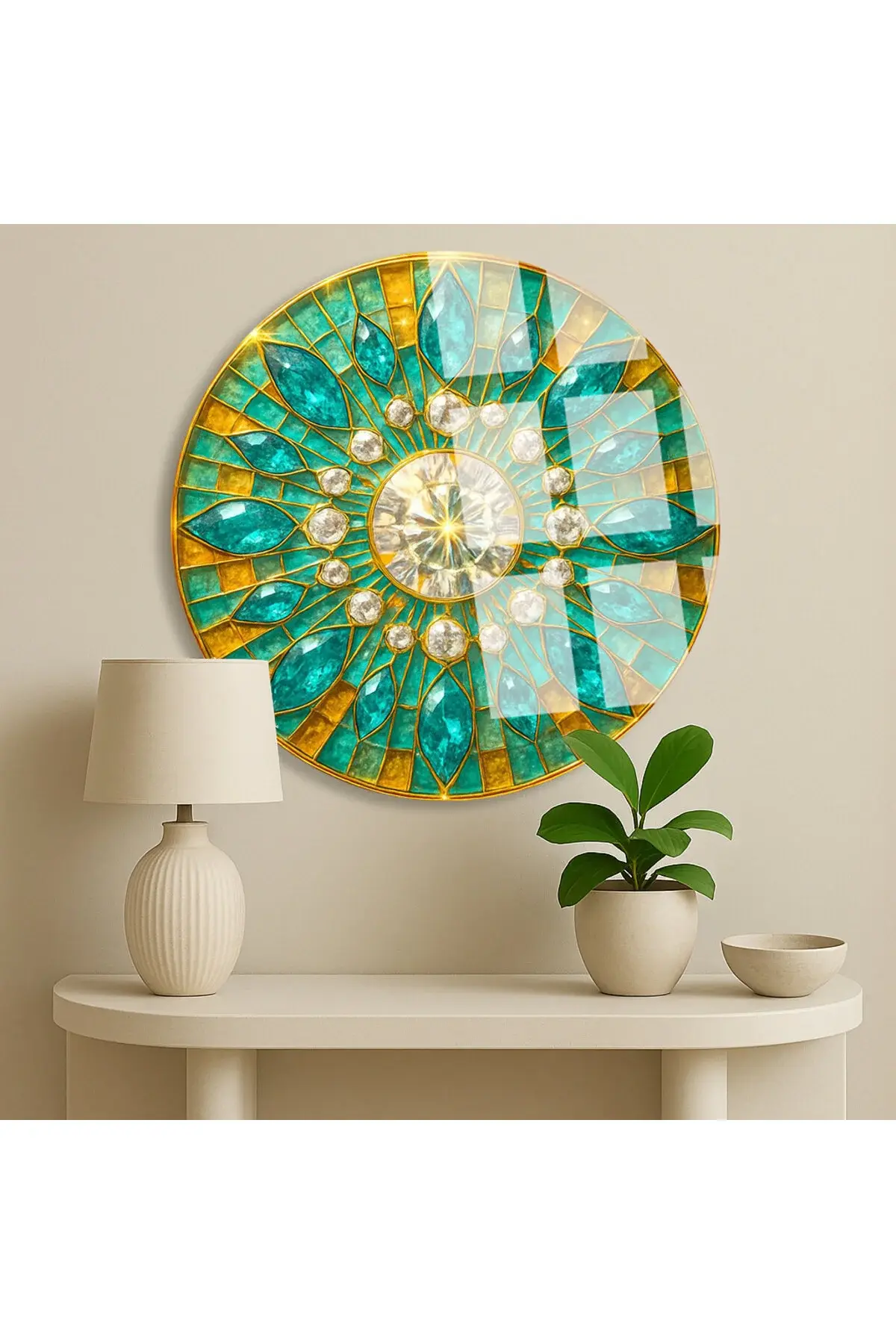 VİTRAY TEMALI DEĞERLİ TAŞLAR TASARIMI KIRILMAZ LÜKS CAM TABO EV HEDİYESİ ULTRA CANLI RENKLER