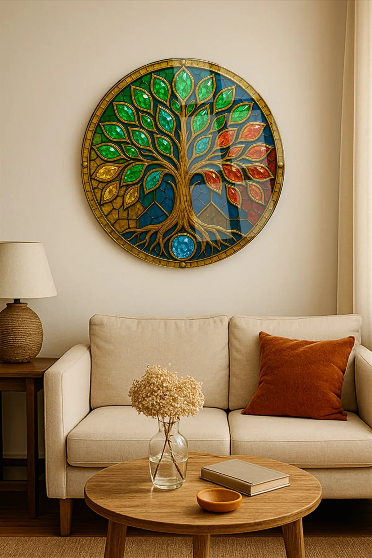VİTRAY TEMALI HAYAT AĞACI KIRILMAZ LÜKS CAM TABO EV İŞ YERİ OFİS HEDİYESİ ULTRA CANLI RENKLİ Lacivert