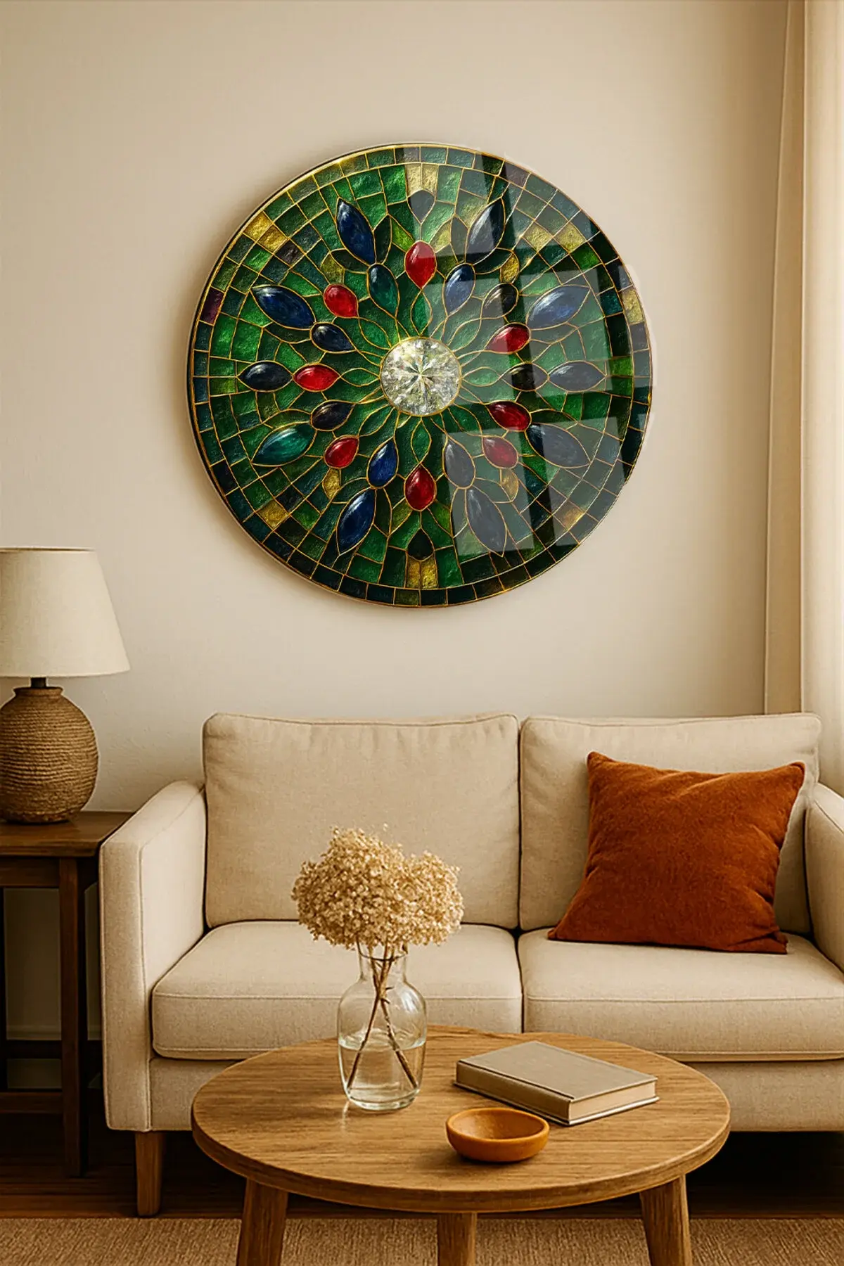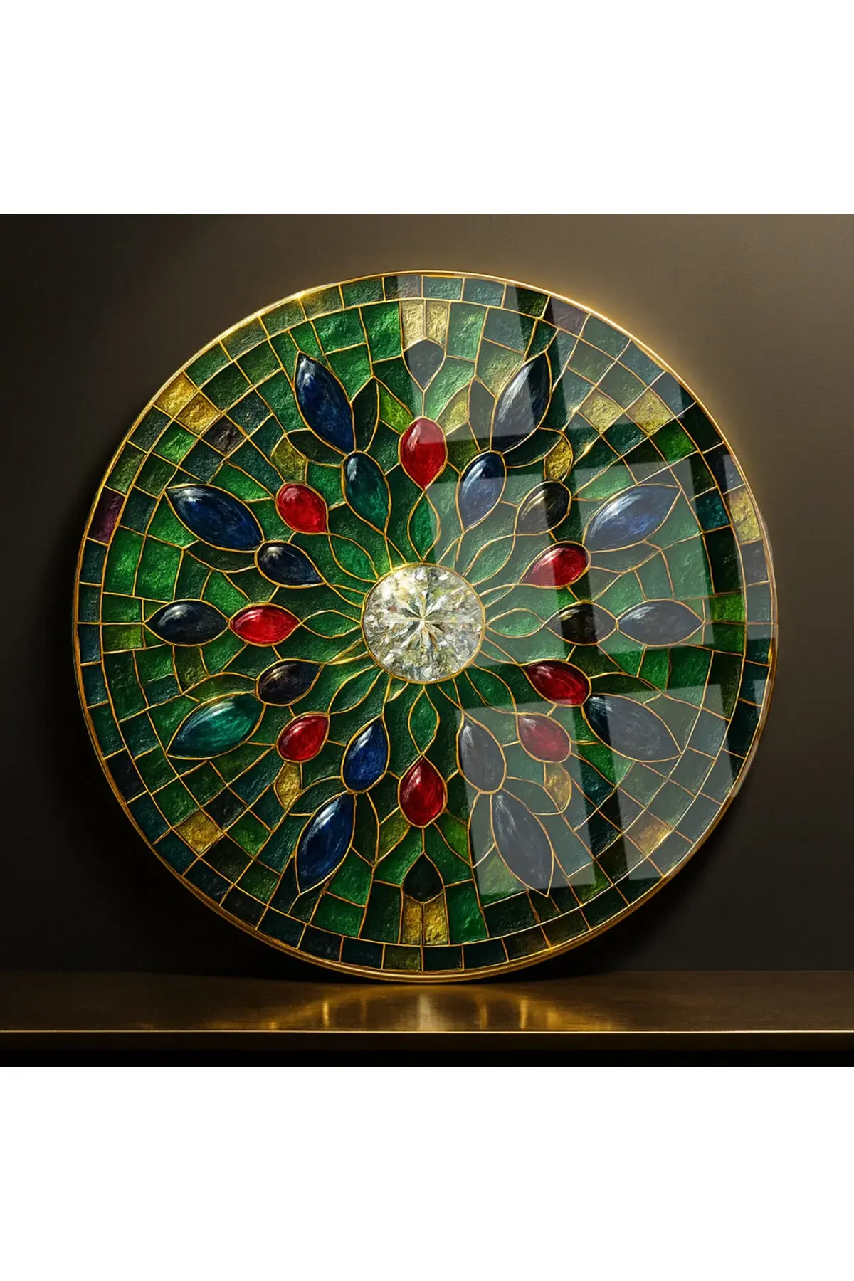 VİTRAY TEMALI ZÜMRÜT TAŞLI KIRILMAZ LÜKS CAM TABO EV İŞ YERİ OFİS HEDİYESİ ULTRA CANLI RENKLİ Yeşil