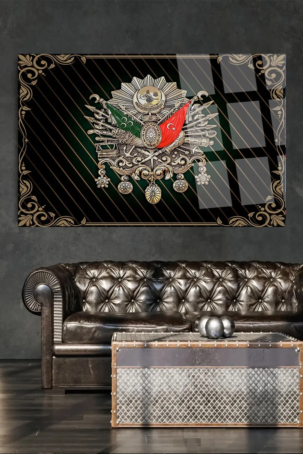 YATAY TABLO Osmanlı Tuğrası 4mm Kırılmaz Yüksek Çözünürlüklü Cam Tablo Ev, İşyeri, Ofis Hediyesi Metalik