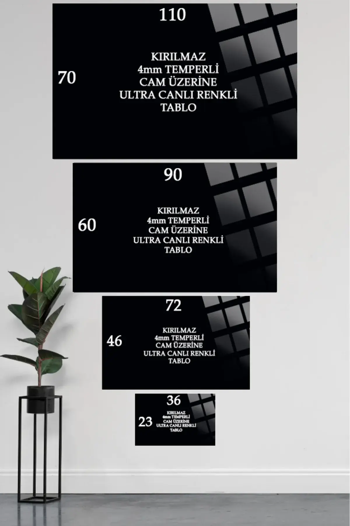 Cam tablolarımız 4 mm kalınlığında temper işlemi (ısıl işlem) görmüştür.; Kenarları rodajlanmış (kesiciliği giderilmiş) yüksek kaliteli düz camlardan oluşmaktadır.; Normal camlara göre kırılmaya 10 kat daha dayanıklıdır.; Gönderilirken özel koruma aparat ve ambalajları ile gönderilmektedir.; ; Tarafımızca hazırlanan özel tasarımlar doğrudan cam yüzeyine uv baskı tekniğiyle yüksek çözünürlüklü makinalarımız tarafından uygulanır.; Bu nedenle yüksek kaliteli,mükemmel bir görüntü derinliği sağlar.; Herhangi bir medyaya(folyo,kağıt v.; b.; ) baskı yapılmış görselin cam yüzeyine yapıştırılması şeklinde değildir.; Görsellerimiz camın arka yüzeyine doğrudan uv cam boyası kullanılarak basılır ve özel koruma boyası ile arka yüzey kapatılır.; Baskı cam ile arka koruma boyası arasında kalır.; Tasarımları ön yüzeyden camın parlaklığı ve şıklığı ile görürsünüz.; Cam tablolar zamanla solmazlar ve renkler canlılığını hiç kaybetmez.; ; Özel tasarım cam tablolar duvar dekorasyonunda yeni bir sayfa açmaktadır.; Özellikle ev ve ofis dekorasyonunda büyük tablolar duvarlarda çok şık bir görünüm sağlarlar.; Dekoratif ve zarif tablolar ev ve ofis duvarlarınıza estetik bir hava katar.; ; Tablolarımız sizler için özel olarak tasarlanmıştır.; ; Temizliği son derece kolay olan cam tablolarımızı,herhangi bir kimyasal ürünle veya nemli bez ile gönül rahatlığıyla silebilirsiniz.; Özel askı aparatı sayesinde ürünlerimizin duvardan kazara düşme olasılığı çok düşüktür.; Tek çivi ile kolayca duvara monte edebilirsiniz.; Ürün asıldığında duvardan 2 cm önde durmaktadır.; ; Kargo esnasında yaşanacak her türlü olumsuzluk(kırılma v.; b.; ) firmamıza aittir.; Kırılma olasılığı %1 in altındadır.; Özel çerçeveli kargo metodumuz Türkiyede yalnızca tarafımıza aittir bu sayede kırılma yaşanmamaktadır.; En ufak bir sorunda ise sizlere sağlam şekilde ulaşıncaya kadar tekrar gönderilir.; ; Üretici firma olarak özel tasarımlarıyla camı birleştirerek yaşam alanlarınıza şık bir görünüm ve modern bir hava katmayı amaç edinilmiştir.