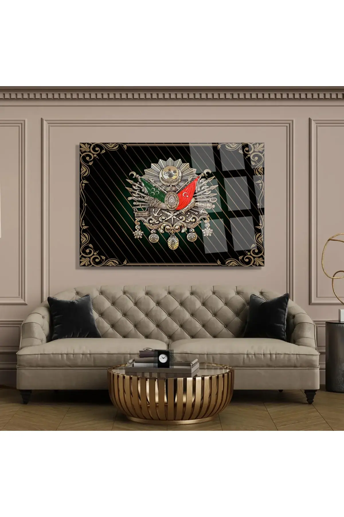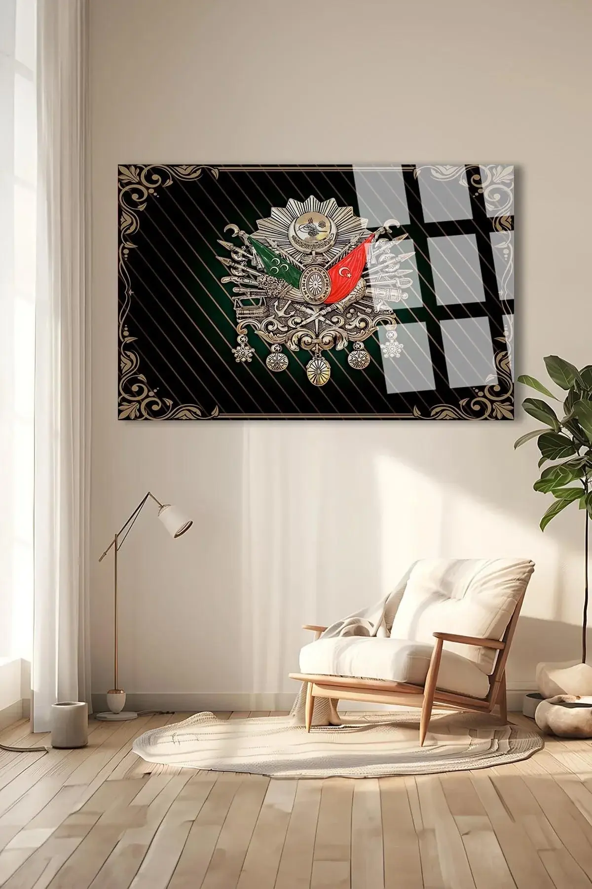 YATAY TABLO Osmanlı Tuğrası 4mm Kırılmaz Yüksek Çözünürlüklü Cam Tablo Ev, İşyeri, Ofis Hediyesi