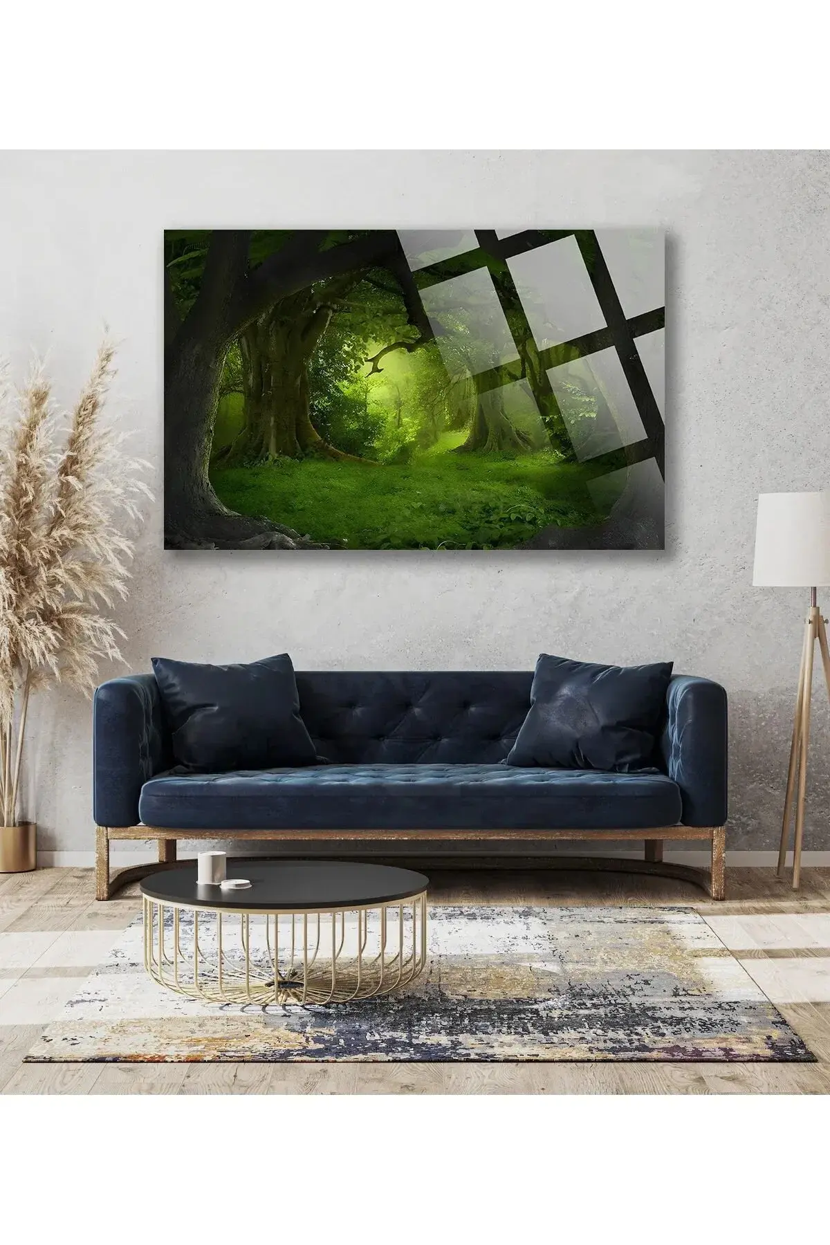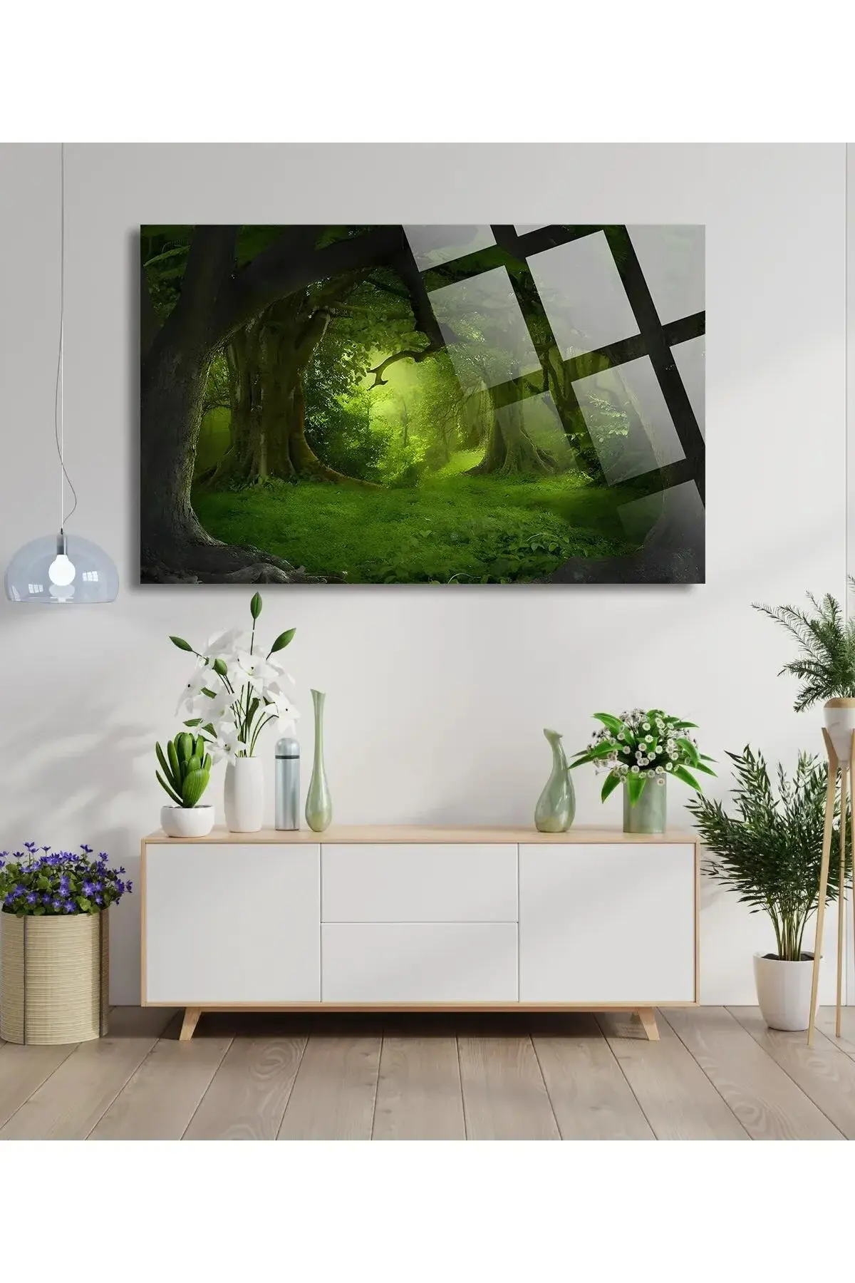 Yeşil Büyülü Orman Manzarası 4mm Lüks Kırılmaz Temperli Yüksek Çözünürlüklü Cam Tablo