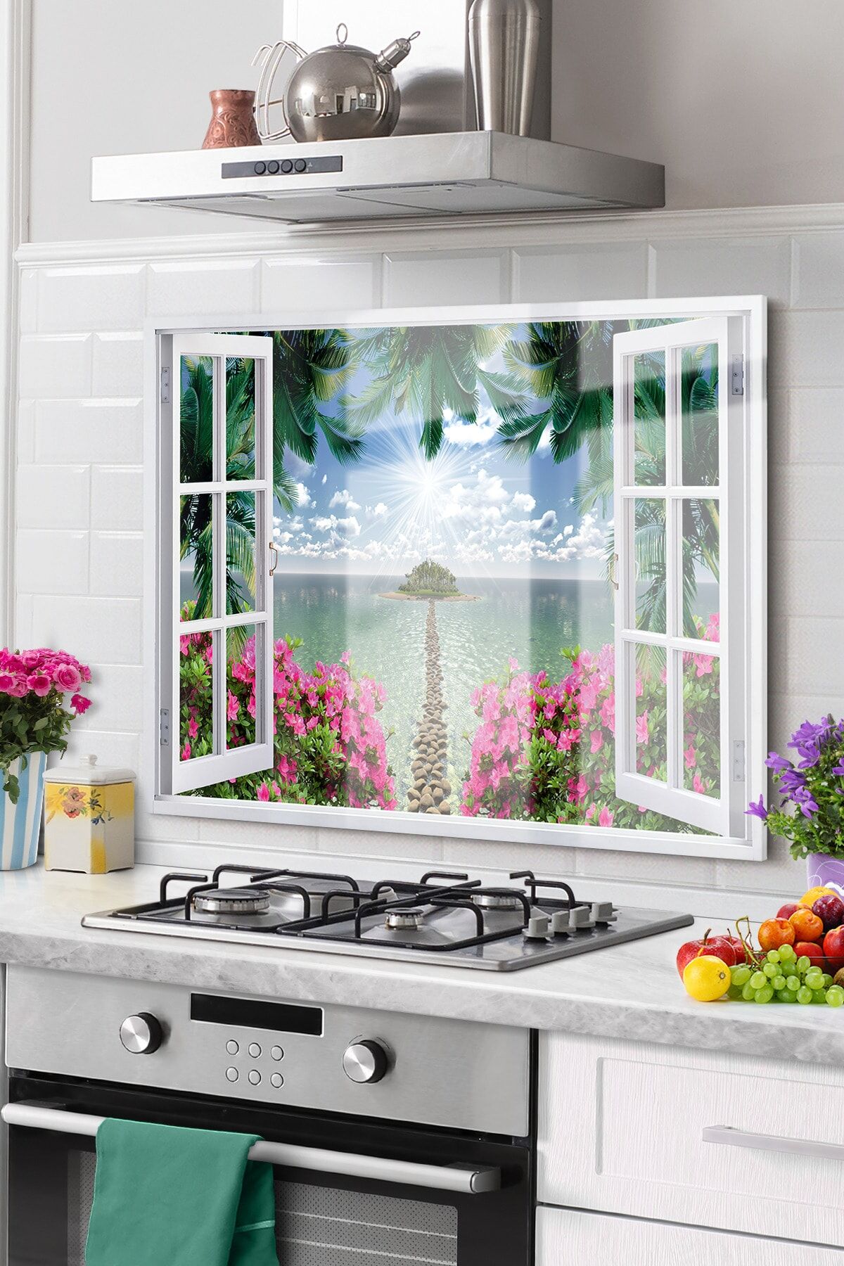 Yeşil - Premium Mutfak Cam Ocak Arkası Koruyucu Tezgah Ankastre Arkası Koruyucu | Pencere Deniz