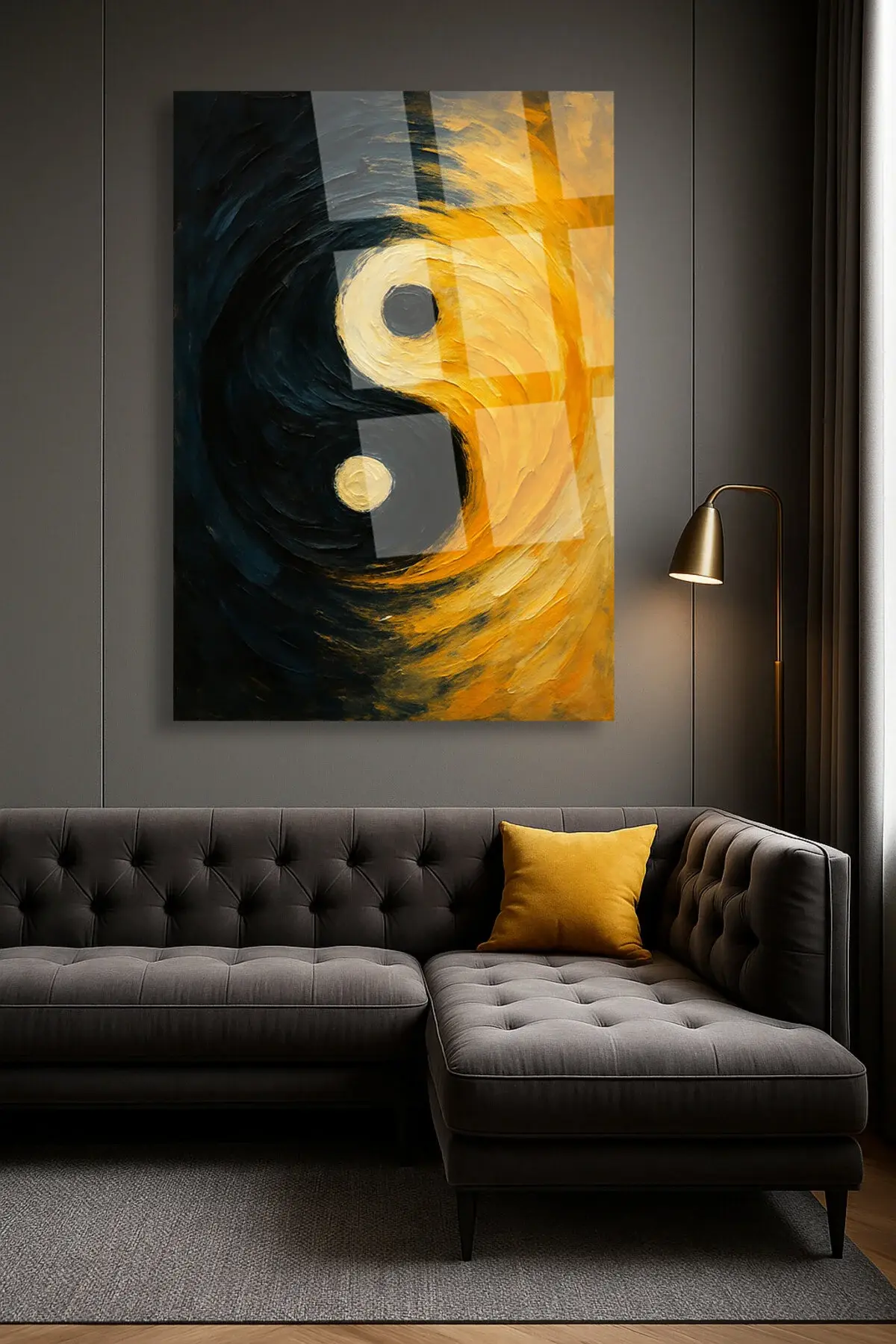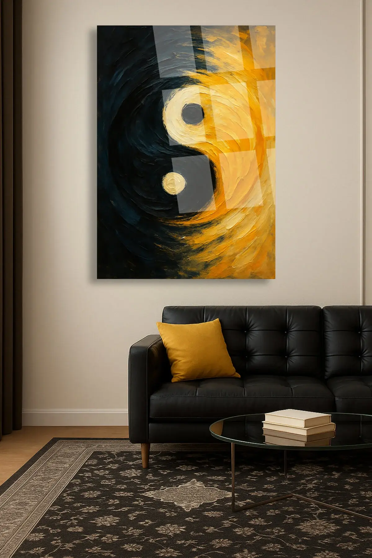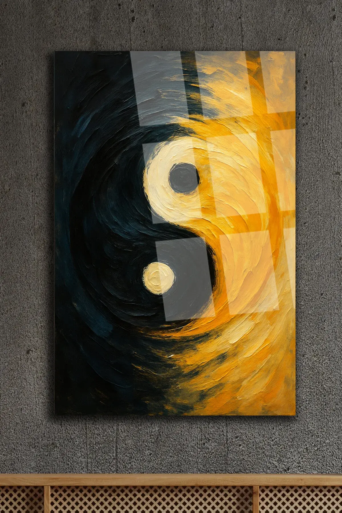 YİN YANG TASARIMI ULRTA CANLI RENKLER KIRILMAZ LÜKS MODERN DİKEY CAM TABLO EV HEDİYESİ Turuncu