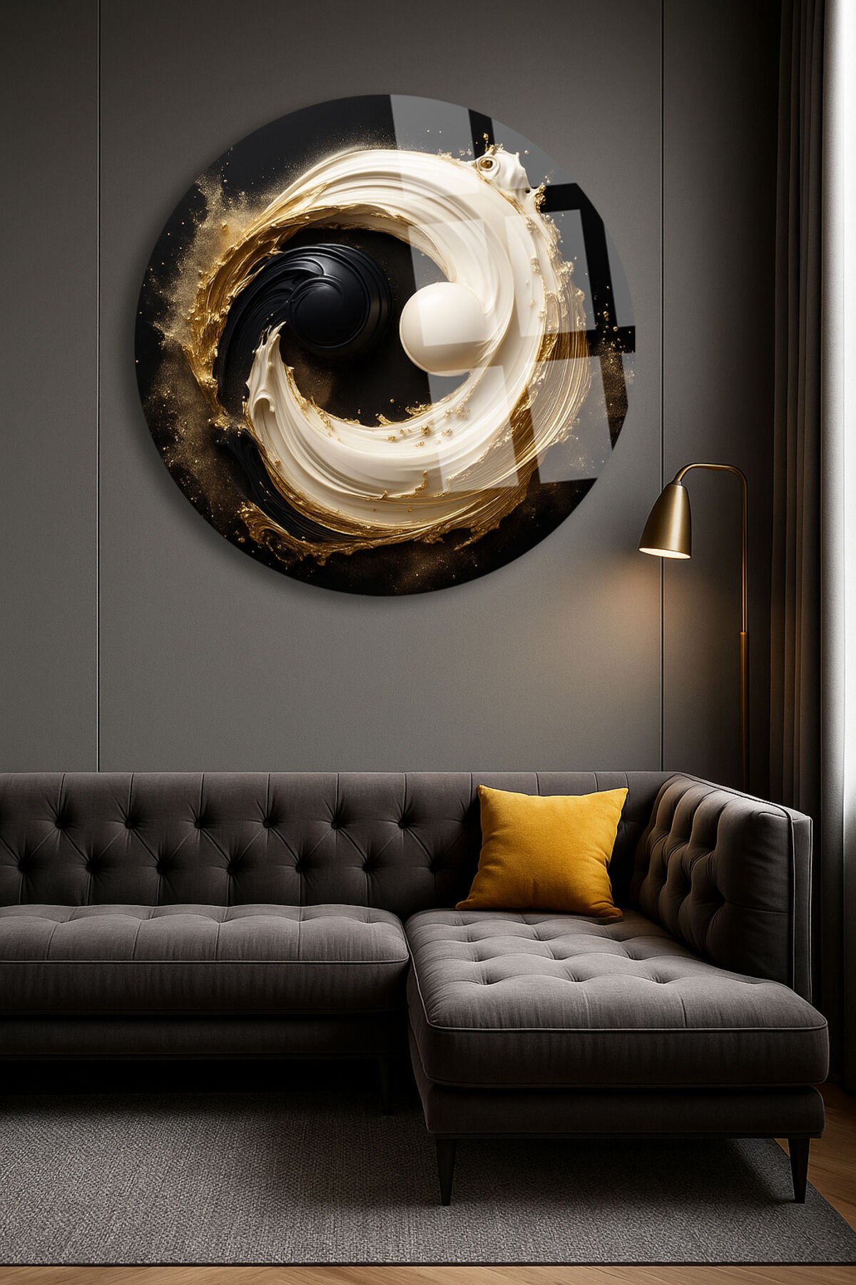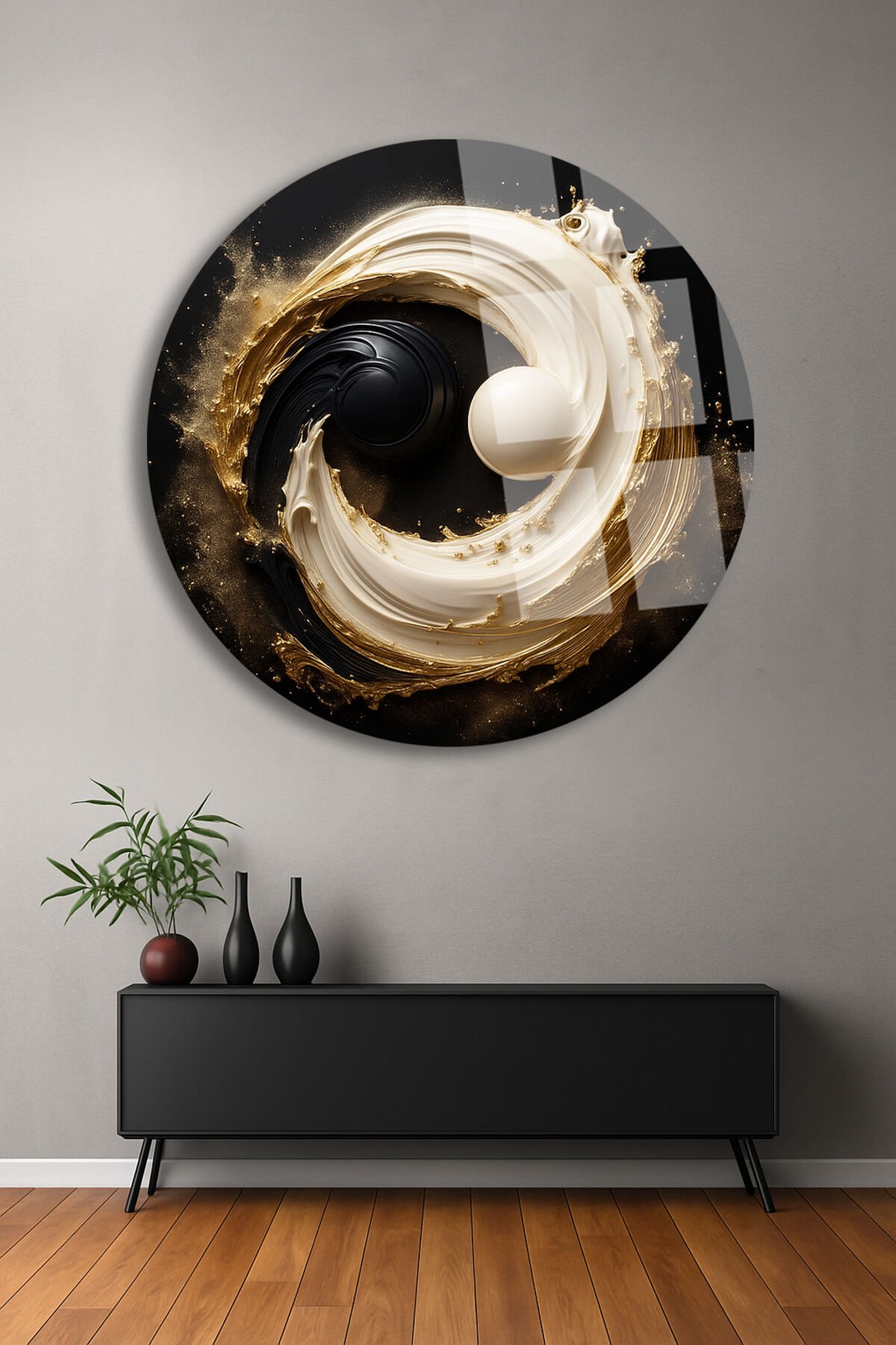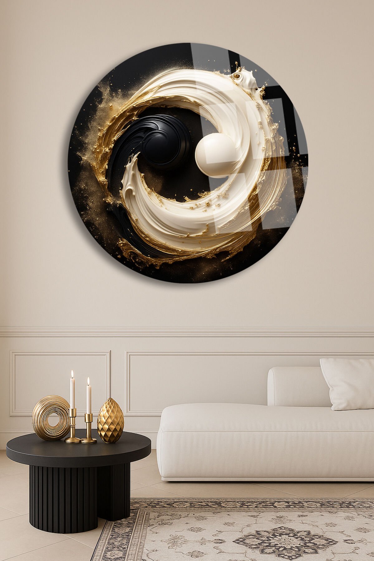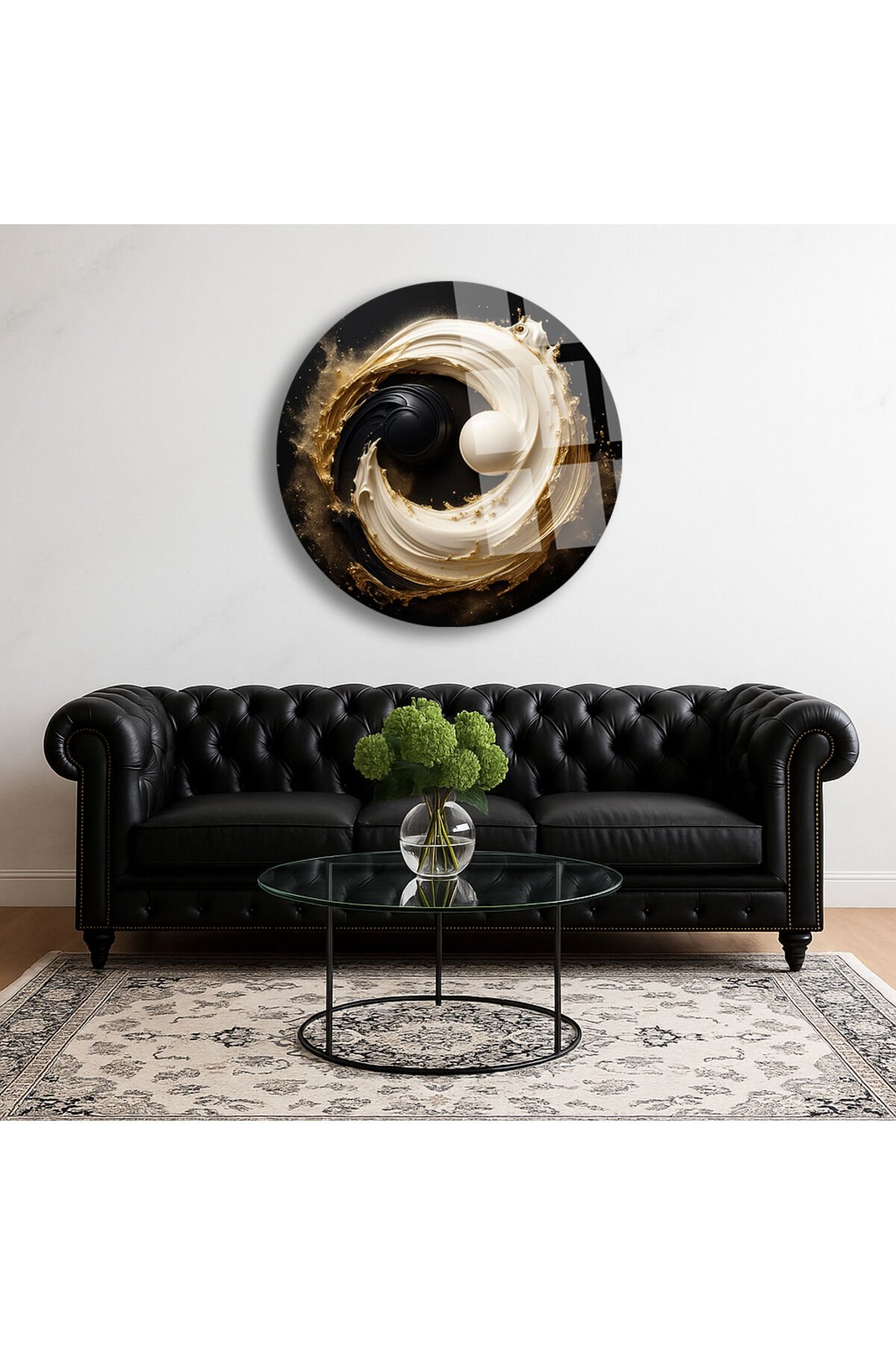YİN YANG TASARIMI ULRTA CANLI RENKLER KIRILMAZ LÜKS MODERN YUVARLAK CAM TABLO EV HEDİYESİ Siyah