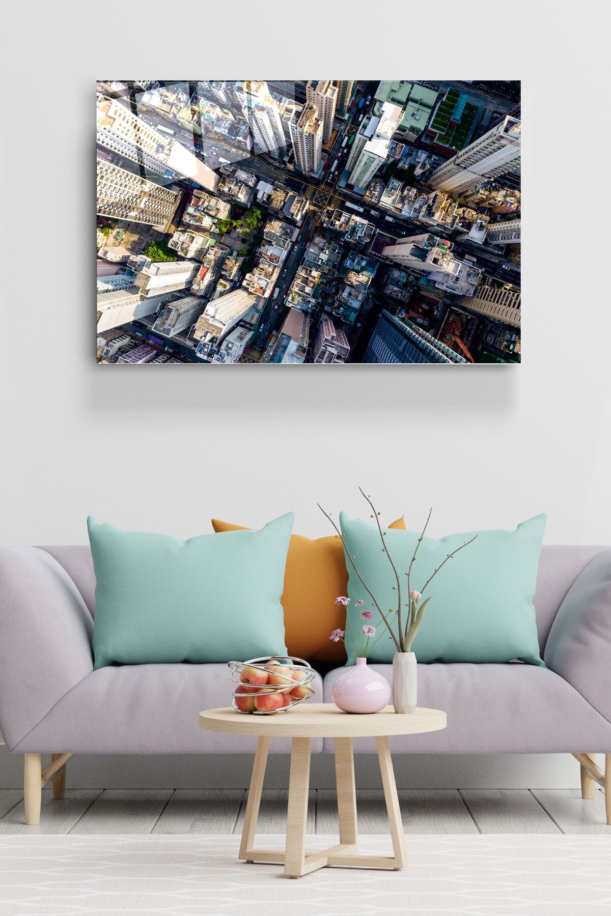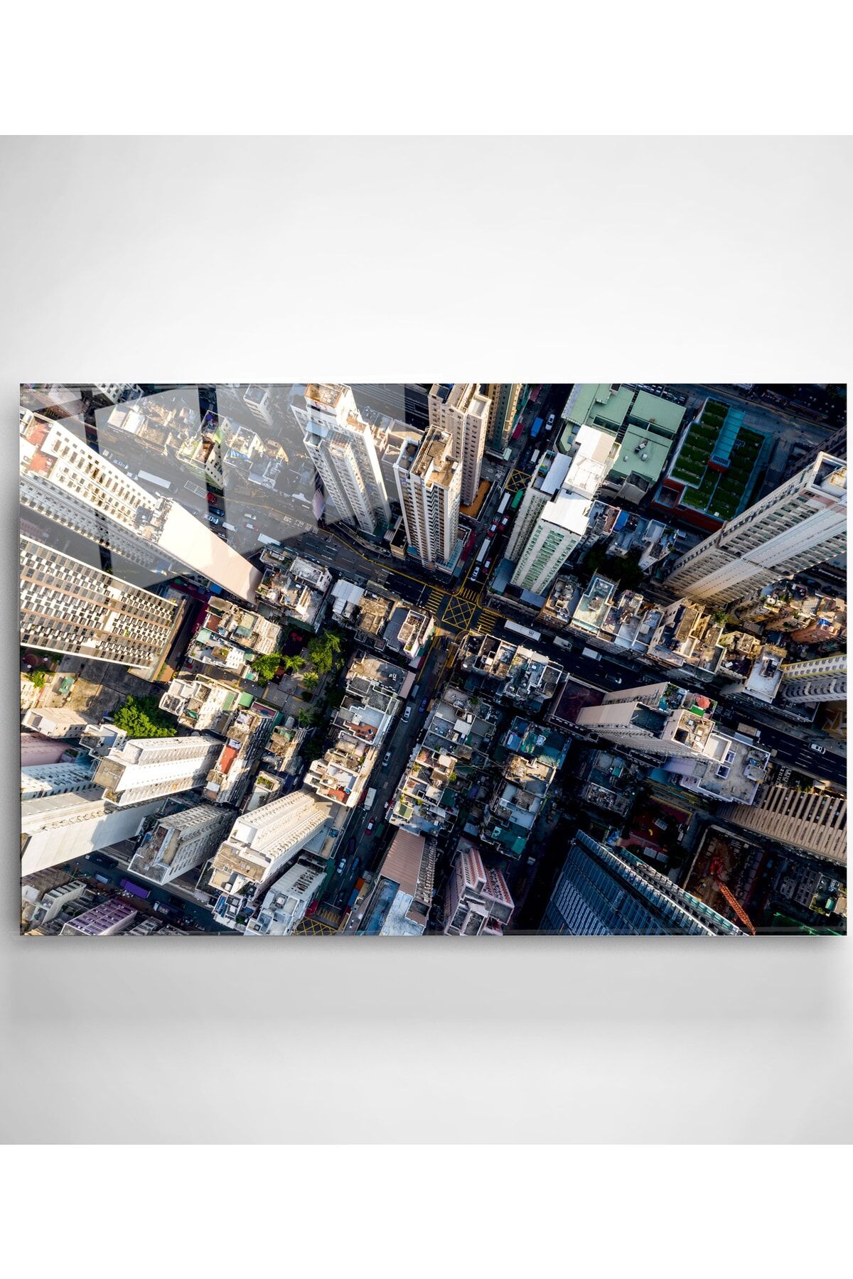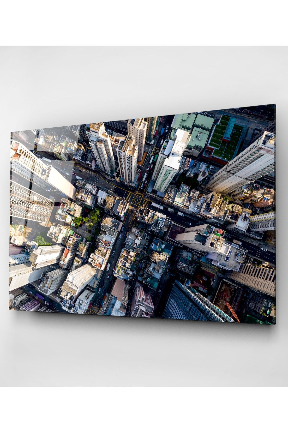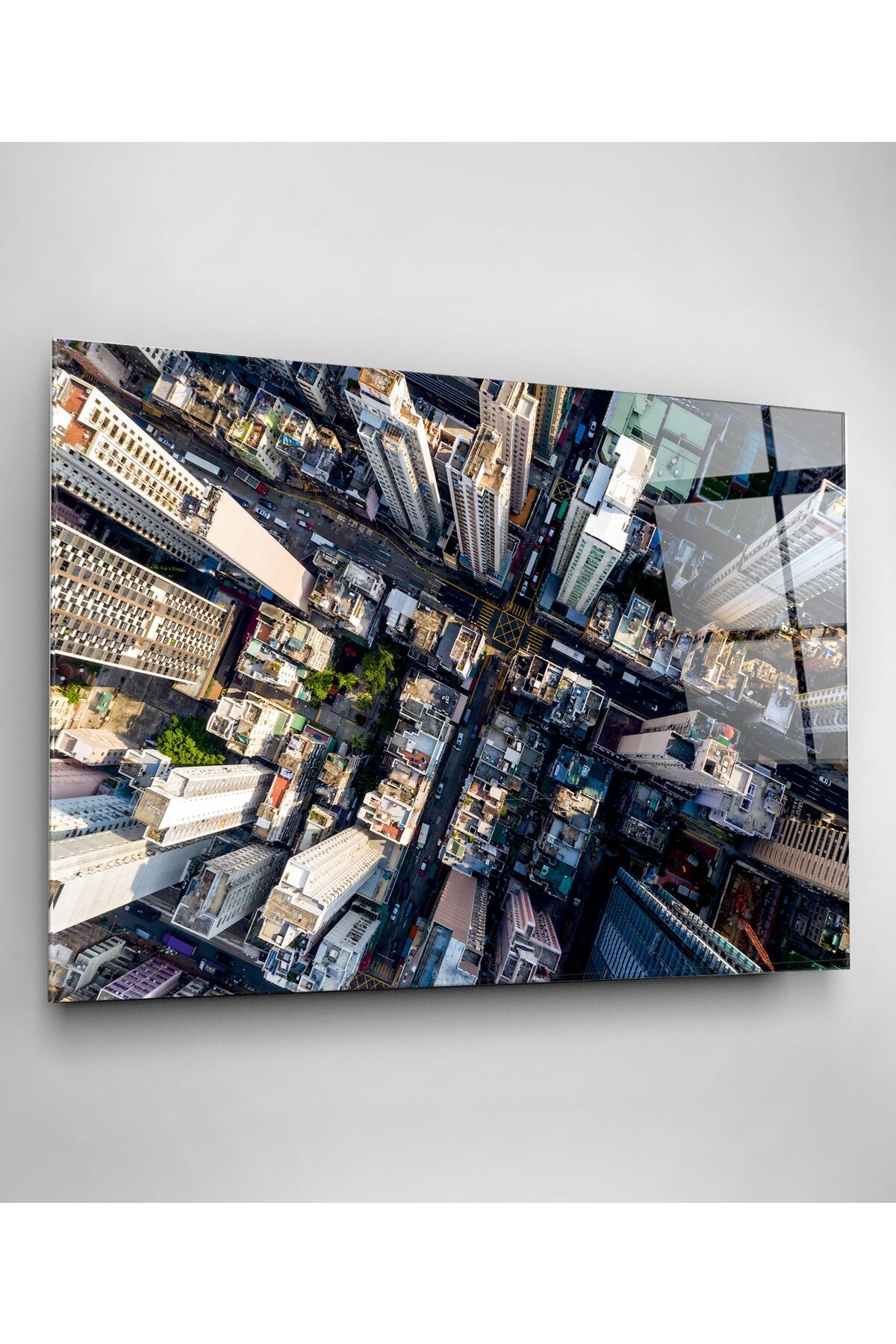 Yukarıdan Şehir Sokakları Cam Tablo, Dekoratif Cam Tablo