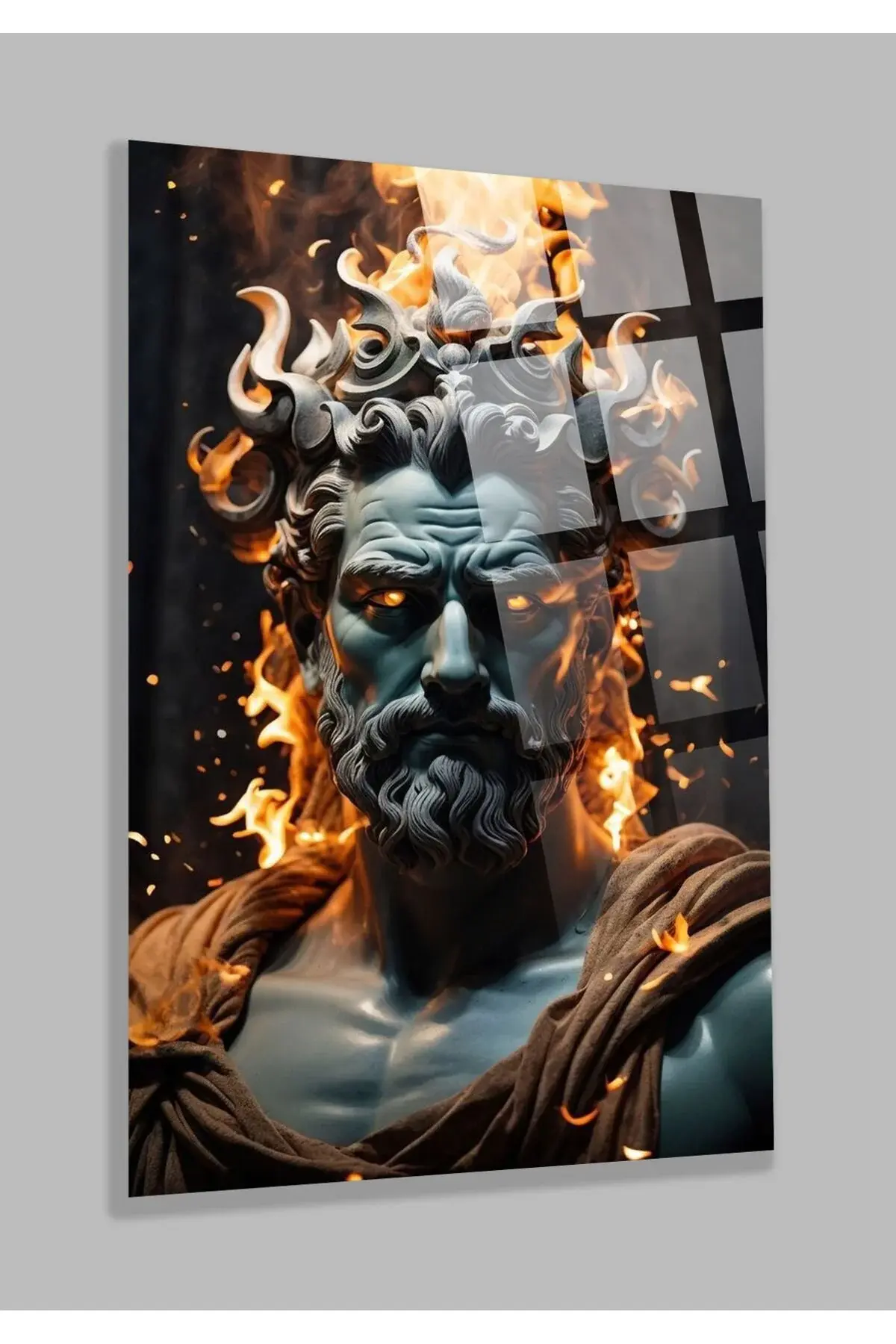 Zeus Büst 4mm Lüks Kırılmaz Temperli Yüksek Çözünürlüklü Cam Tablo