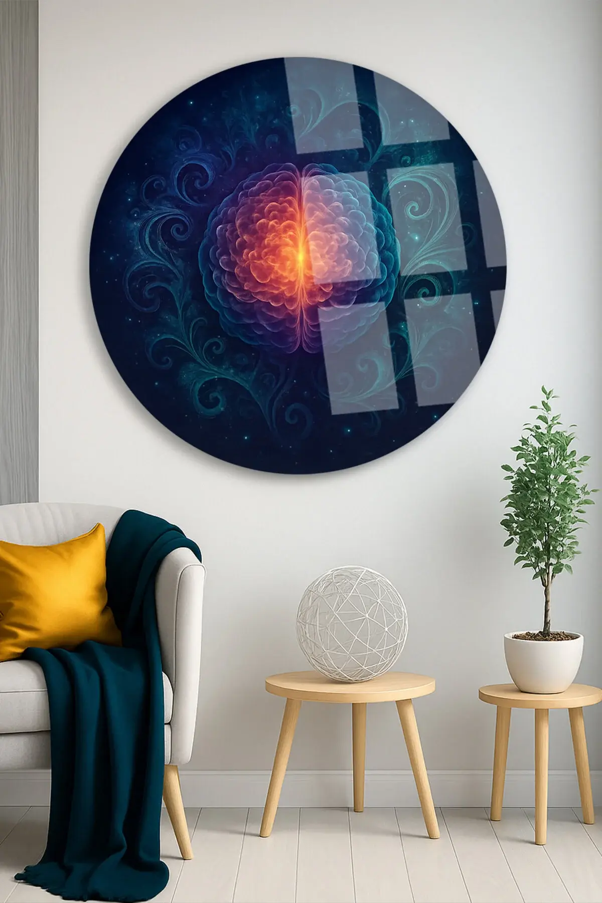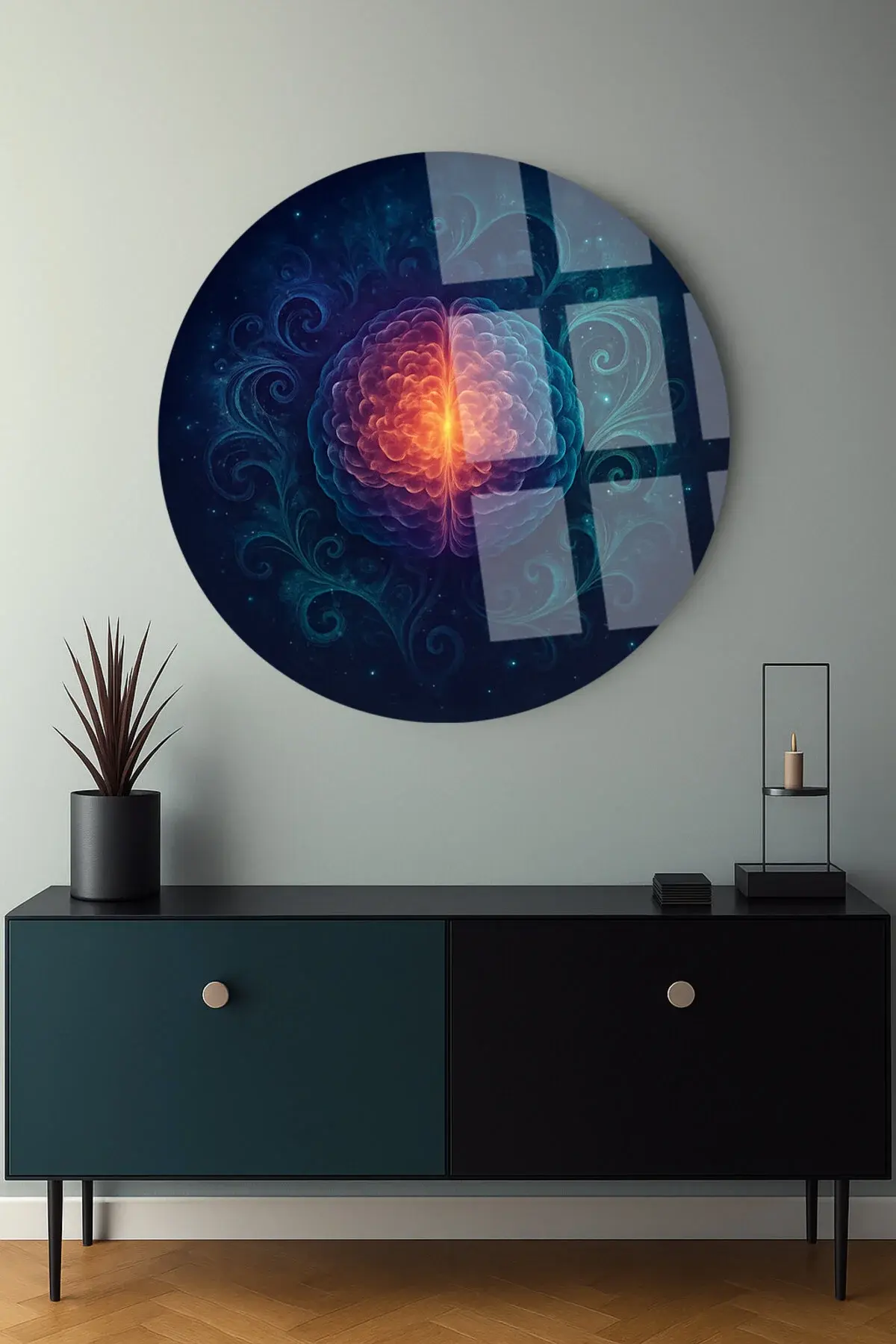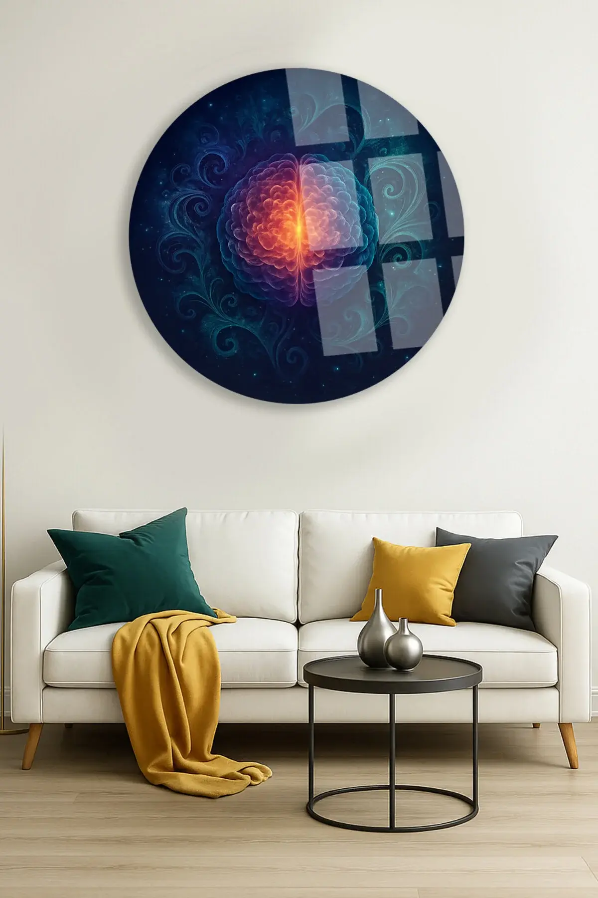 ZİHNİN DOĞUŞU TASARIMI YUVARLAK KIRILMAZ MODERN CAM TABLO EV HEDİYESİ LÜKS ODA TABLOSU Lacivert
