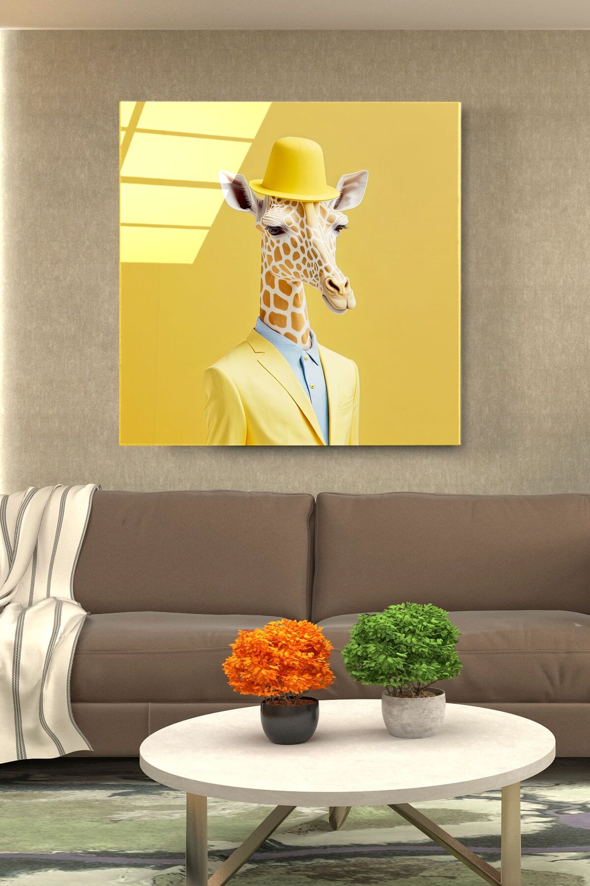 Zürafa Portre Cam Tablo, Dekoratif Cam Tablo